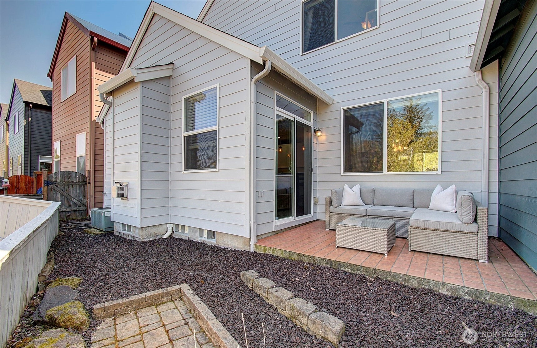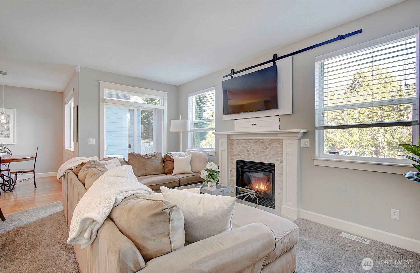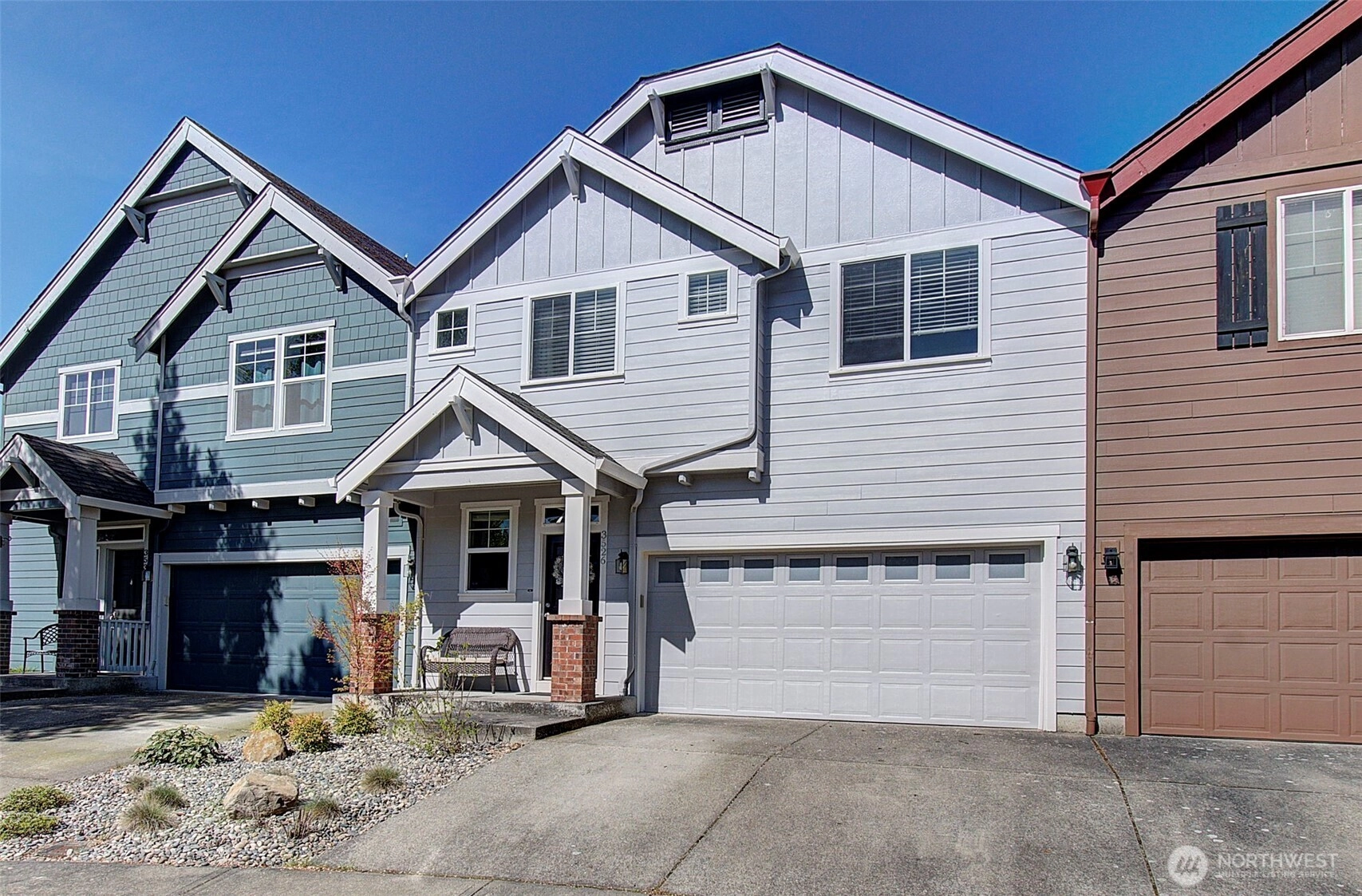 Step inside and feel at home with gleaming hardwood floors and soaring 9 ft ceilings. The cozy gas fireplace invites relaxation in the heart of the main level. The kitchen boasts stainless steel appliances, a pantry, and an eat-up island perfect for casual meals. A private, fenced patio with twinkling lights sets the stage for summer nights with friends. Upstairs, the spacious primary suite features a soaking tub, tiled shower, double sinks, and a walk-in closet. Two more bedrooms and a fully updated bath complete the home. With central A/C, gas heat, and a two-car garage, comfort is guaranteed. Plus, enjoy the unbeatable location near Camas schools, parks, and SR-14.