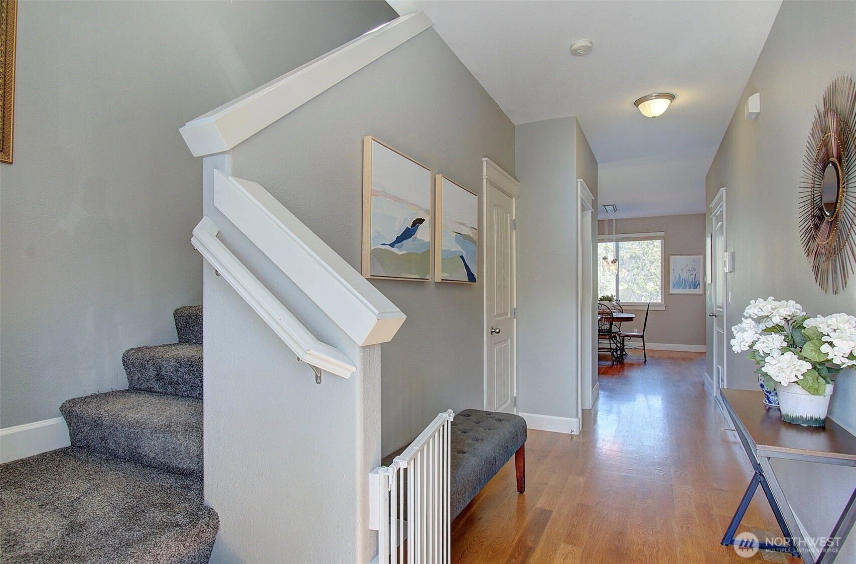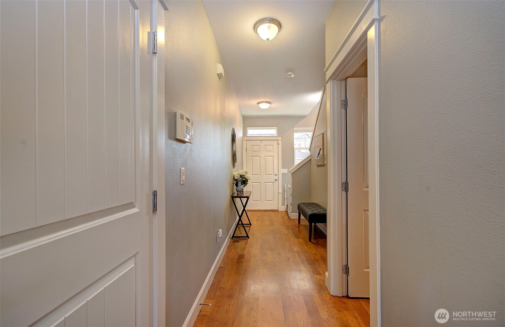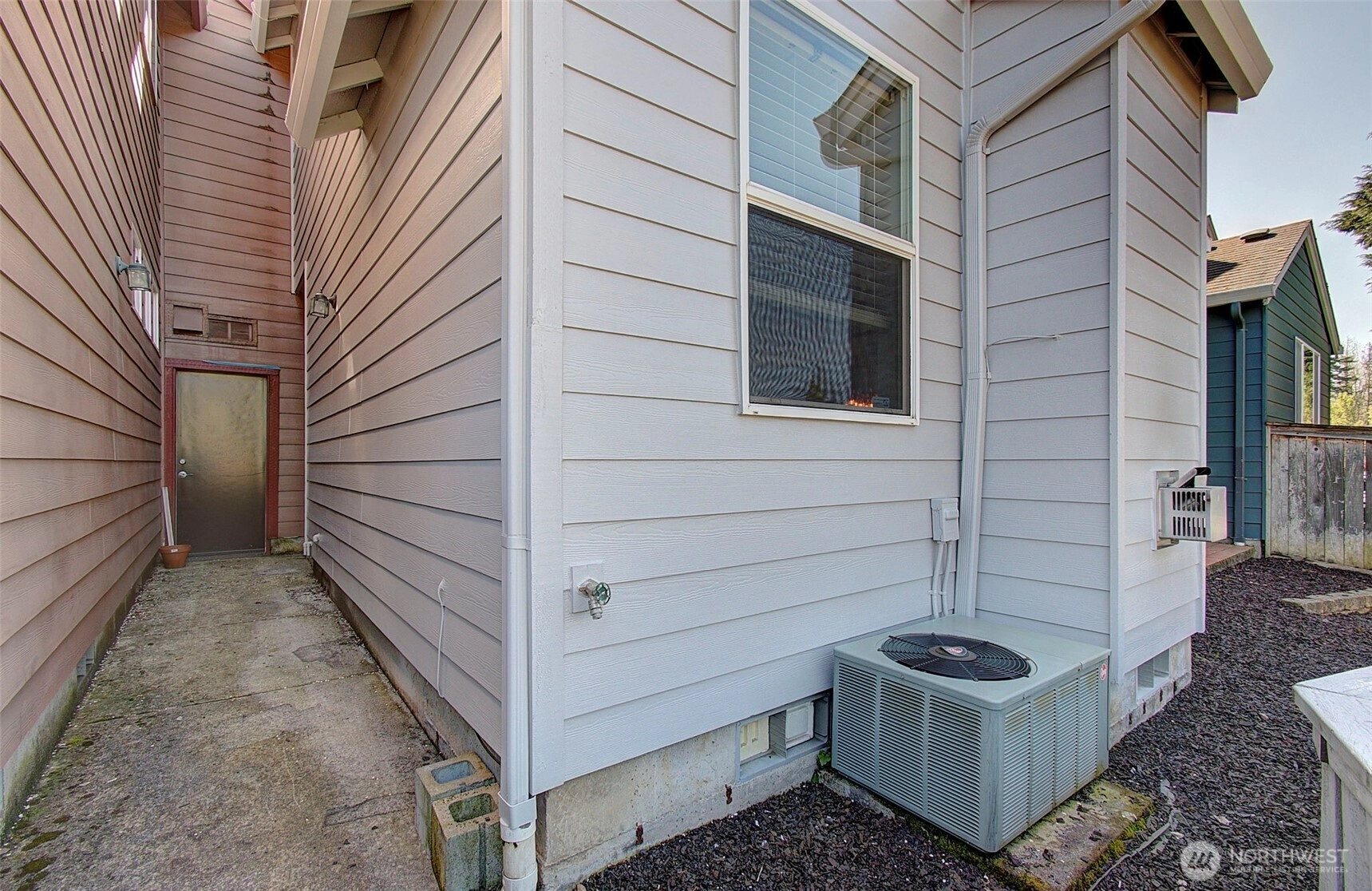 Step inside and feel at home with gleaming hardwood floors and soaring 9 ft ceilings. The cozy gas fireplace invites relaxation in the heart of the main level. The kitchen boasts stainless steel appliances, a pantry, and an eat-up island perfect for casual meals. A private, fenced patio with twinkling lights sets the stage for summer nights with friends. Upstairs, the spacious primary suite features a soaking tub, tiled shower, double sinks, and a walk-in closet. Two more bedrooms and a fully updated bath complete the home. With central A/C, gas heat, and a two-car garage, comfort is guaranteed. Plus, enjoy the unbeatable location near Camas schools, parks, and SR-14.