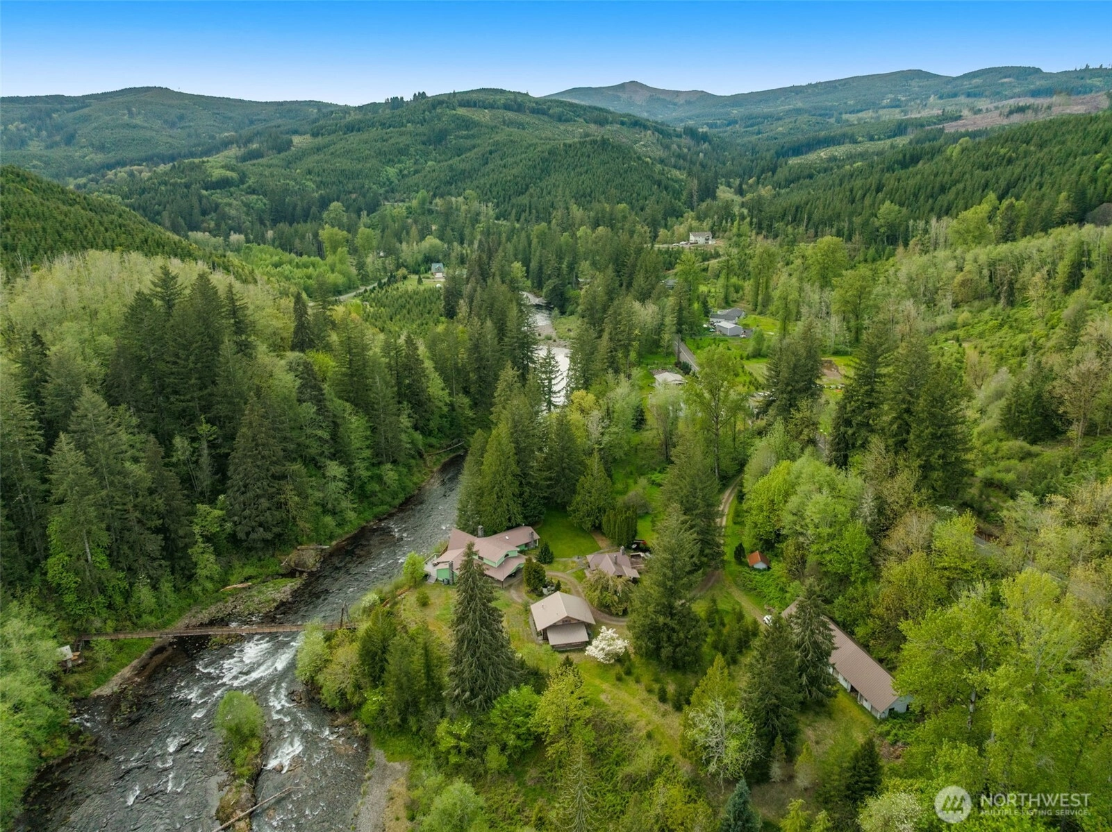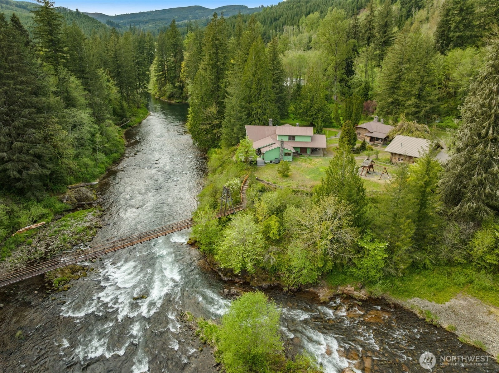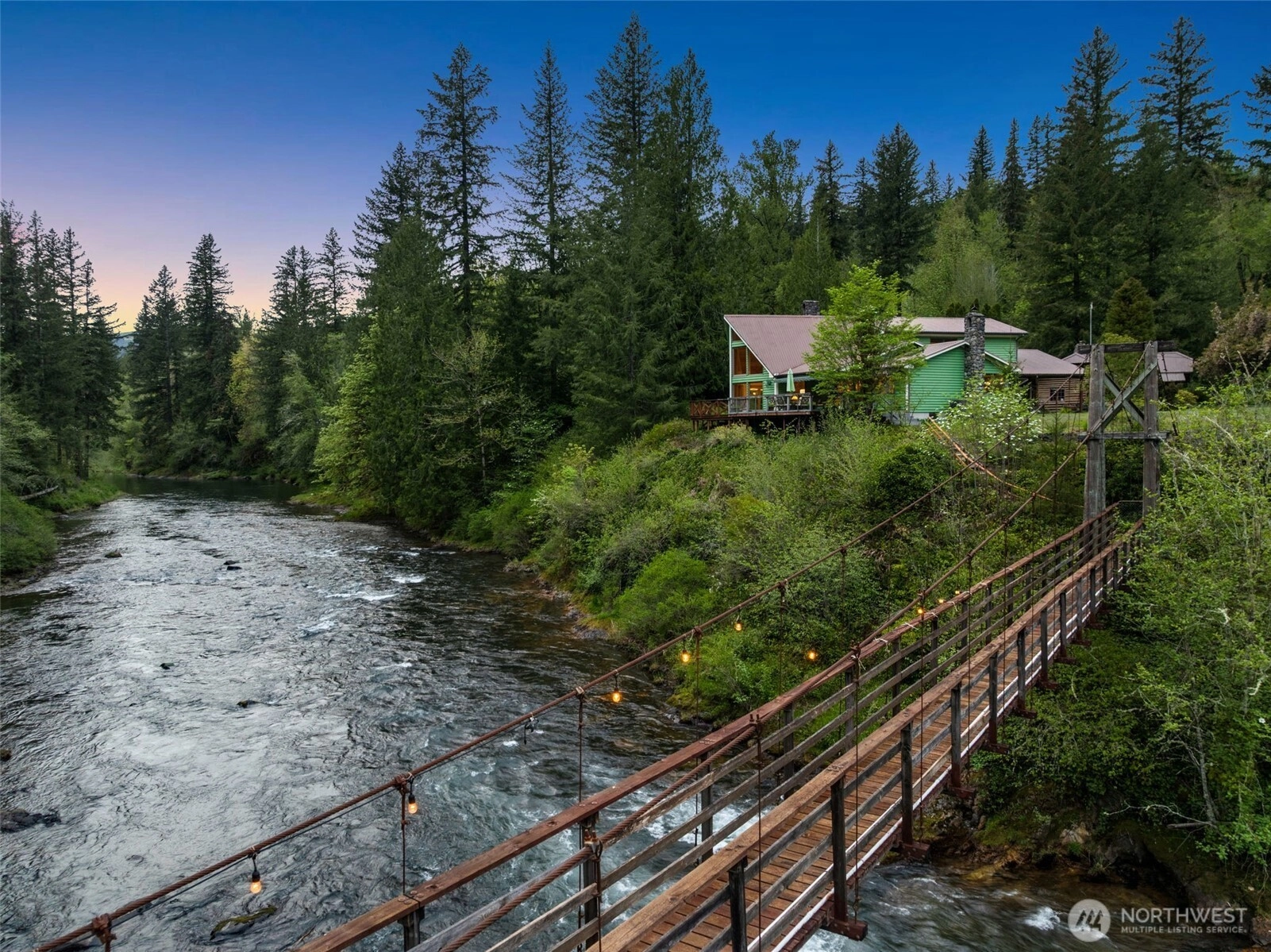 Once-in-a-Lifetime Opportunity: Private 24-Acre Riverside Estate with Timber Value & Hydroelectric Potential. Discover a rare opportunity to own an extraordinary 24-acre sanctuary along the Kalama River w/the rapids of the Kalama River running thru the property. Of the 24 acres, 22 are in a commercial timber deferral. This estate boasts 1,250ft of river frontage, where Knowlton Creek cascades into the Kalama River, w/deeded water rights and excellent hydroelectric potential. At its heart are 2 hand-crafted 1938 log cabins w/wood interiors & river rock fireplaces. A custom-built 3700 sq ft main home anchors the property, designed for multigenerational living with an open-concept living and 2 primary suites on the main floor.