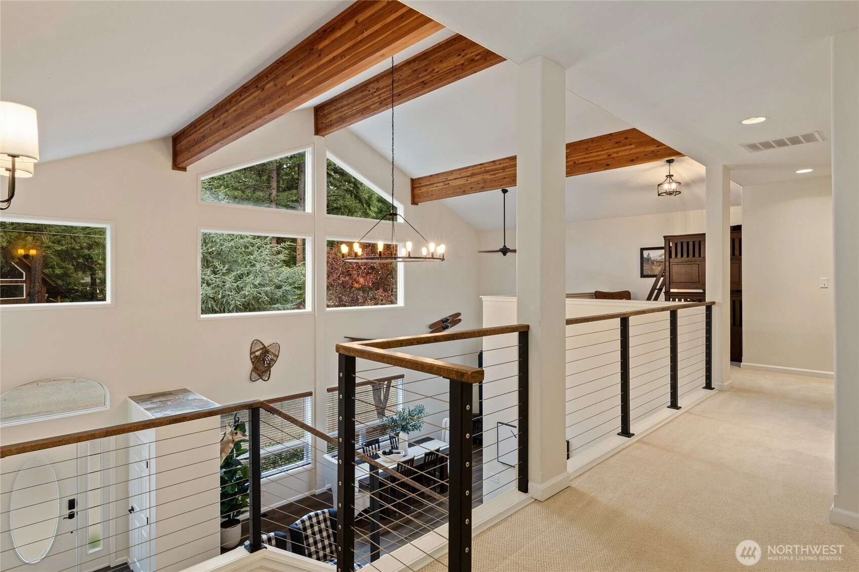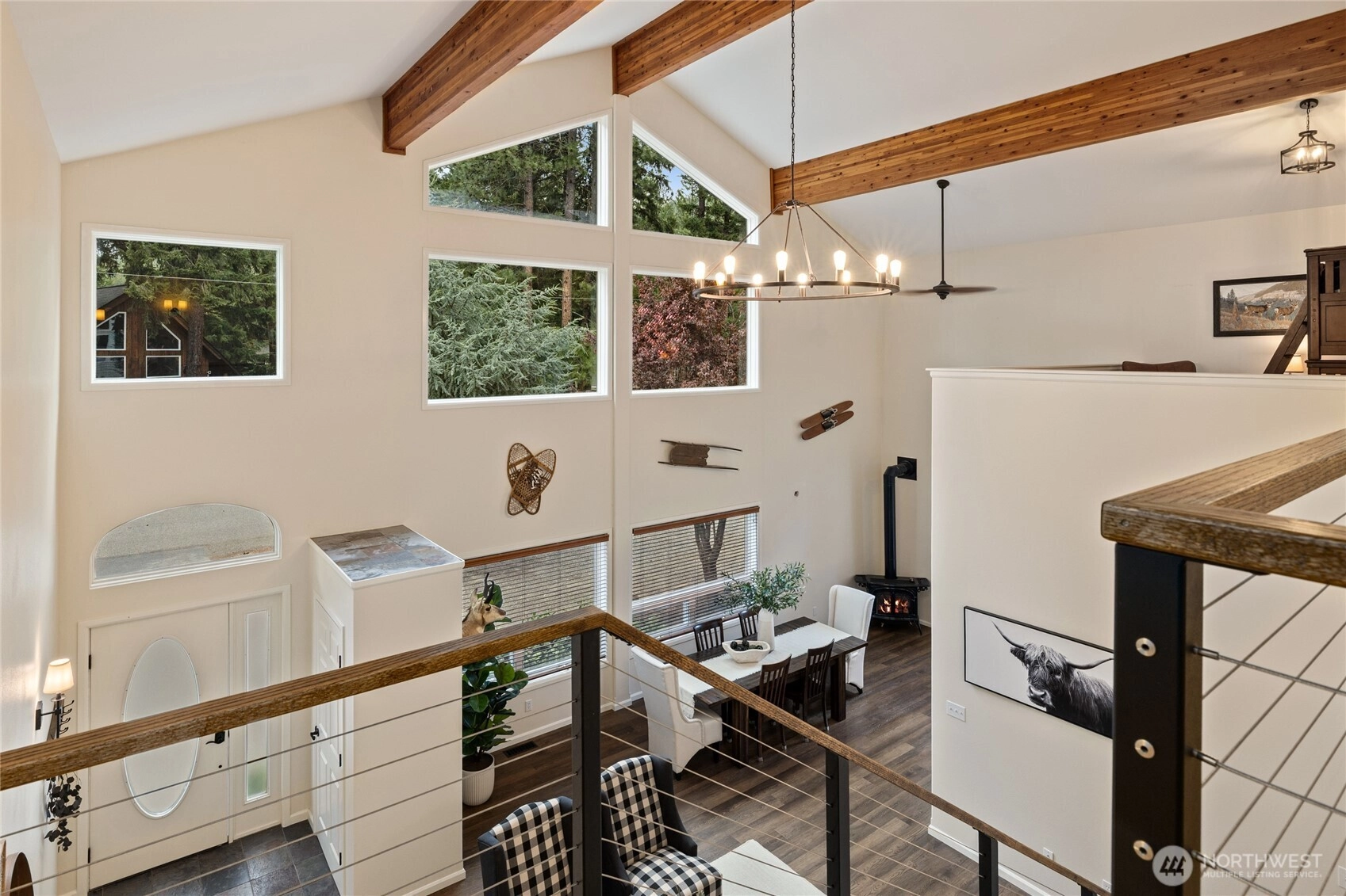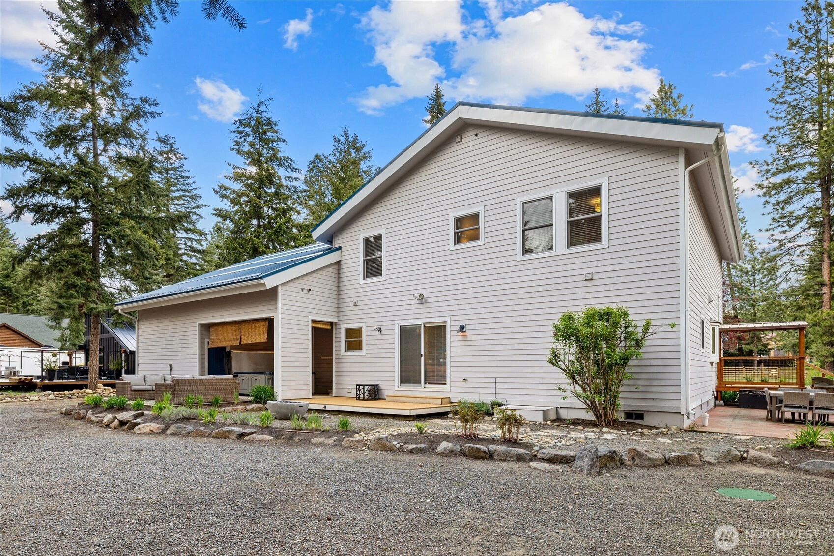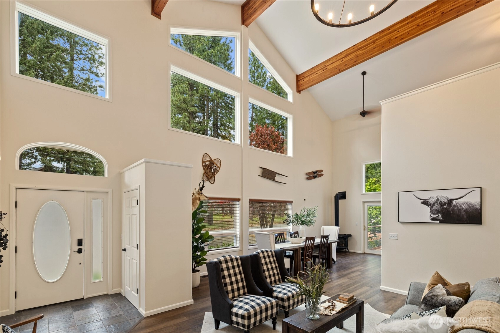Sought after Driftwood Acres w/ private gated Lk Cle Elum access & boat launch. 27' exposed beam ceiling & wall of windows flood space w/ natural light. The chef's kitchen boasts cherry cabinets, honed granite, SS appliances, gas stove & wine fridge. Main floor primary suite, walk in closet w/ built ins, remodeled bath and slider leading to backyard. Upstairs offers 2 bedrooms, 2 baths, loft/office space & large game/media rm that could double as a bedroom. Outdoor perks: BBQ deck, piped in gas firepit, hot tub, gardening space & multiple seating areas surrounded by new fence. 3-car garage w/ room for toys, RV prkng & generator wiring. Successful vacation and long term rental.