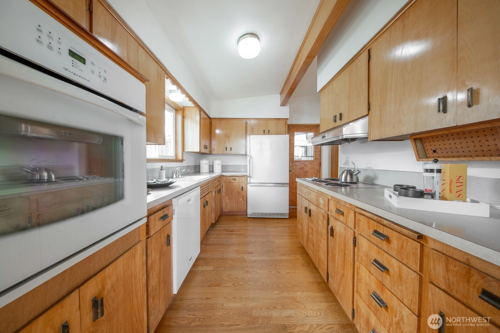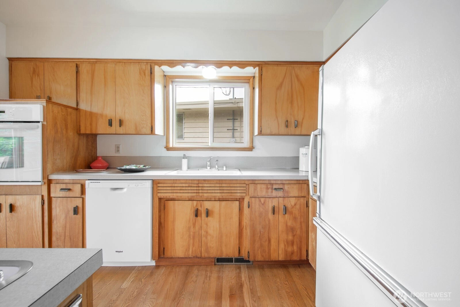 This timeless MCM home in Olympic Manor is just waiting for your imagination. 3 bedrooms on the main level and plenty of spaces in the daylight basement to customize and enjoy, including a bedroom. With a wall of windows, this sun splashed living room is where you will want to spend those lazy mornings. Dining room just off the kitchen makes entertaining a breeze. Main floor freshly painted and exterior was done apprx. 2 years ago. Huge 2 car garage and shop space. Sweet backyard patio is a perfect spot for your BBQ and afternoon beverage. Stroll up the hill to the fabulous Beast & Cleaver Meat Shop, Larsen's Bakery and corner store that hosts wonderful food trucks. Hop on the #40 bus for a direct trip to downtown.