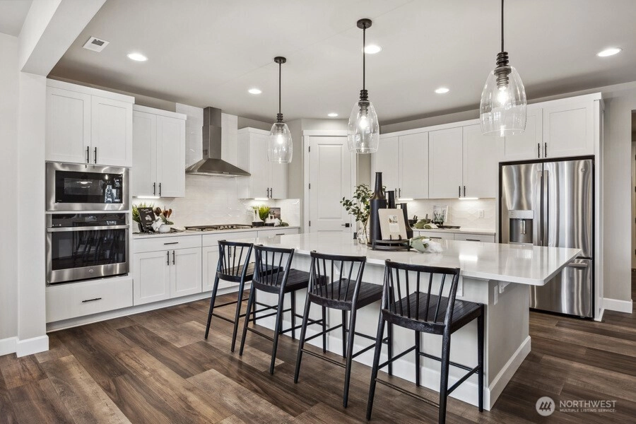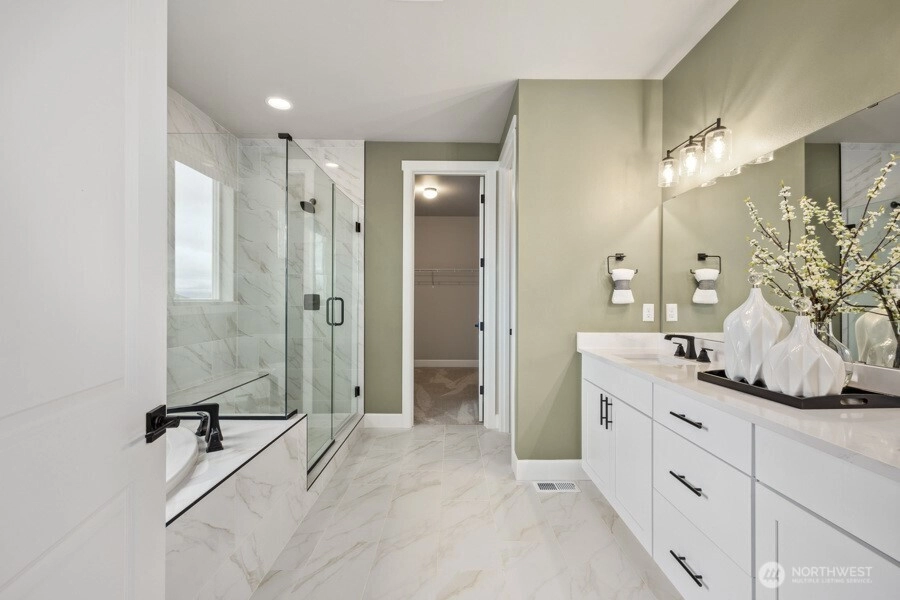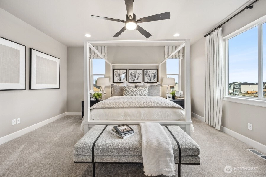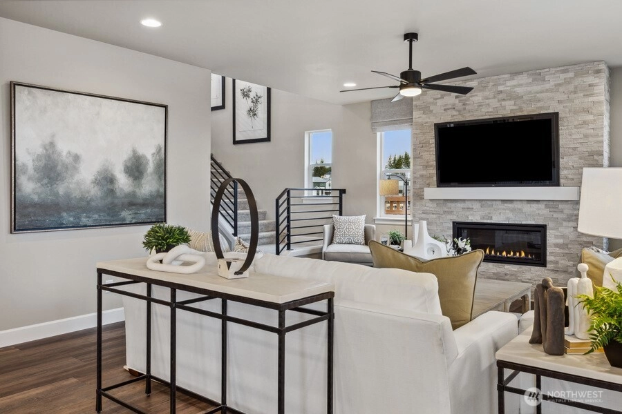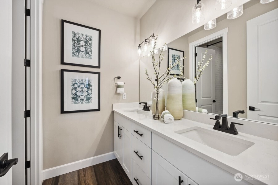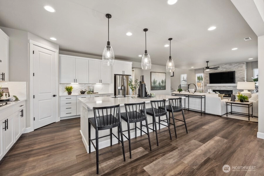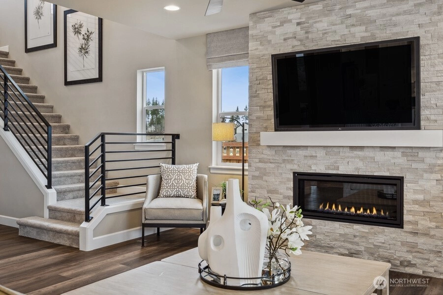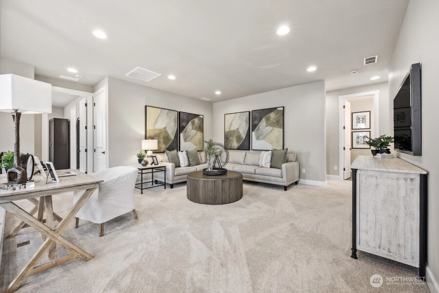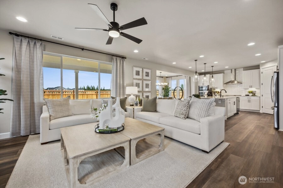 3-car garage Yorktown plan in Tehaleh. The main floor of this Yorktown plan was designed for entertaining, offering an expansive great room and a gourmet kitchen boasting a spacious center island and adjacent sunroom and covered patio. You’ll also appreciate a main floor bedroom and 3/4 bathroom. Upstairs, discover an immense loft surrounded by 4 more bedrooms, a shared bath, a laundry room and an elegant primary suite featuring a private bath and spacious walk-in closet. Sumner/Bonney Lake school district and greenbelt lot! If you are working with a licensed broker please register your broker on your first visit to the community per our site registration policy. ASK ABOUT SPECIAL FINANCING!