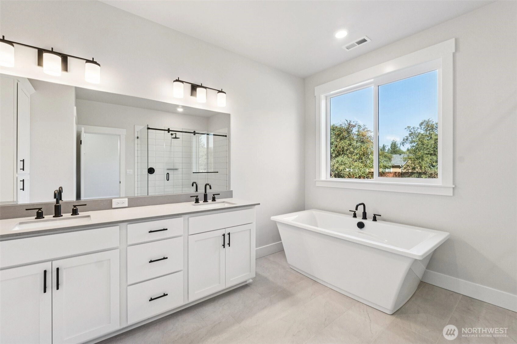 MOVE IN READY! Gorgeous boutique community near the heart of Enumclaw. All one level living with 9-foot ceilings, luxurious primary suites, open concept, island kitchens and ample spaces. Lot 2 features our functional 1844 plan with open chef's kitchen with large island, GE Cafe appliances including gas cooktop. Primary suite with walk-in closet, 5-piece bath including shower with mudset pan, tile surround and frameless bar door style doors plus dual sinks and a free-standing tub. Washer/Dryer included to make this home ready for move in! Spacious laundry with sink cabinet and expansive uppers for added storage. Gas fireplace and BBQ stub as well. Open Sat-Tues 10-5, Wed 1-5, If working w/realtor, Buyer to register agent on 1st visit.