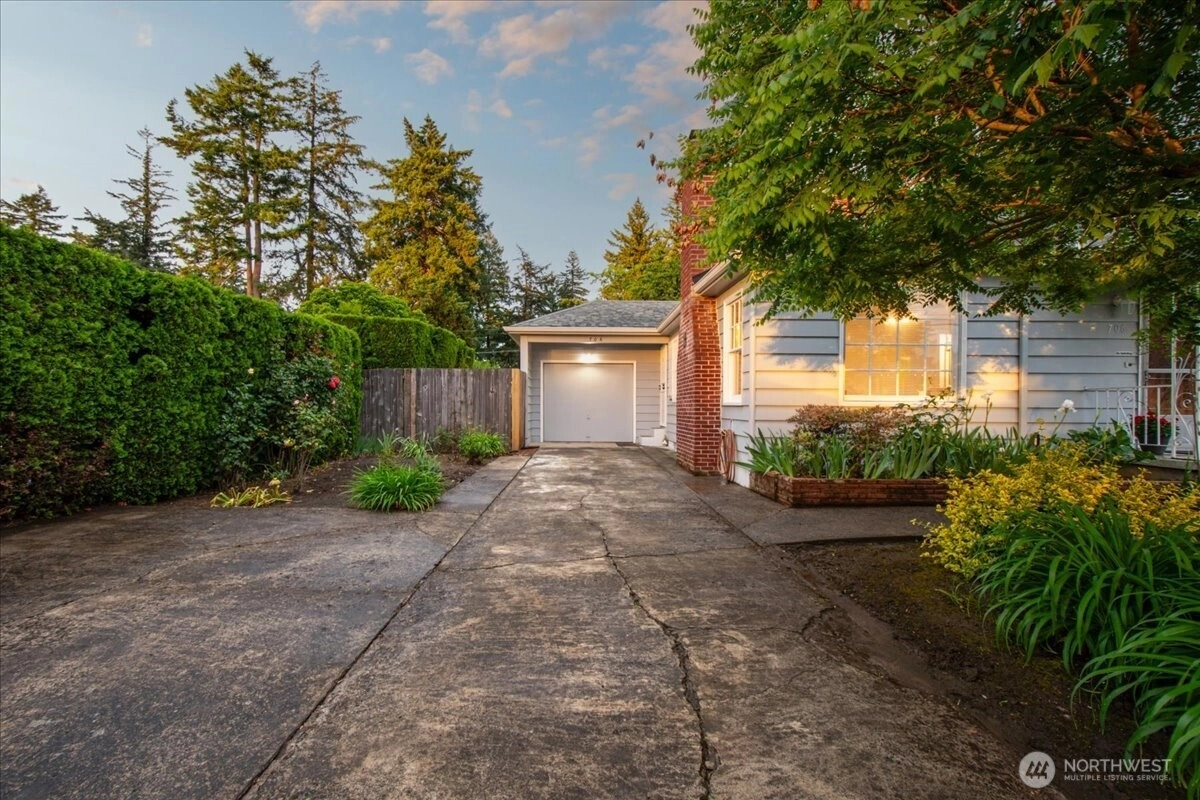 Welcome to this delightful classic bungalow with a lush backyard oasis. Built in 1949, this 2bed/1bath home blends classic character with comfortable one level living. Inside you will find an inviting living room filled with natural light, vintage touches, and a cozy fireplace. The kitchen retains its original character and flows easily into the rest of the home. Both bedrooms are comfortably sized while the bathroom is tastefully finished with functional updates. Outside, the private backyard is a true gem—brimming with colorful flowers, mature plants, and plenty of room to garden. A major bonus is the attached garage — ideal for storage, hobbies, or secure parking. The owner has lovingly cared for the home for 40 years and it shows!