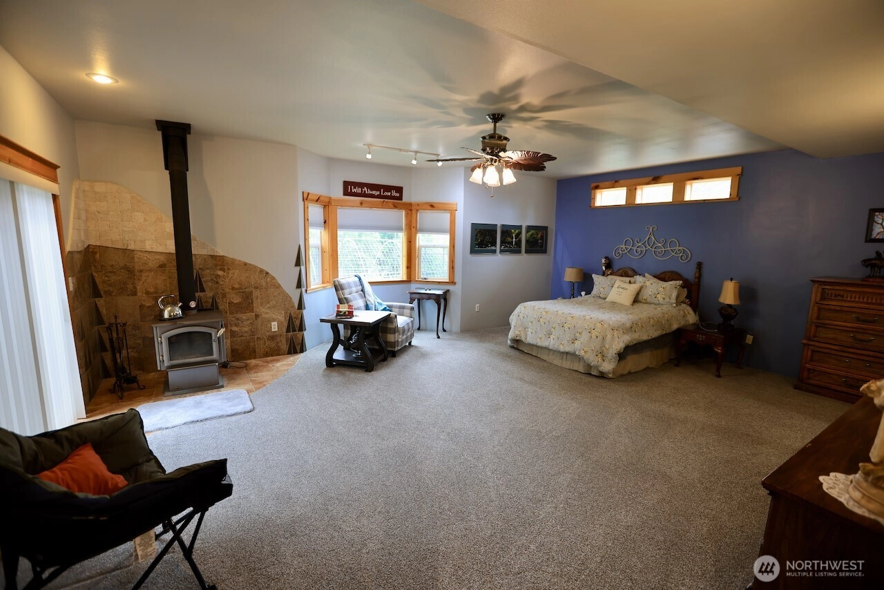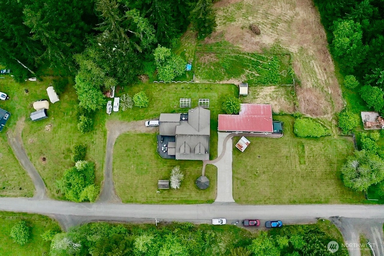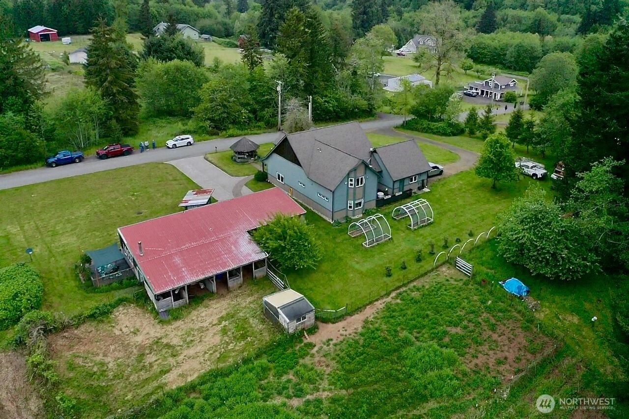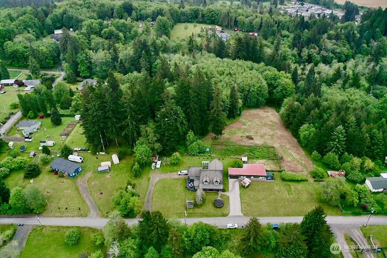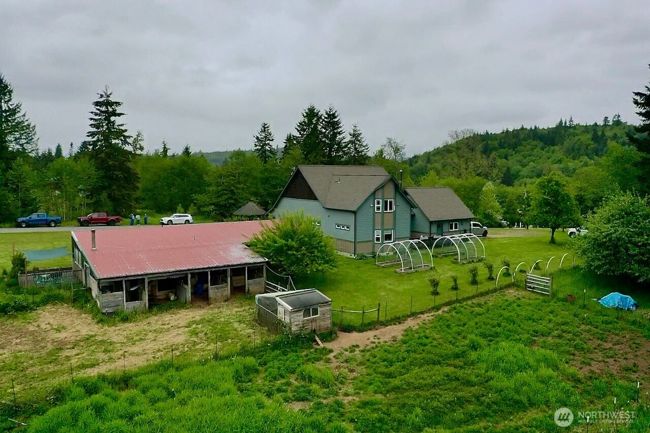 Welcome Home – A Custom Retreat on 5 Acres! This beautifully crafted 4-bedroom, 3.5-bath with over 3500 sf custom home blends rustic charm with refined living. Featuring rich custom woodwork and knotty pine kitchen cabinetry, the interior exudes warmth and character. The spacious layout includes a stunning library/office, a formal dining room perfect for entertaining, and a luxurious master suite with a cozy custom wood stove. Upstairs offers three generous bedrooms and abundant storage. Outside, enjoy 5 acres of usable pasture, garden space, RV parking with full hookups, and two oversized 2-car garages. Bonus: An 800 sq ft fully finished, fully equipped apartment offers incredible flexibility for guests, extended living, or rental income.