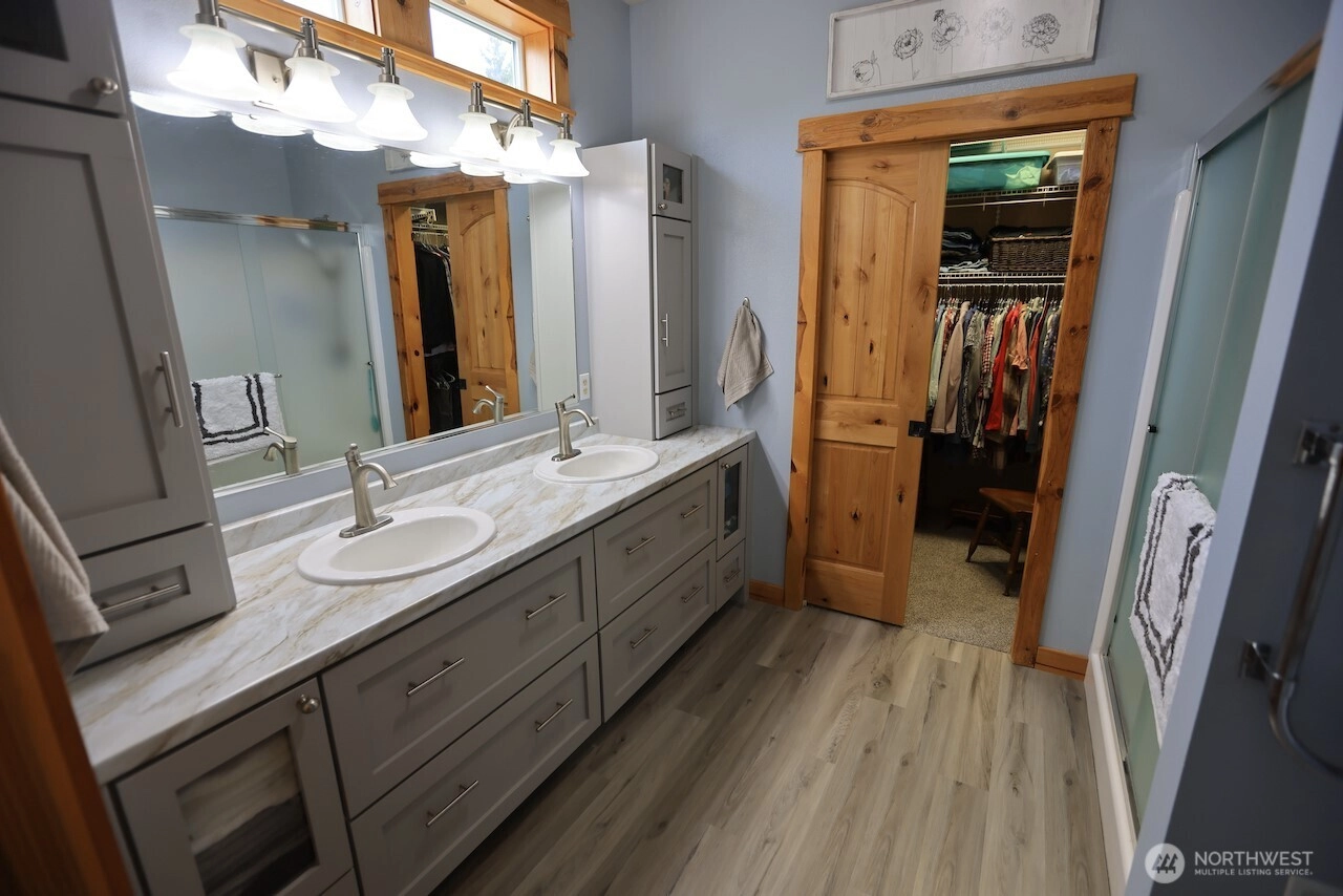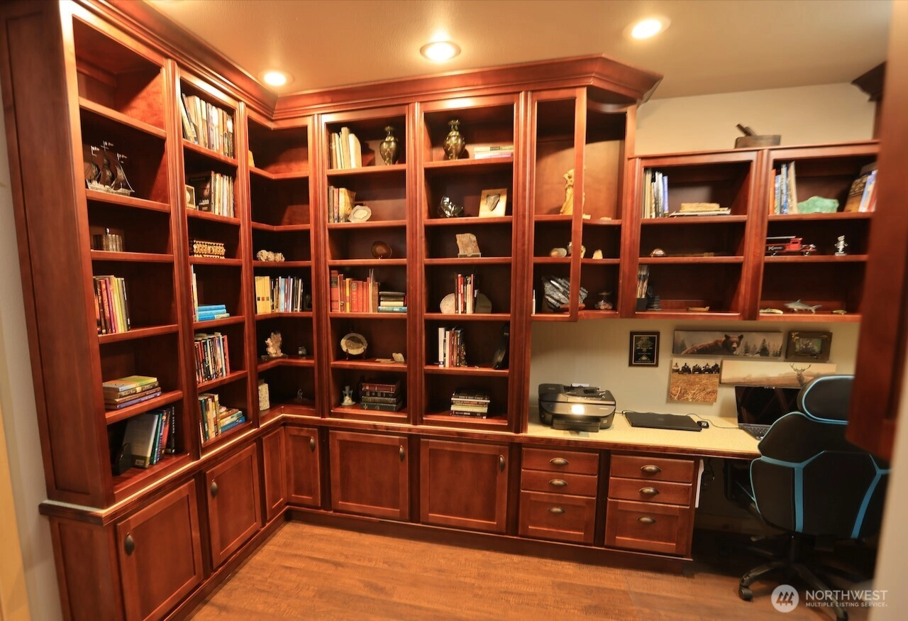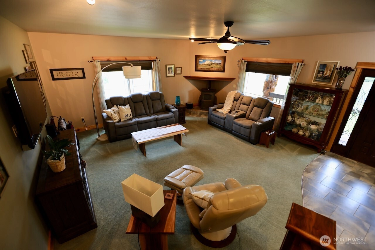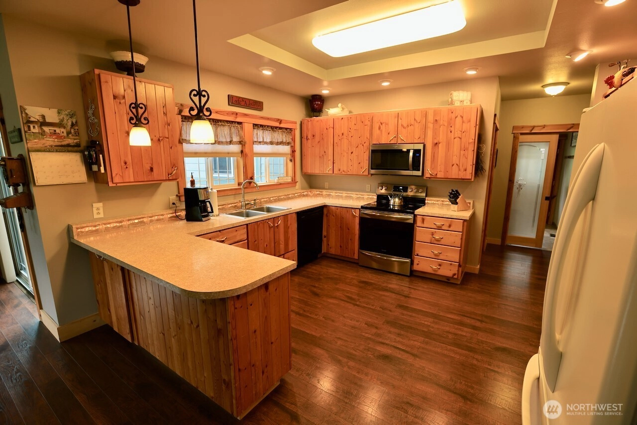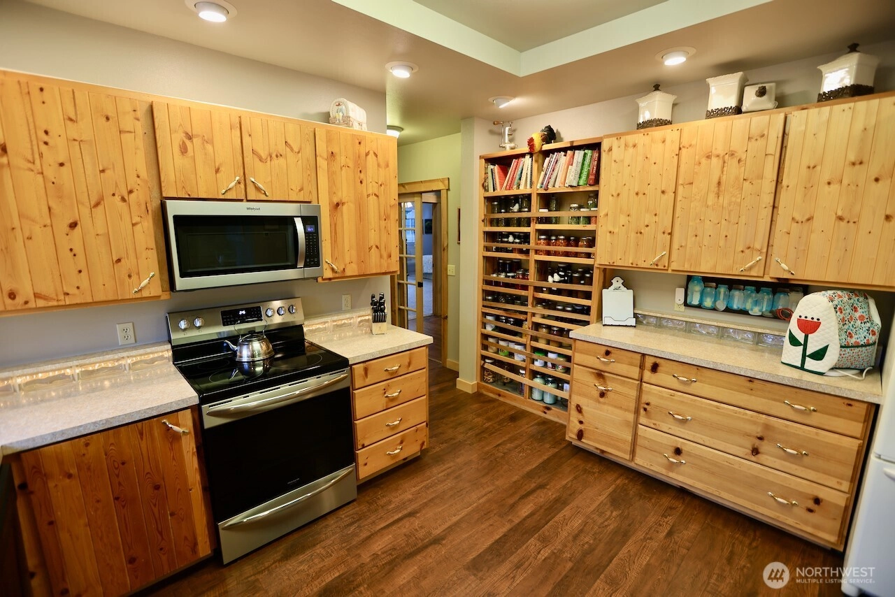 Welcome Home – A Custom Retreat on 5 Acres! This beautifully crafted 4-bedroom, 3.5-bath with over 3500 sf custom home blends rustic charm with refined living. Featuring rich custom woodwork and knotty pine kitchen cabinetry, the interior exudes warmth and character. The spacious layout includes a stunning library/office, a formal dining room perfect for entertaining, and a luxurious master suite with a cozy custom wood stove. Upstairs offers three generous bedrooms and abundant storage. Outside, enjoy 5 acres of usable pasture, garden space, RV parking with full hookups, and two oversized 2-car garages. Bonus: An 800 sq ft fully finished, fully equipped apartment offers incredible flexibility for guests, extended living, or rental income.