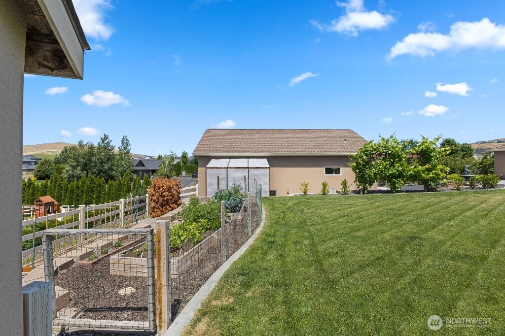This home features a large family room, formal living and dining areas, 11’ ceilings in the foyer and dining, a stunning kitchen with granite countertops, a working pantry, and plenty of storage. His-and-hers closets. wood flooring, tile in bathrooms. Also has a mechanical room, storage space with extra freezer and refrigerator. Totally wheelchair accessible throughout. 30’ x 40’ shop with heating and AC, its own bathroom, mezzanine, cabinets, 10’ ceilings, 50amp RV plug, 220 wired and a 12’ x 40’ storage loft. 8’ x 12’ greenhouse, irrigated garden, garden shed, and a pergola with new hot tub in a fully fenced yard Whole-house backup generator with 250-gallon propane tank. Furnished or unfurnished