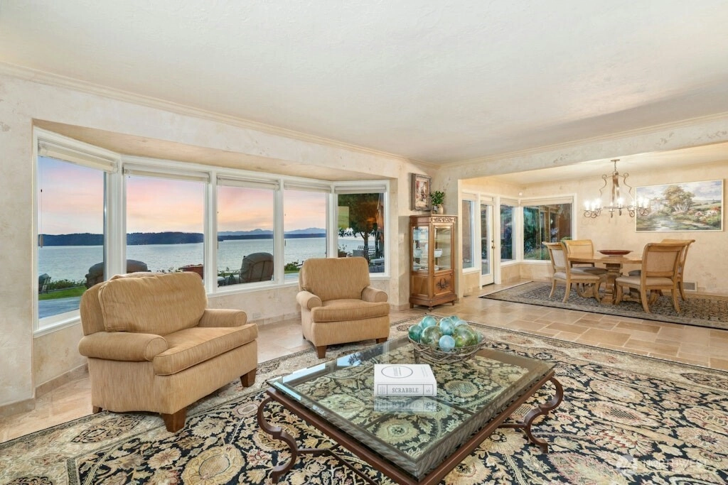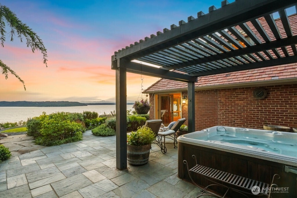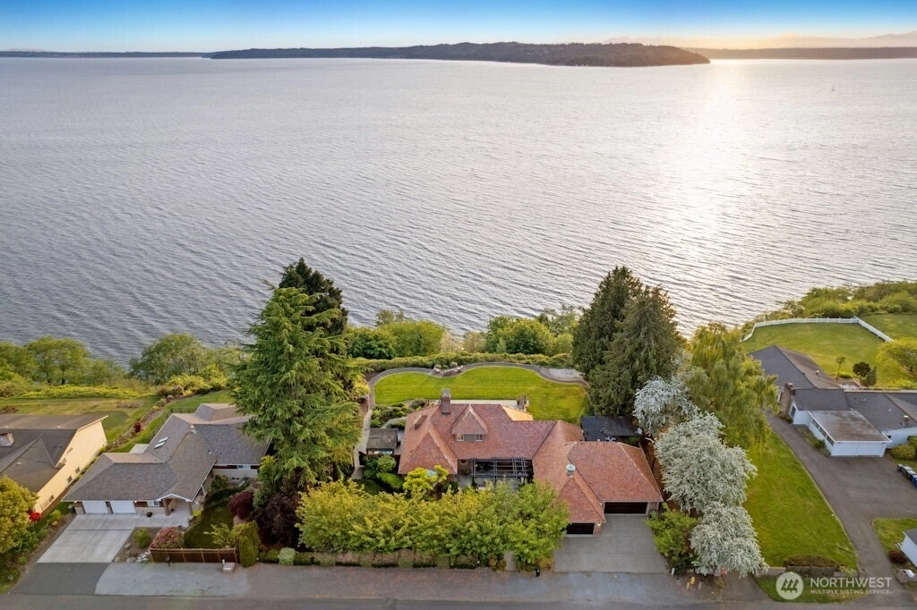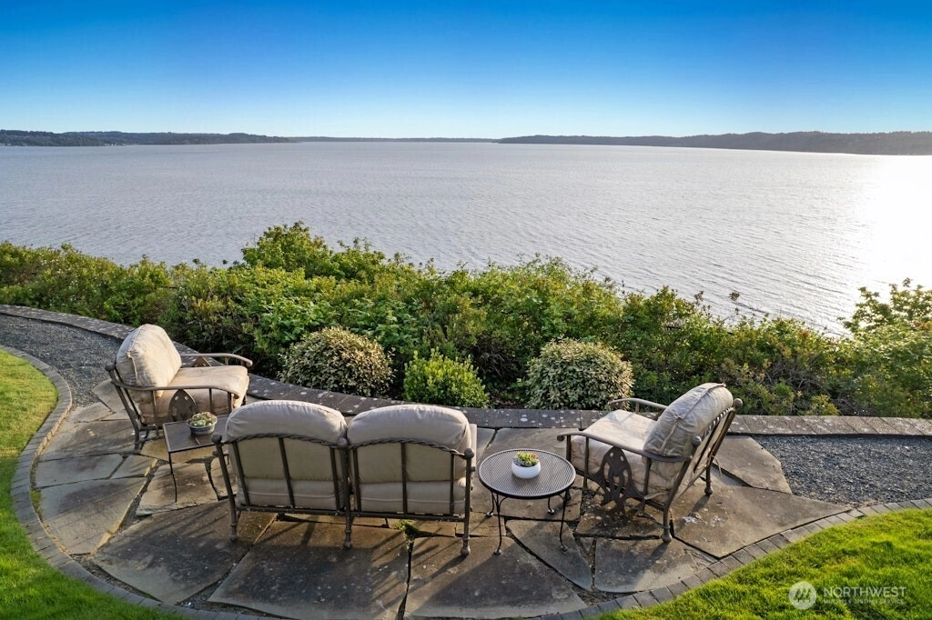Puget Sound coastal oasis w/unobstructed, panoramic views of Sound, Olympics & breathtaking sunsets. Perched on a flat, private, high bluff lot w/150’ of shoreline, shared beach access w/bulkhead. Arbors & gardens welcome you into this stunning 2-story estate w/walls of windows showcasing sweeping views. Chef’s kitchen w/oversized granite island, custom cabinets & professional appls. Main floor primary w/spa-inspired ensuite bath & French doors leading to hot tub. Spacious lower-level media room, bed & bath. Awe-inspiring setting w/three expansive outdoor spaces - built-in eating bar w/BBQ & TV, dining space under the arbor & sprawling blue stone patio to soak in the views. Timeless style, rich in detail & effortless indoor-outdoor living!