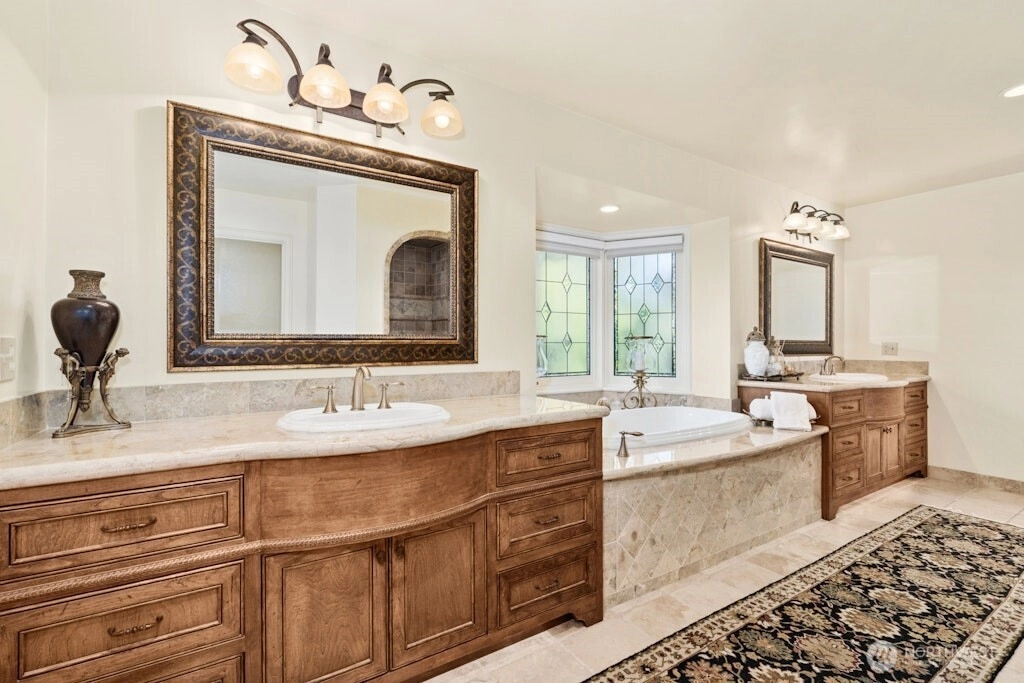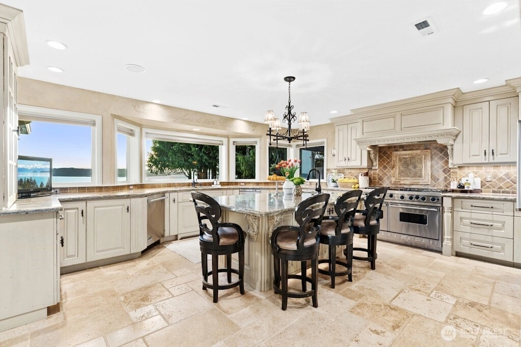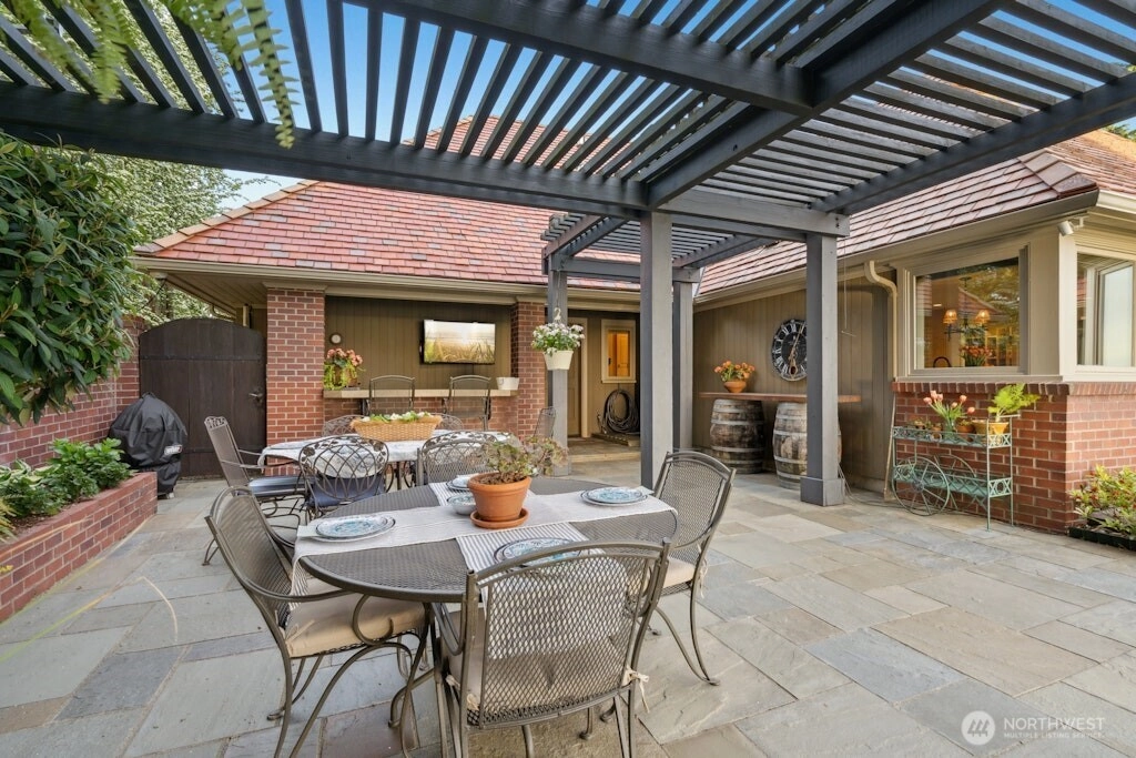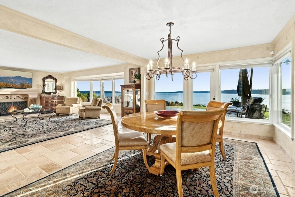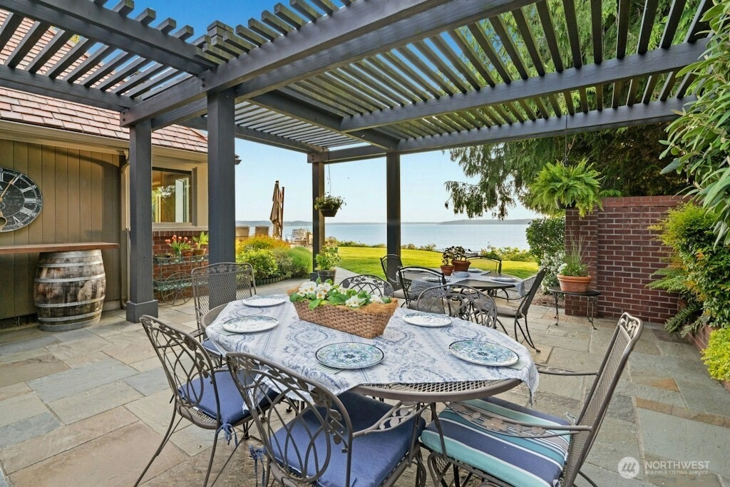 Puget Sound coastal oasis w/unobstructed, panoramic views of Sound, Olympics & breathtaking sunsets. Perched on a flat, private, high bluff lot w/150’ of shoreline, shared beach access w/bulkhead. Arbors & gardens welcome you into this stunning 2-story estate w/walls of windows showcasing sweeping views. Chef’s kitchen w/oversized granite island, custom cabinets & professional appls. Main floor primary w/spa-inspired ensuite bath & French doors leading to hot tub. Spacious lower-level media room, bed & bath. Awe-inspiring setting w/three expansive outdoor spaces - built-in eating bar w/BBQ & TV, dining space under the arbor & sprawling blue stone patio to soak in the views. Timeless style, rich in detail & effortless indoor-outdoor living!