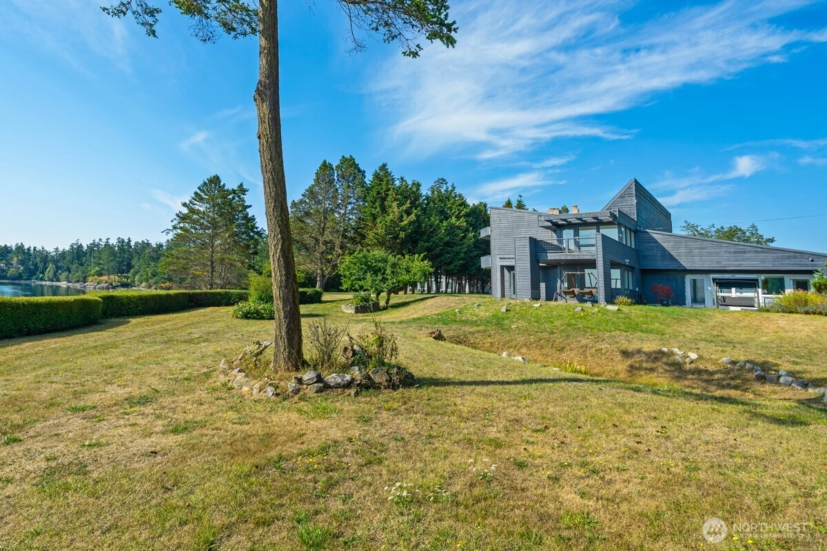 Discover waterfront living with this stunning property and beautiful Griffin Bay views. This spacious home on 3.3 acres, features 3 bedrooms, 3 baths and separate attached apartment with additional bedroom and bathroom perfect for guests. The home includes an office and bonus room, ensuring plenty of space for work and leisure. Attached 2 car garage, porte cochere and detached garage sized for boat and shop, storage space, bathroom, and small home gym w/workout Lululemon Mirror. Stairs lead to a gravel beach & mooring buoy. With a new septic system & private well, fruit trees, swim spa, generator and solar panels, this is a dream property. Two separate parcels, this property is an ideal blend of privacy and accessibility close to town.