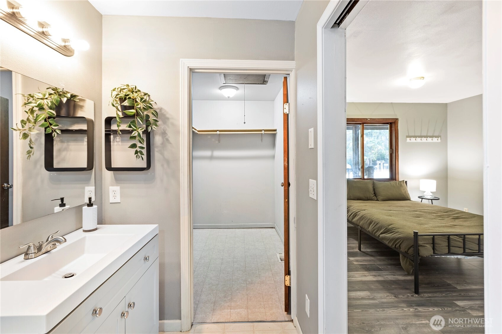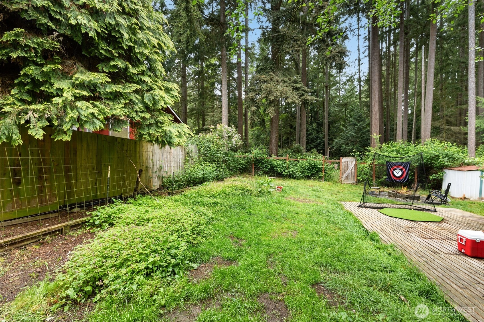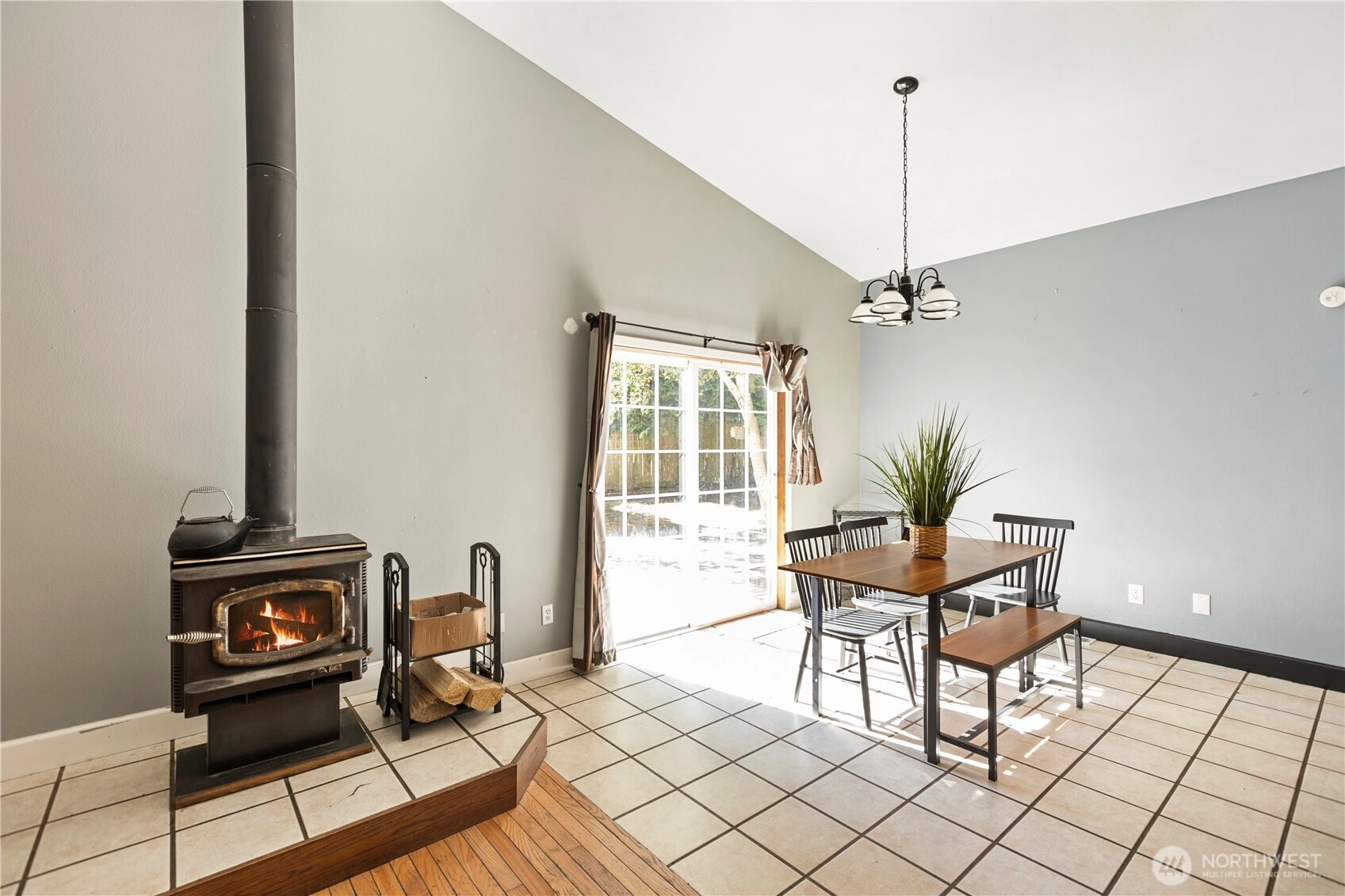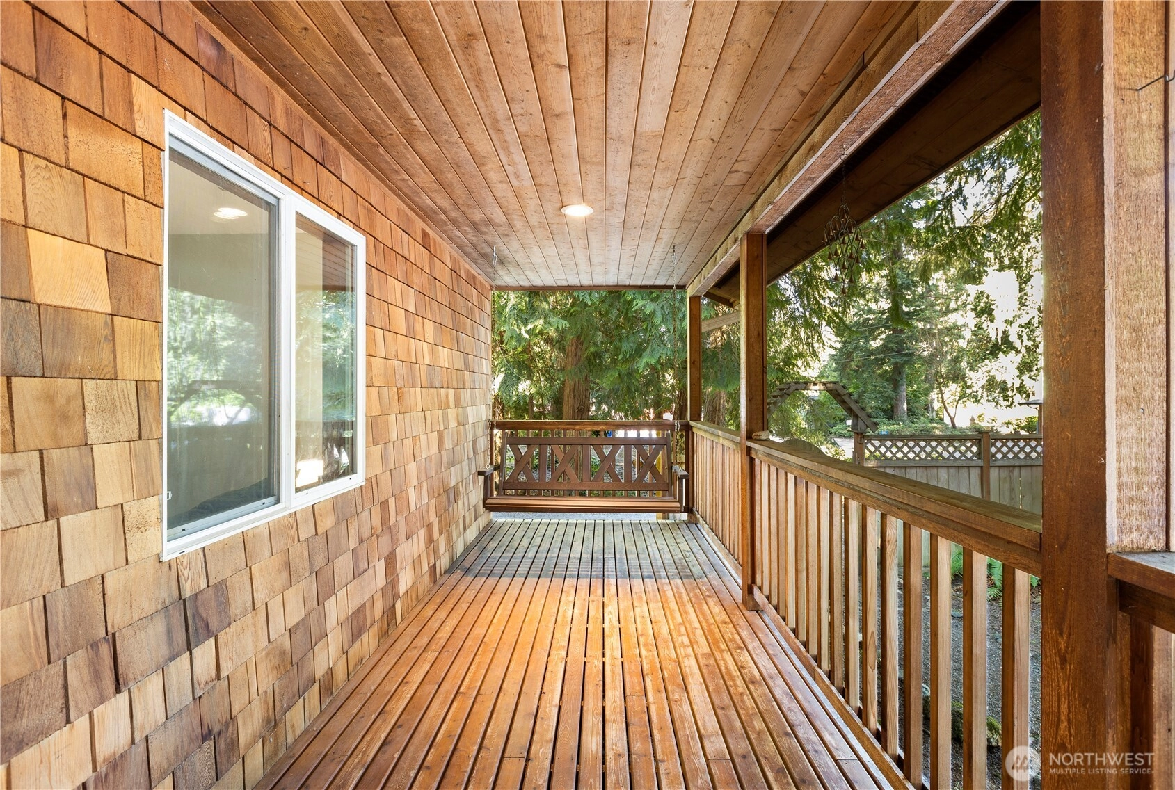 Tucked into a peaceful, wooded setting, this Clinton home offers the perfect blend of comfort and nature. A classic cabin-style front porch welcomes you in, leading to vaulted ceilings, hardwood and tile floors, and a cozy wood stove for chilly evenings. The open kitchen is ideal for everyday living or weekend entertaining. Step outside to your own private oasis with a koi pond and waterfall. The primary suite includes an attached bath. Ample storage throughout. Private access to Deer Lake adds year-round recreation to this serene Whidbey Island getaway.