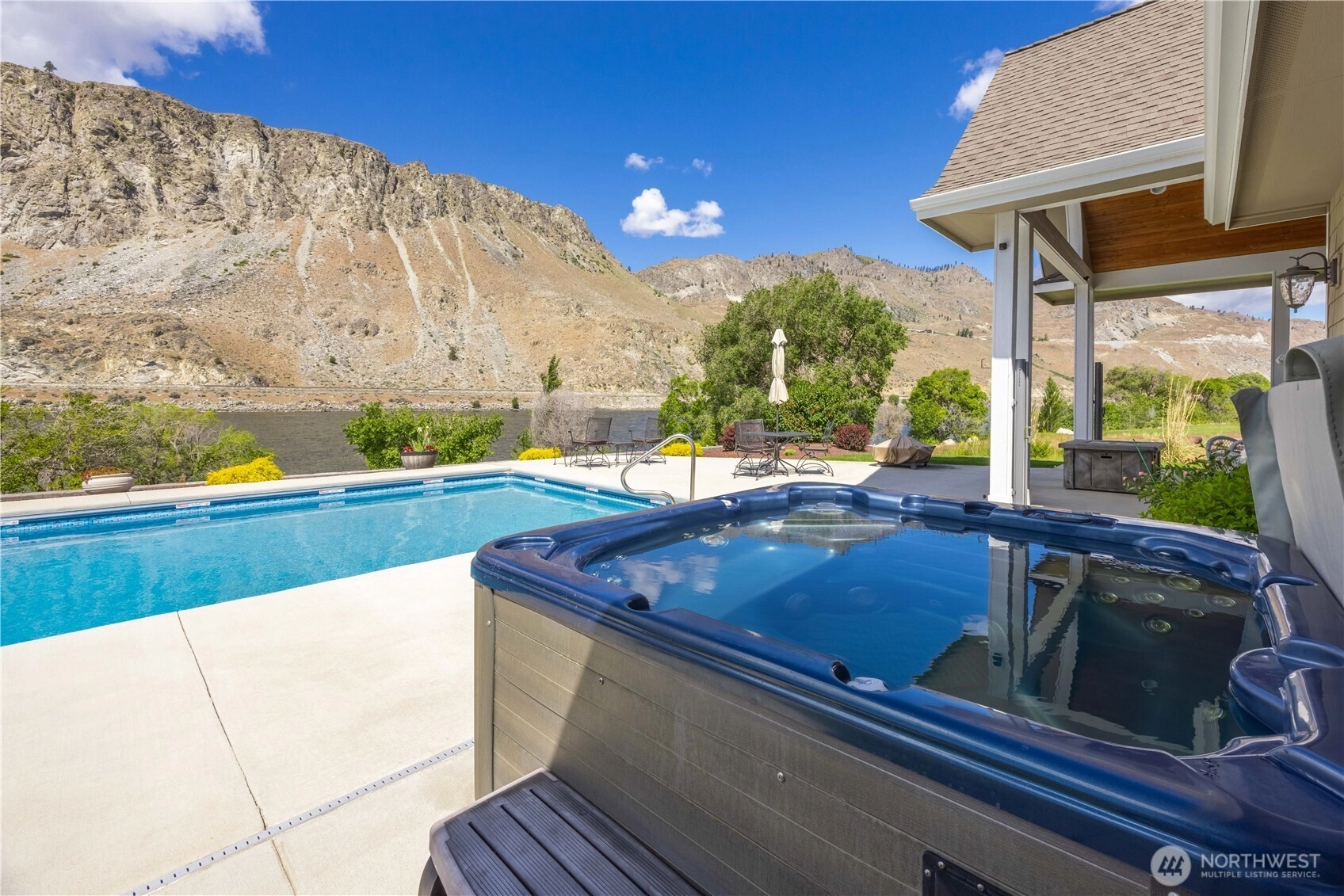 Stunning custom-built WATERFRONT 3bd+/3.5bth, 3,135sf home on the Columbia River just 7 miles from Chelan w/ 1/4 ownership boat slip in private community marina featuring floor-to-ceiling windows w/ multiple sliding glass doors, tile fireplace, entertainer’s kitchen, 2-bay oversized heated garage & the best indoor/outdoor living w/ heated outdoor pool, hot tub, BBQ area, fire table seating & expansive lawn overlooking the river. The kitchen features granite countertops & stainless appliances. The main level includes primary bedroom w/ walk-in closet, spa-inspired bath tile shower, bonus/media, 2 bedroom w/ jack & jill bath. The upper level offers bunk/bonus room & 3rd bath spacious for living. Two full hookups (Power, water and septic).