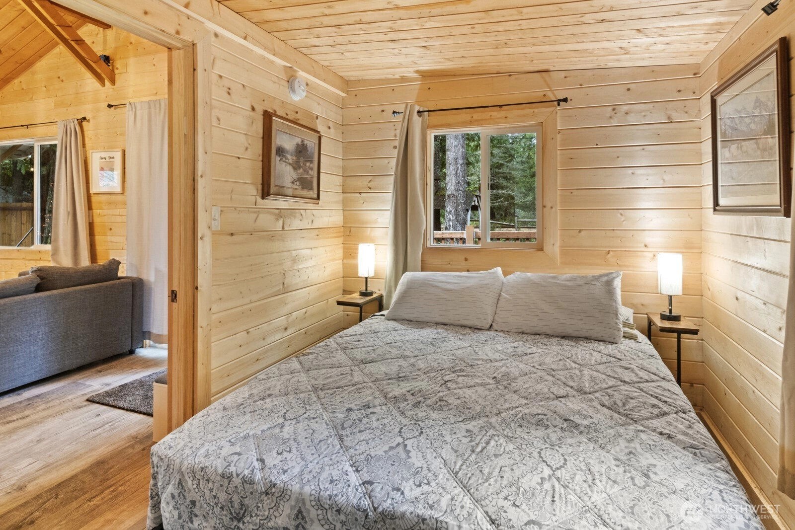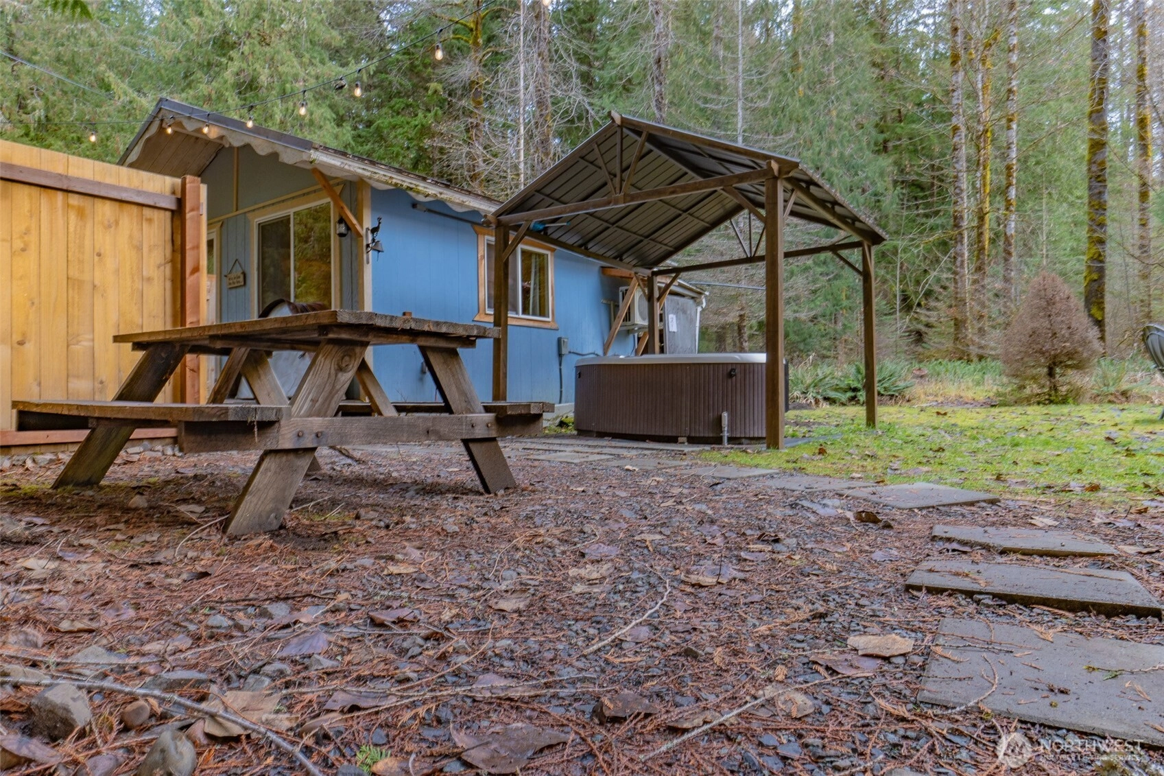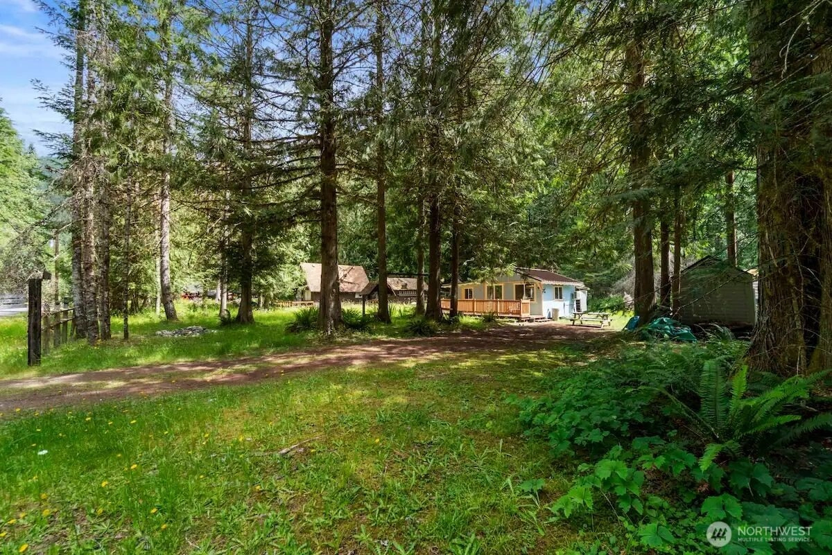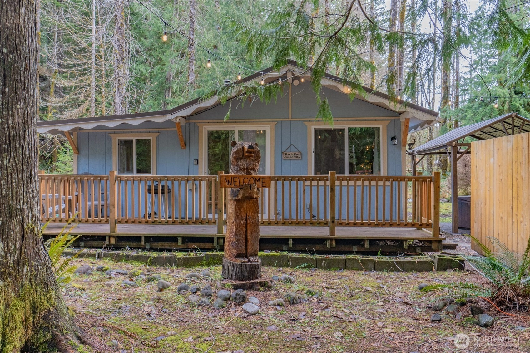 Nisqually Park is just steps from the Mt Rainier park entrance. Currently an Air BnB that generates 62K+. Fantastic wooded location with large lot. Brand new 3 BR septic, easily add addl. ADU or tiny home for added income stream. Completely remodeled, this retreat is tucked among the trees and is a perfect getaway or small vacation home. Relax in your private hot tub, nap in a hammock and enjoy eco-friendly comforts like cedar-lined walls, and a cozy tiny-home design with all the comforts of home. Crafted with rustic warmth & timeless character, the cabin blends natural wood interiors, exposed beams, mini split & windows that frame amazing views of the surrounding peaks w/loads of privacy.