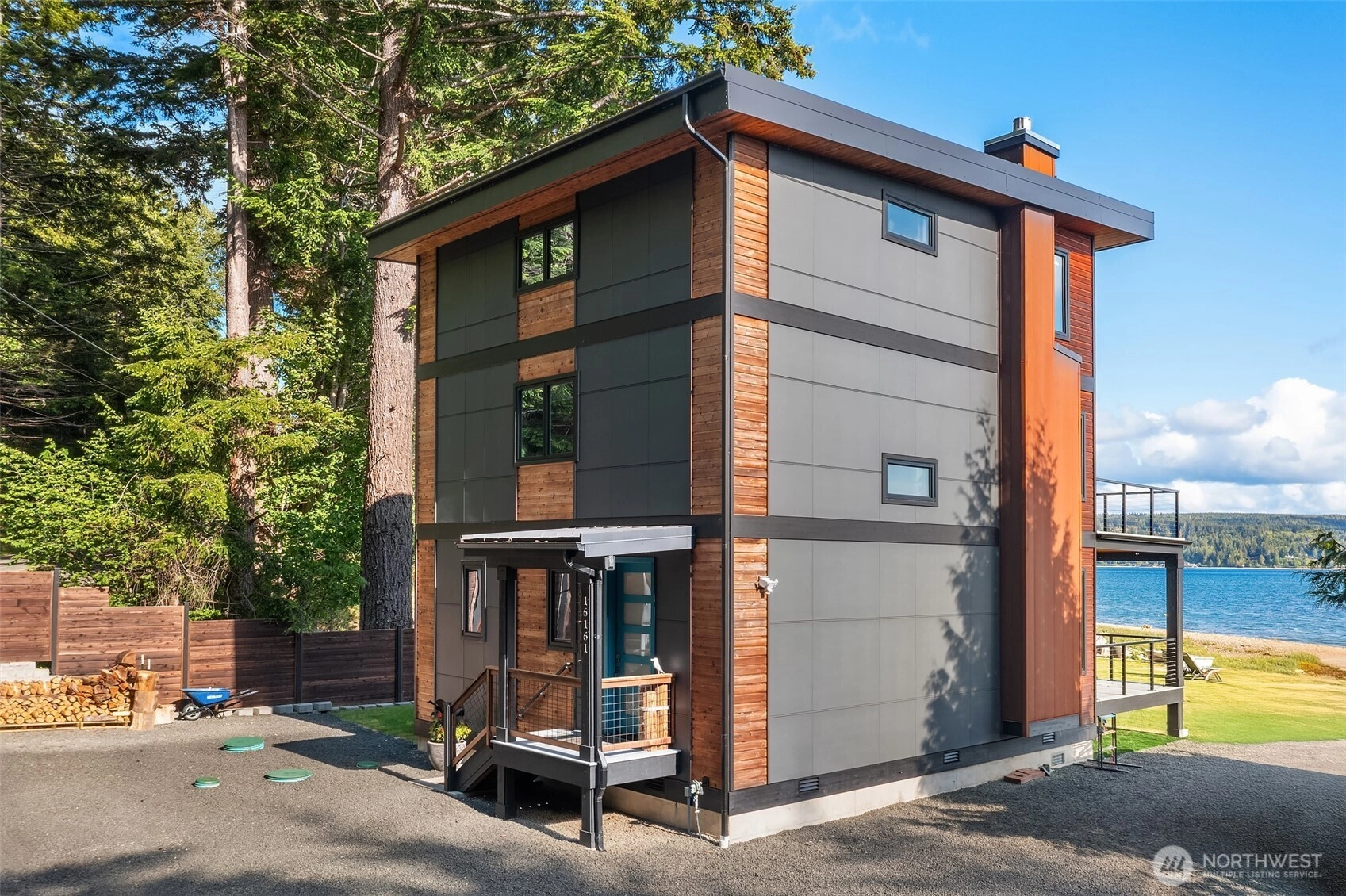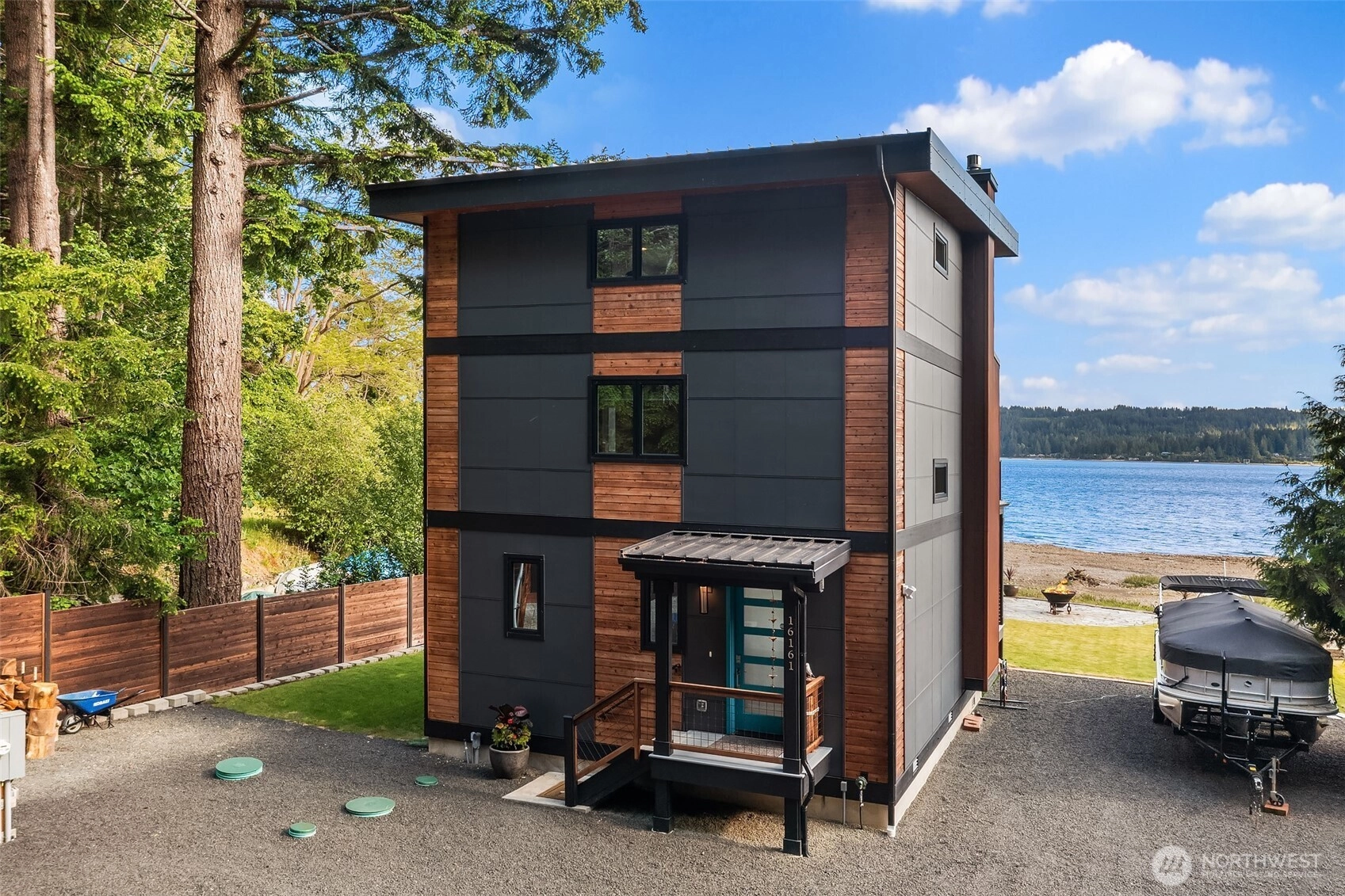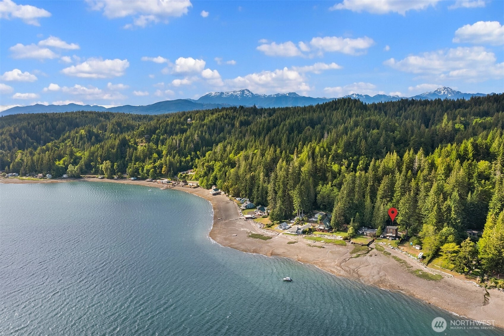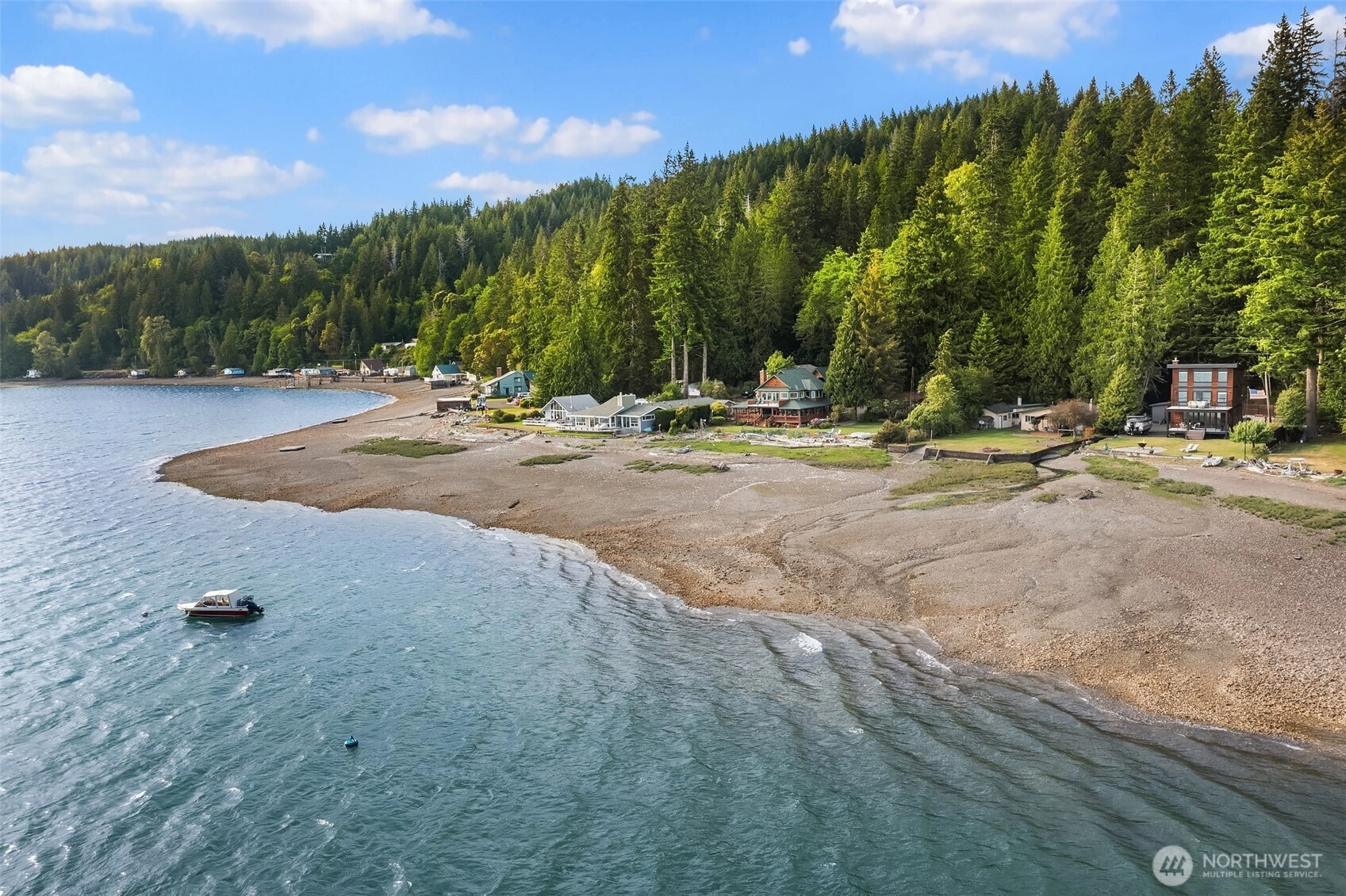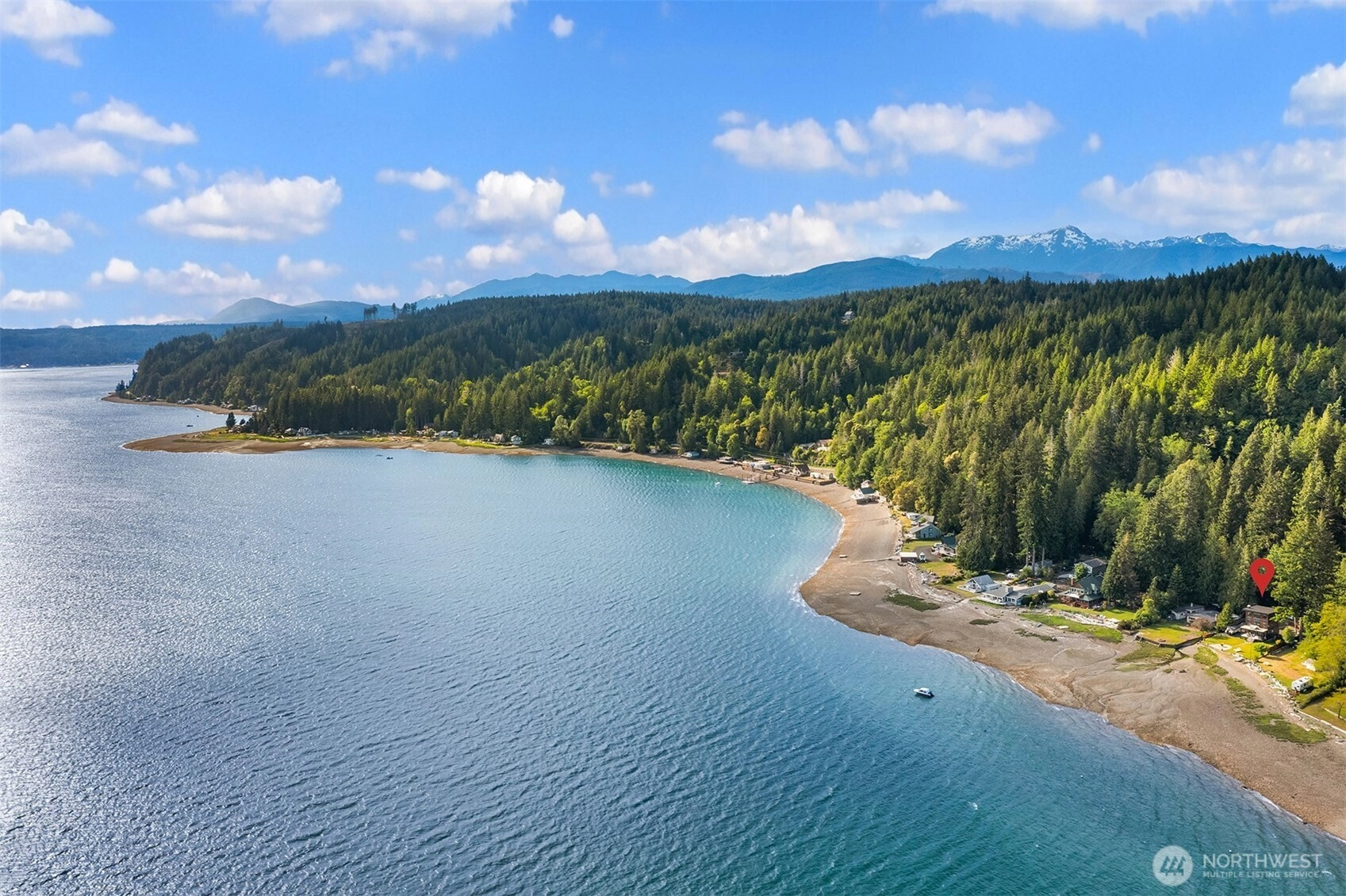 Modern comfort meets Hood Canal waterfront living in this rare new build with 77' of pristine, south-facing shoreline—just 90 minutes from Seattle. Savor sunsets over the Olympic foothills, relax by a fire at the water’s edge, or harvest oysters from your private beach. Nestled beside a peaceful creek & directly across from Alderbrook Resort, this serene retreat offers 2 bedrooms, 1.75 baths & flexible spaces for work or creativity. The chef’s kitchen features quality finishes, a 5-burner stove & dual refrigerators. Folding doors open to a covered porch, blending indoor & outdoor living for year-round enjoyment. Welcome to your Hood Canal escape.