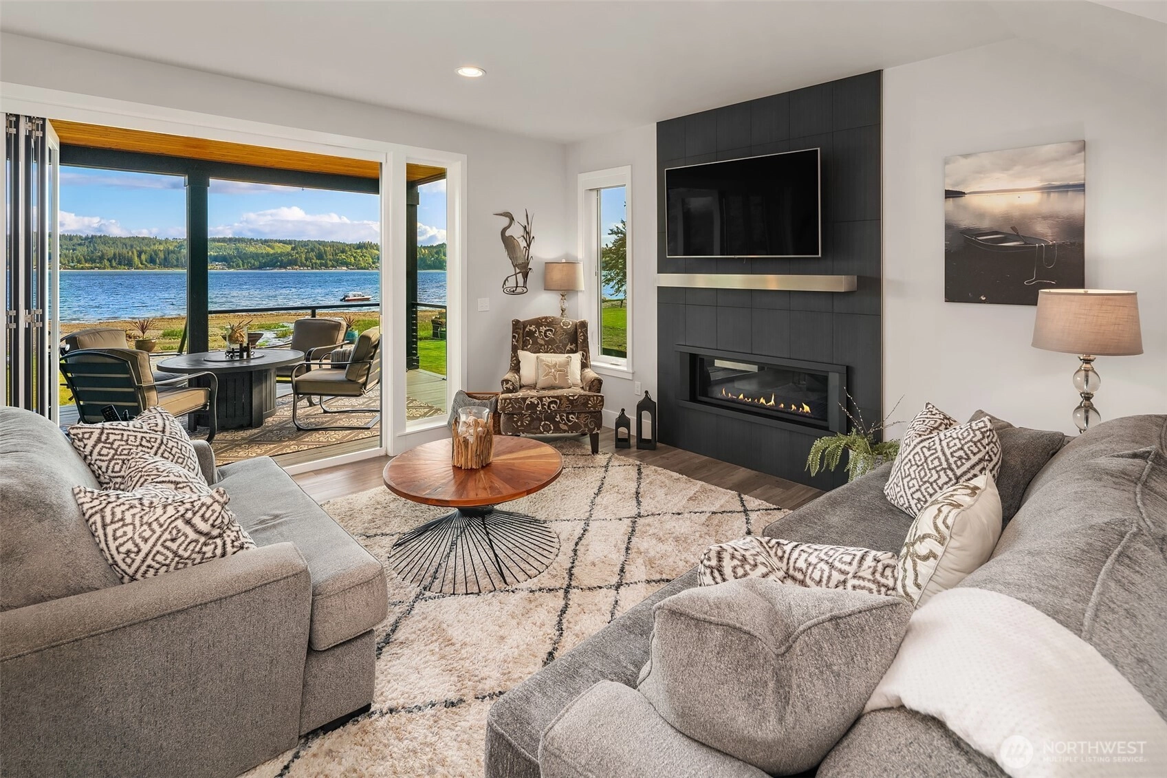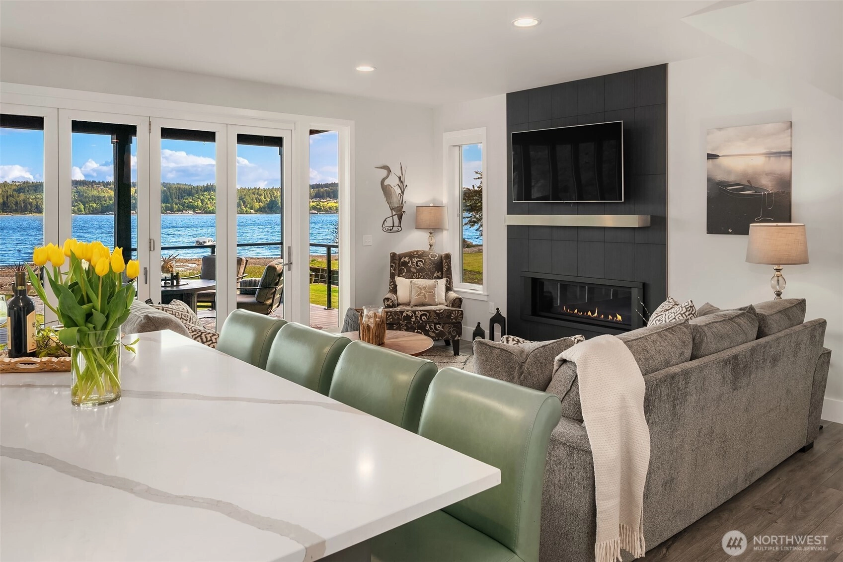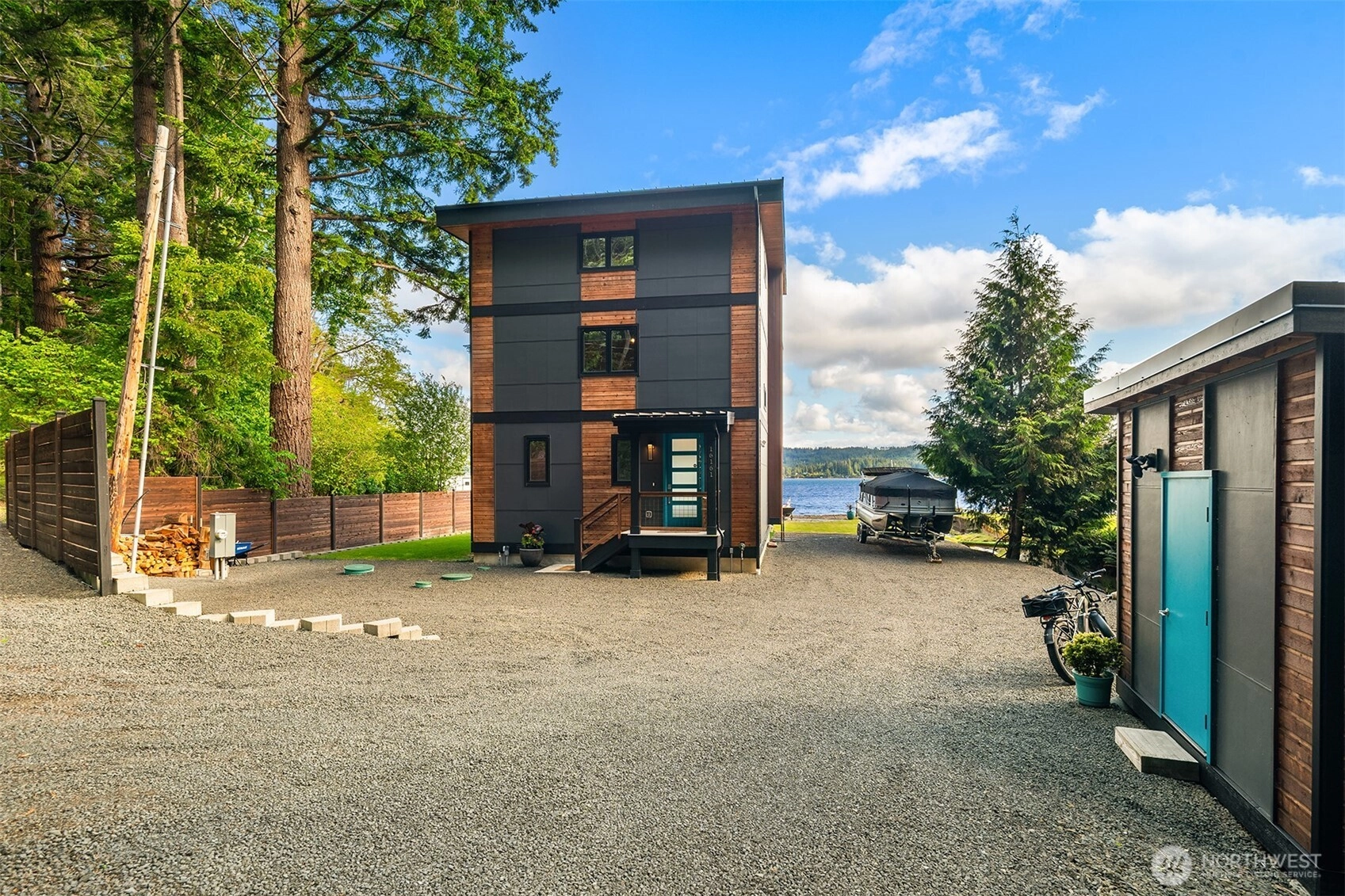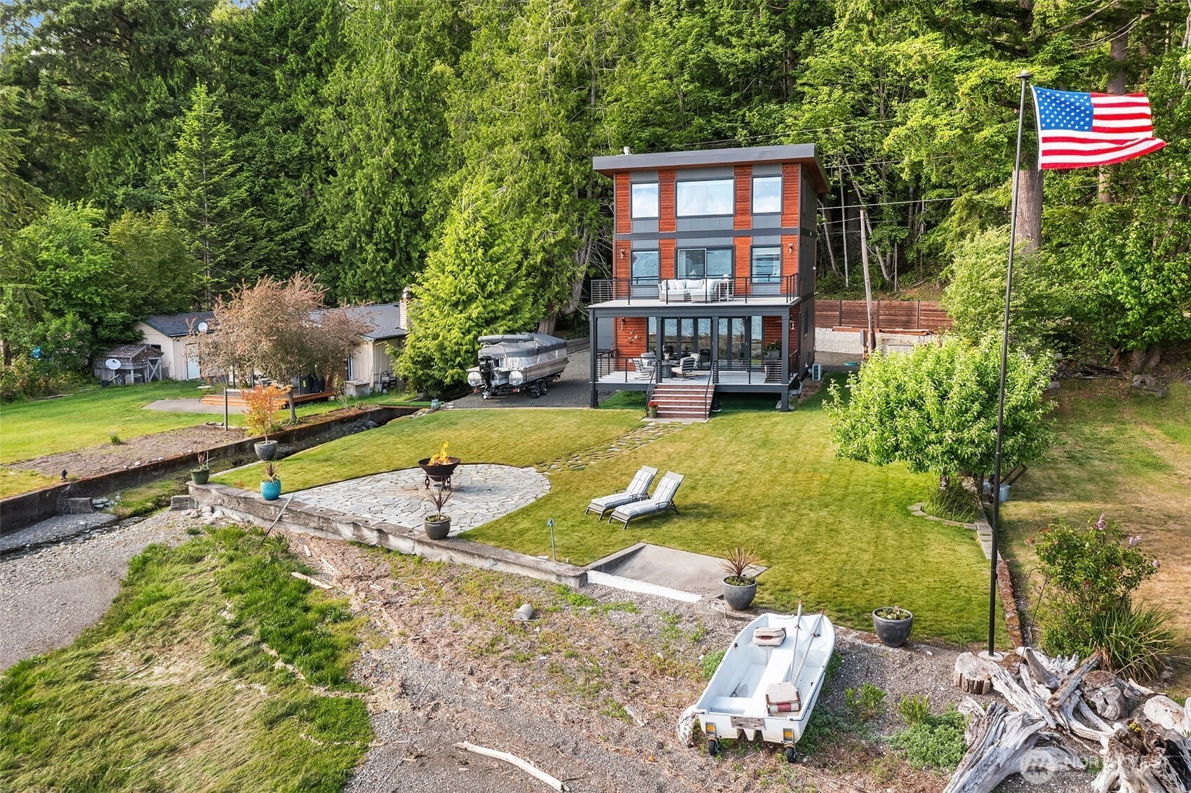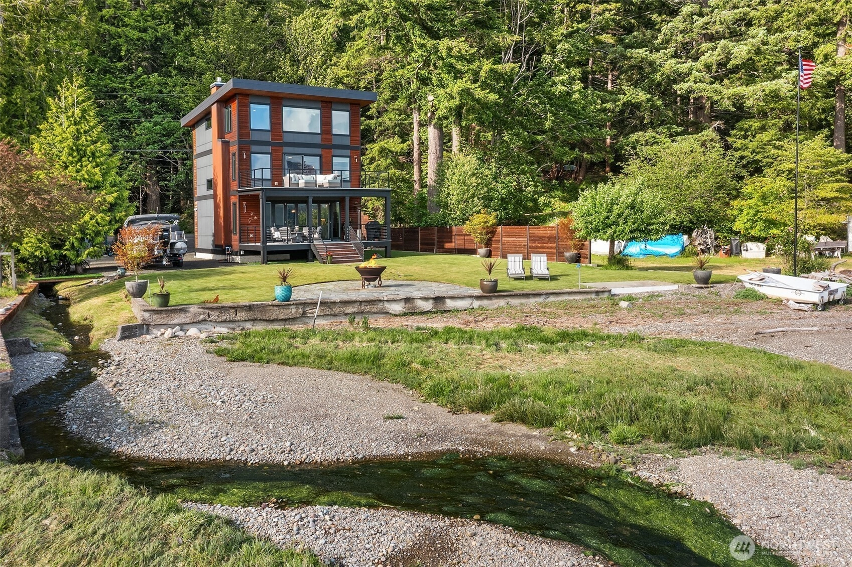 Modern comfort meets Hood Canal waterfront living in this rare new build with 77' of pristine, south-facing shoreline—just 90 minutes from Seattle. Savor sunsets over the Olympic foothills, relax by a fire at the water’s edge, or harvest oysters from your private beach. Nestled beside a peaceful creek & directly across from Alderbrook Resort, this serene retreat offers 2 bedrooms, 1.75 baths & flexible spaces for work or creativity. The chef’s kitchen features quality finishes, a 5-burner stove & dual refrigerators. Folding doors open to a covered porch, blending indoor & outdoor living for year-round enjoyment. Welcome to your Hood Canal escape.