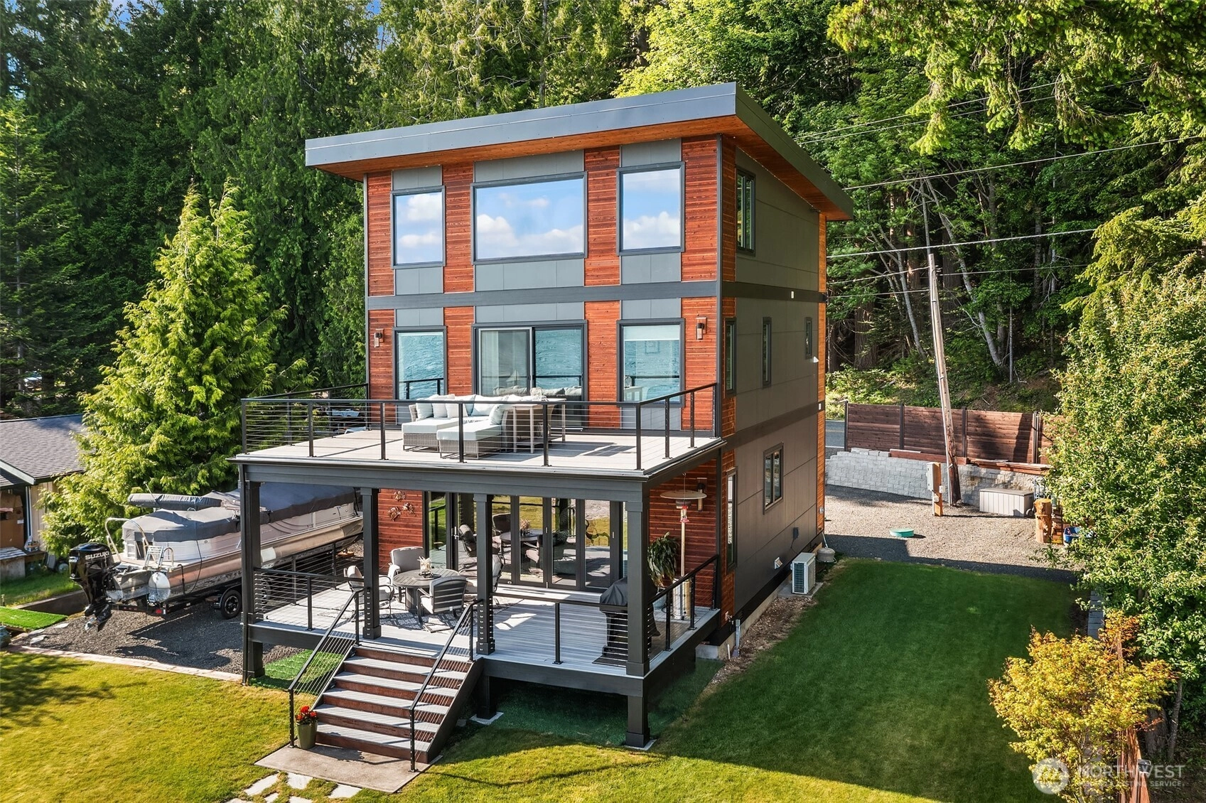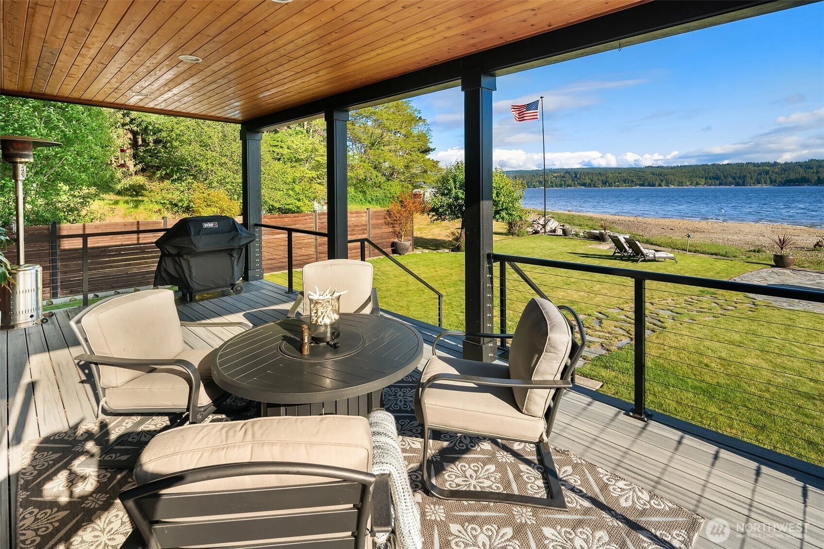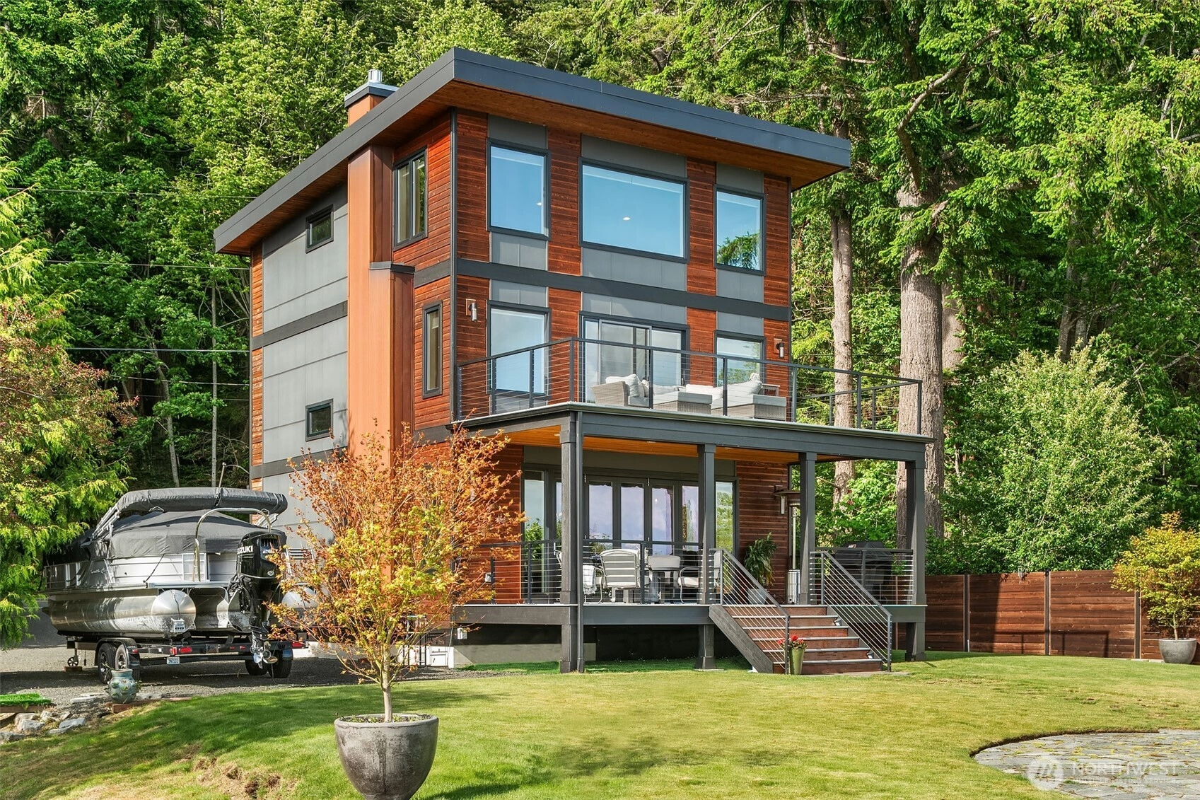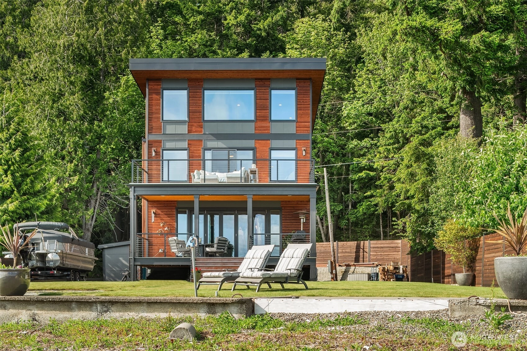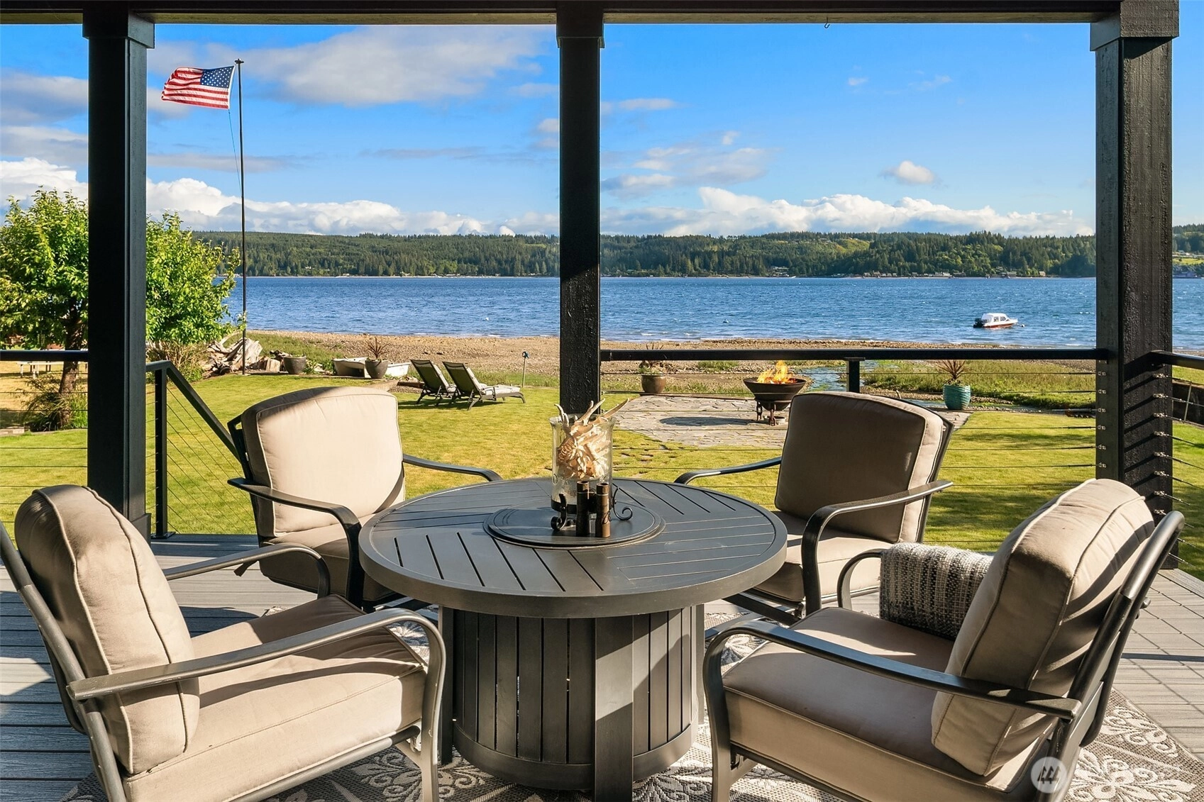 Modern comfort meets Hood Canal waterfront living in this rare new build with 77' of pristine, south-facing shoreline—just 90 minutes from Seattle. Savor sunsets over the Olympic foothills, relax by a fire at the water’s edge, or harvest oysters from your private beach. Nestled beside a peaceful creek & directly across from Alderbrook Resort, this serene retreat offers 2 bedrooms, 1.75 baths & flexible spaces for work or creativity. The chef’s kitchen features quality finishes, a 5-burner stove & dual refrigerators. Folding doors open to a covered porch, blending indoor & outdoor living for year-round enjoyment. Welcome to your Hood Canal escape.