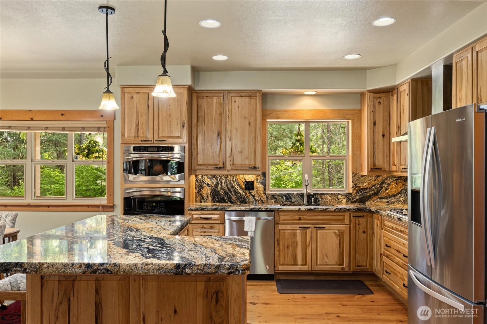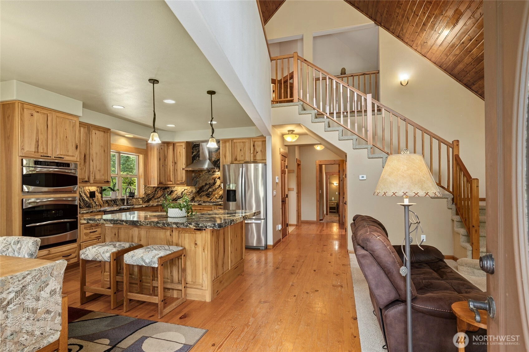 Imagine a retreat minutes away from Lake Cle Elum and mountain trails. Custom built 4 bedrooms, 3 baths sited on 3 private acres. Great room open concept embraces vaulted ceilings and natural light, fireplace. Primary suite with huge walk in closet, sliders open to patio with hot tub. PLUS 2 bedrooms, 1 bath apartment (936 sf) over garage. Media & bonus room (840 sf) over 4 car garage, shop. Circular driveway, completely fenced. Can you imagine summer fun at the lake and snowmobiling in the winter? Check it out.