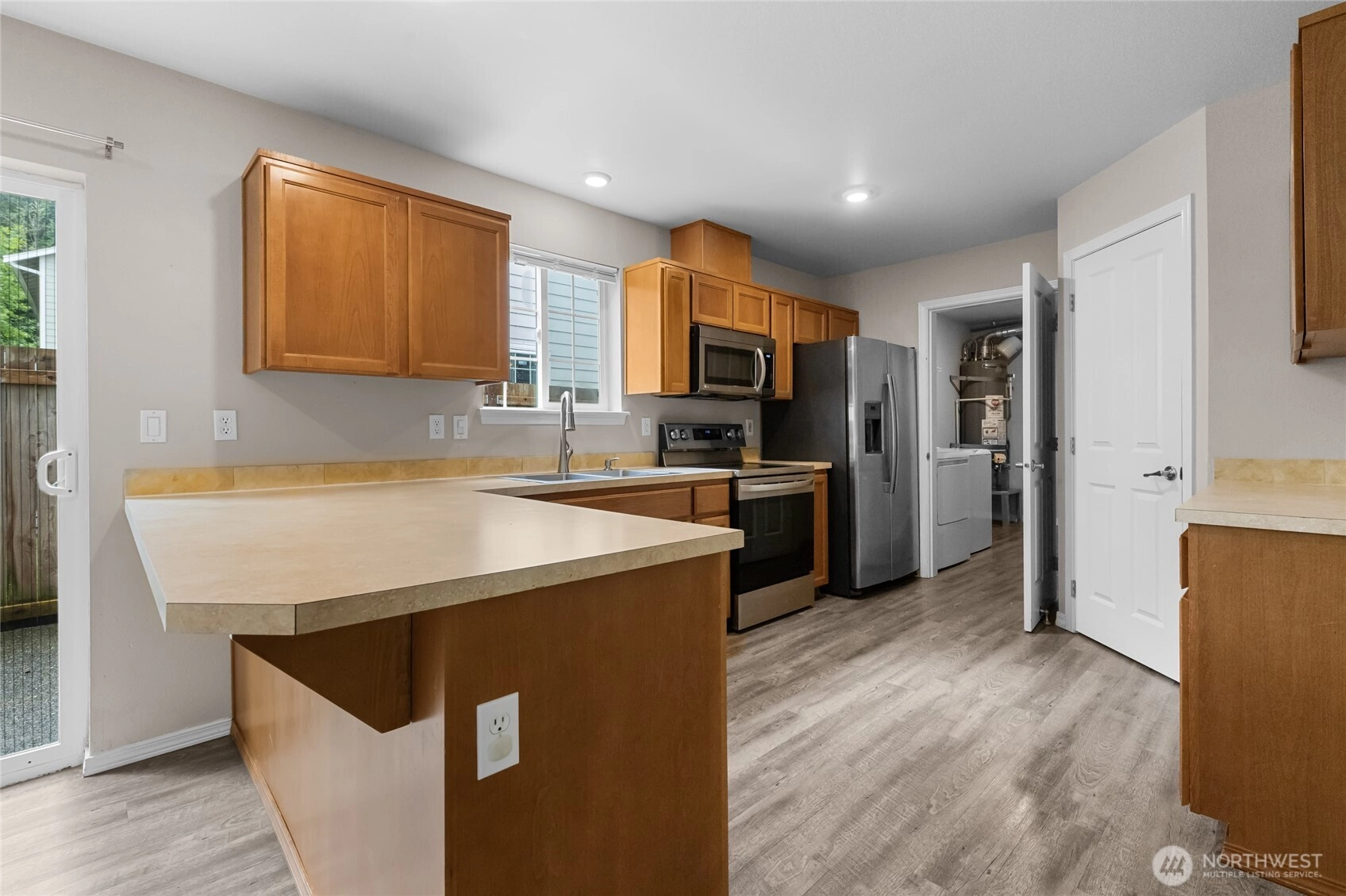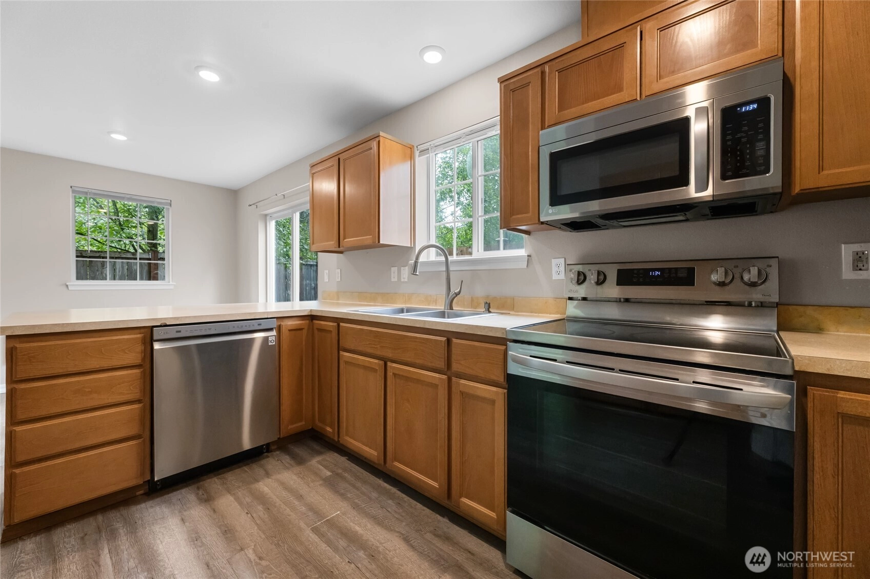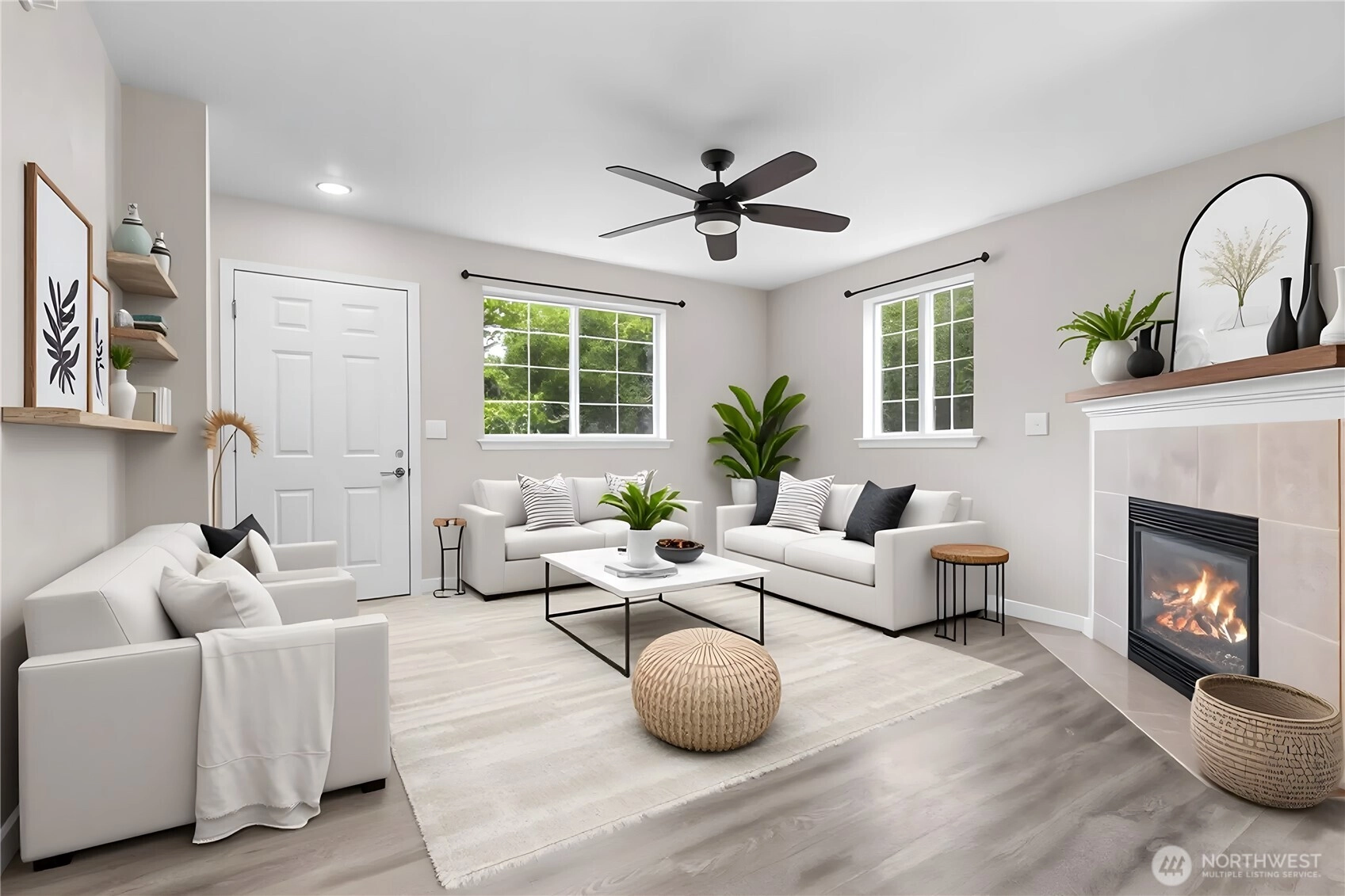Welcome to this charming 3 Bedroom/2.25 Bath home in the sought-after Emerald Glen neighborhood! Duplex style townhome is a hybrid of single family living. Enjoy a bright, open-concept living area with a cozy fireplace, plus a modern kitchen with ample storage and Stainless Steel appliances. Upstairs features a spacious primary suite with a walk-in closet and a ¾ bath, two additional bedrooms, and a full bath. Efficient Mini Split with A/C! Relax on your private patio with a fenced backyard. The community offers a sports park with courts. Low HOA dues of $170 a month include lawn care. Fantastic schools, minutes to Sunrise Village, Sunrise Park, JBLM, and Costco! Best value in the area. Won't last long!