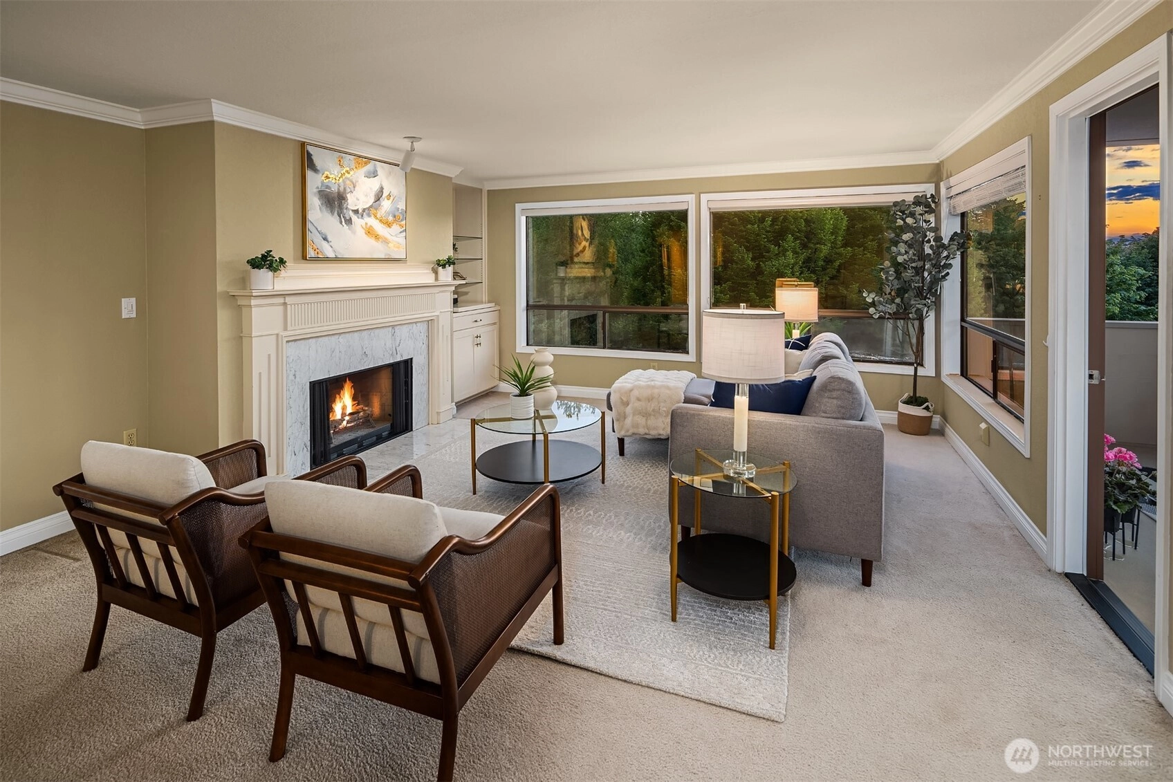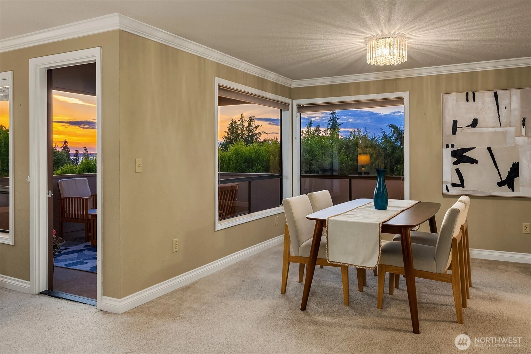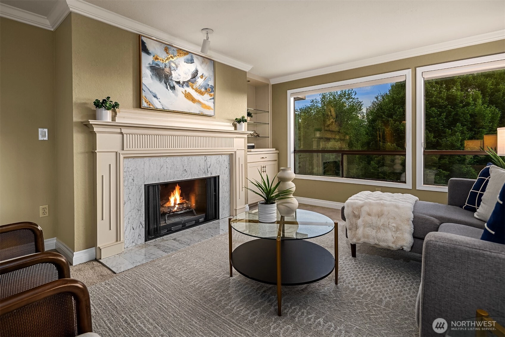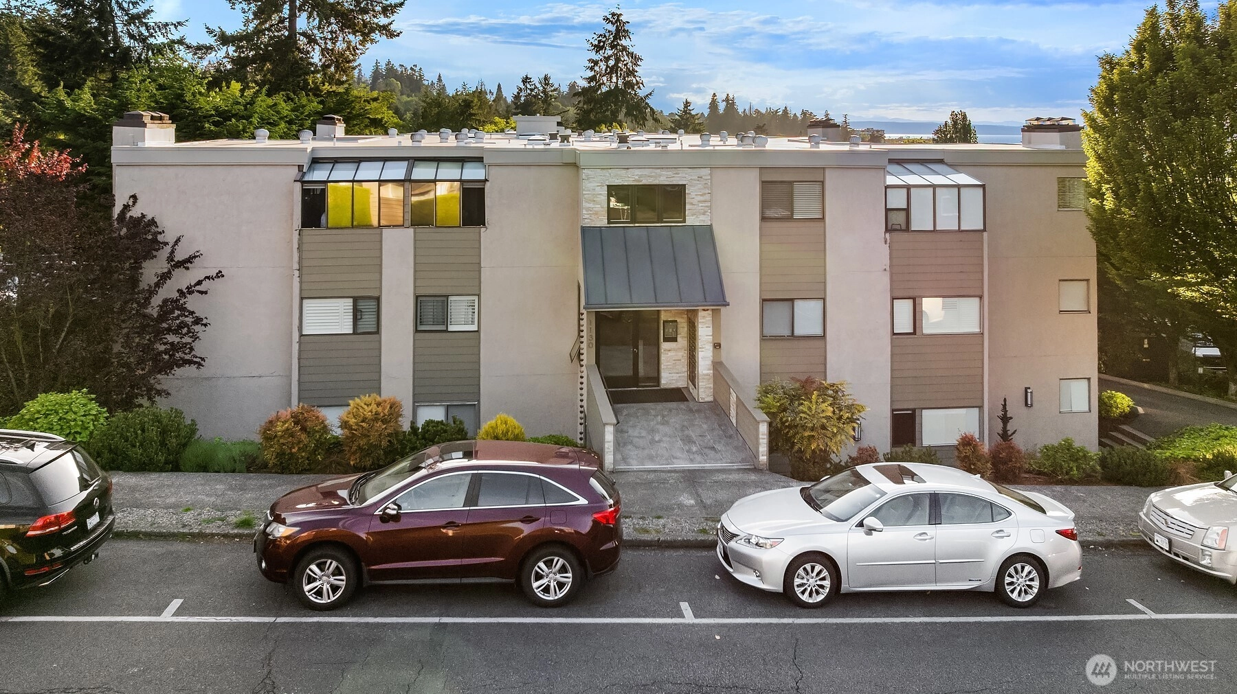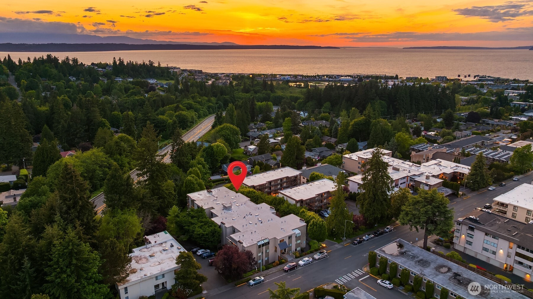 Gorgeous Sunset View Condo in the coveted Edmonds bowl! 2-bed 2-bath corner unit, thoughtfully designed w oversized windows. This light-filled home features a warm & welcoming living room w wood-burning fireplace & an updated kitchen. Perfect for hosting guests or enjoying a quiet evening in. Step outside to your spacious private deck w a peekaboo view of the shimmering Puget Sound & the majestic Olympic Mountains. The primary suite boasts an en-suite ¾ bath, the second bedroom offers flexibility for guests, a home office, or a creative retreat. Addl highlights: Elevator, in-unit laundry, & private garage w opener. Just a 5-minute walk to DT Edmonds w charming shops, local dining & seaside strolls. MUST SEE to Appreciate! Preinspected!