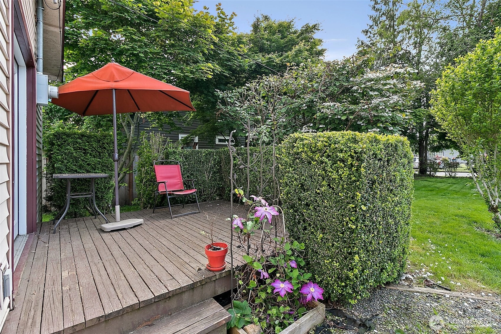 This is a nice 3-bedroom, 2-bathroom home, encompassing approximately 1,200 square feet, has been thoughtfully enhanced with beautiful hardwood floors and fresh paint. Privacy is paramount in this lovely home, particularly within the master suite, which boasts its own secluded retreat complete with a full private bathroom, offering a tranquil sanctuary for relaxation. Although the house is 1,200 sq ft the open concept layout makes the home feel much larger. Enjoy the double French doors that open directly onto a private deck. Beautifully landscaped grounds, walking distance to daycare and close to school bus stops and parks this is the perfect starter home.