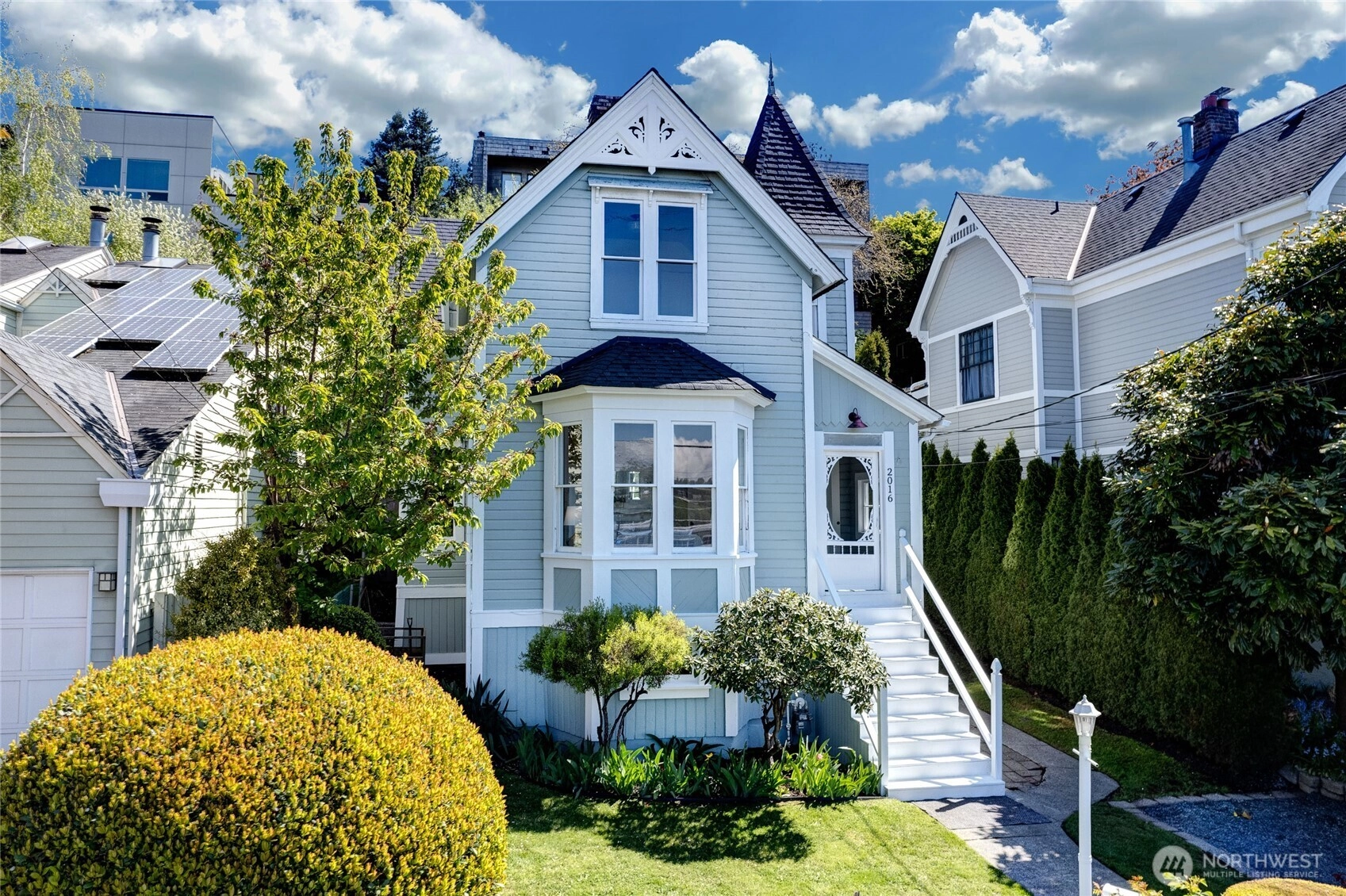 Price Reduction--located on the west slope of Queen Anne, this historical Victorian home has territorial views of Magnolia & the Sound! Bay view windows w/ leaded glass,crown moldings & the original wood burning fireplace are the many preserved details in this home. Thoughtful upgrades:the lower level family room & main level remodeled kitchen w/ butcher block counters,cabinetry,breakfast bar & SS appliances.Entertain in a grand dining room that seats 10. The upper level showcases all 3 bedrooms,a full bath & an in-home office/hobby room.The professionally designed backyard and patio w/ so many plantings & fruit trees provides hours of enjoyment. Minutes to downtown Seattle, Fremont & Ballard eateries.Whole Foods & retail are steps away.