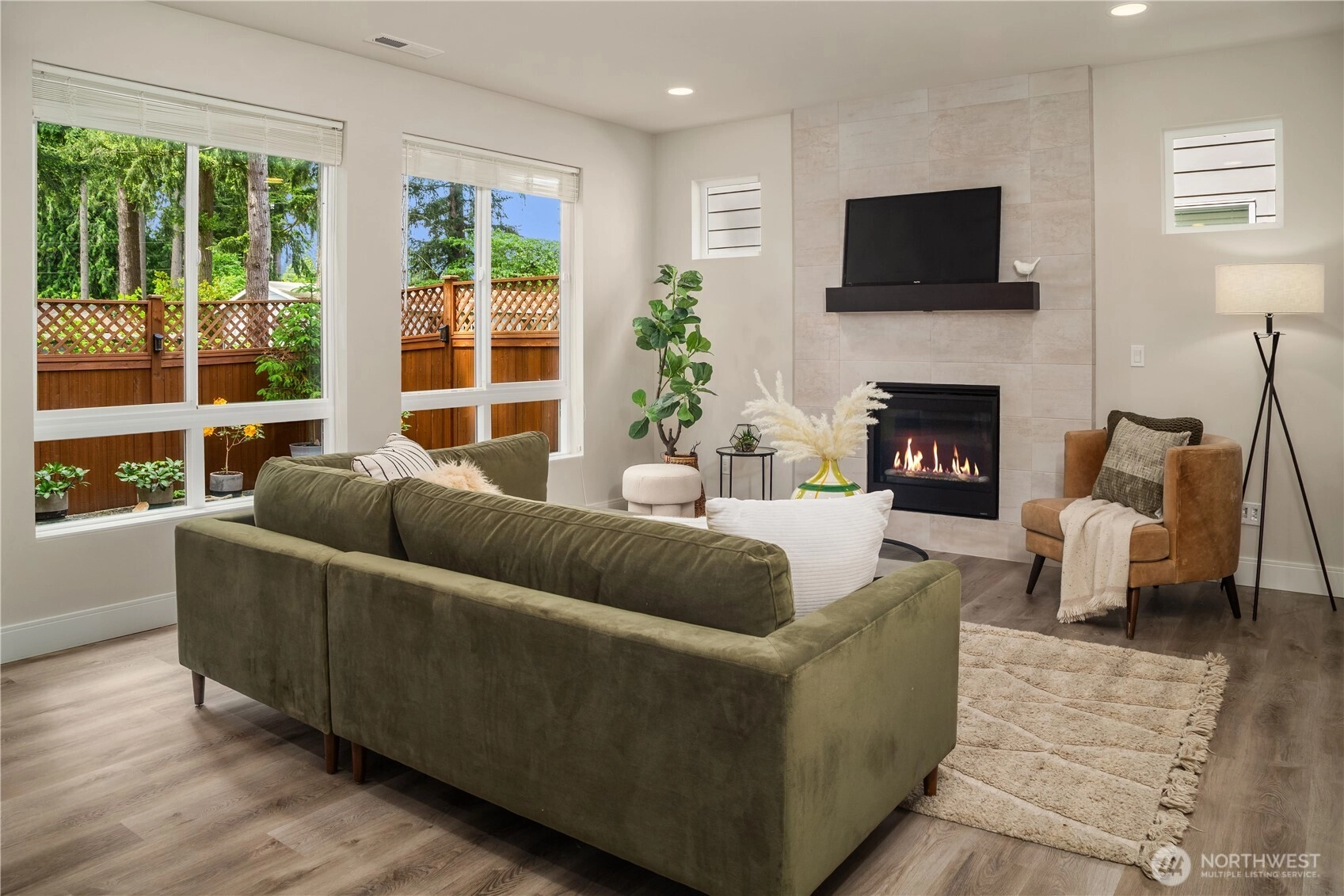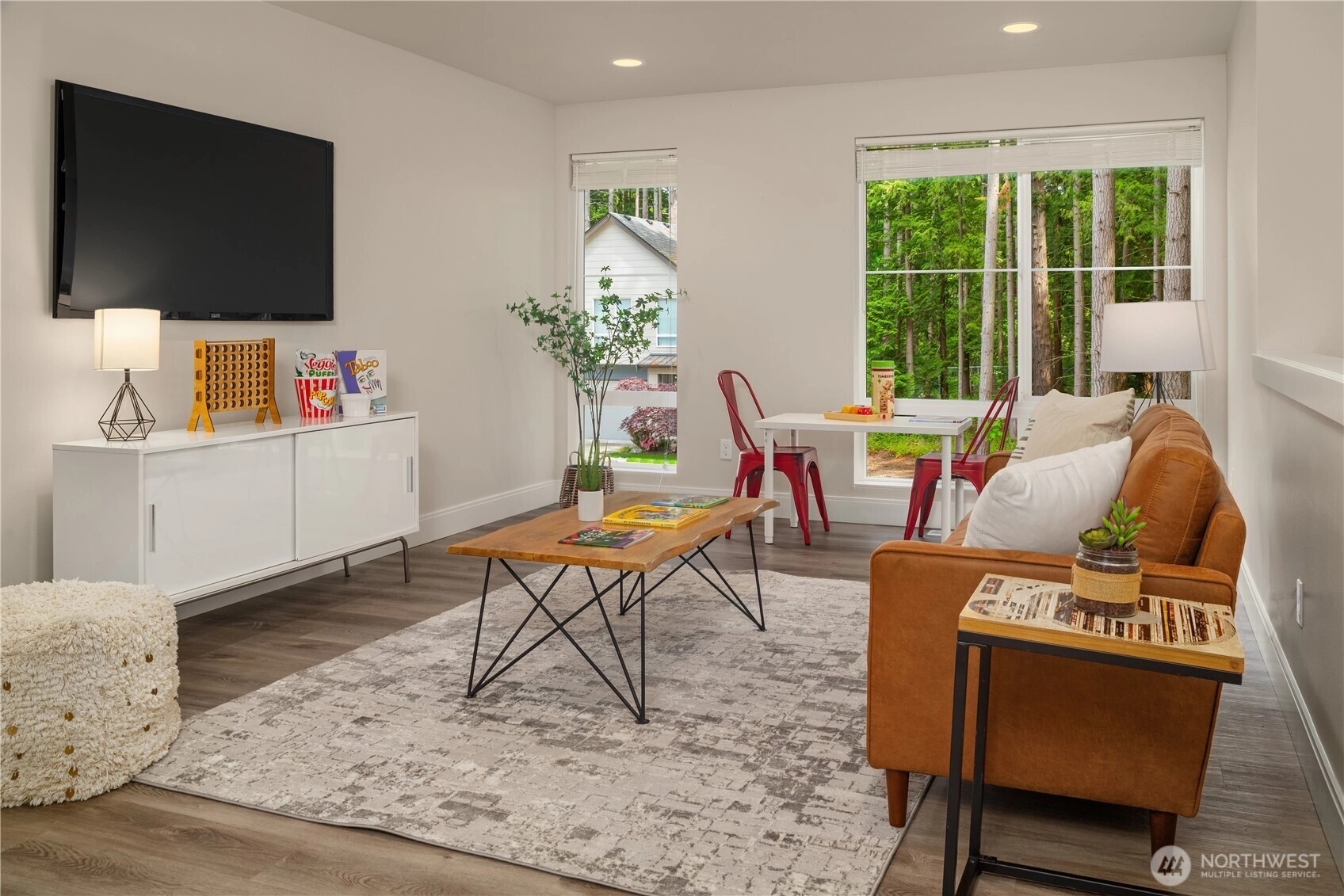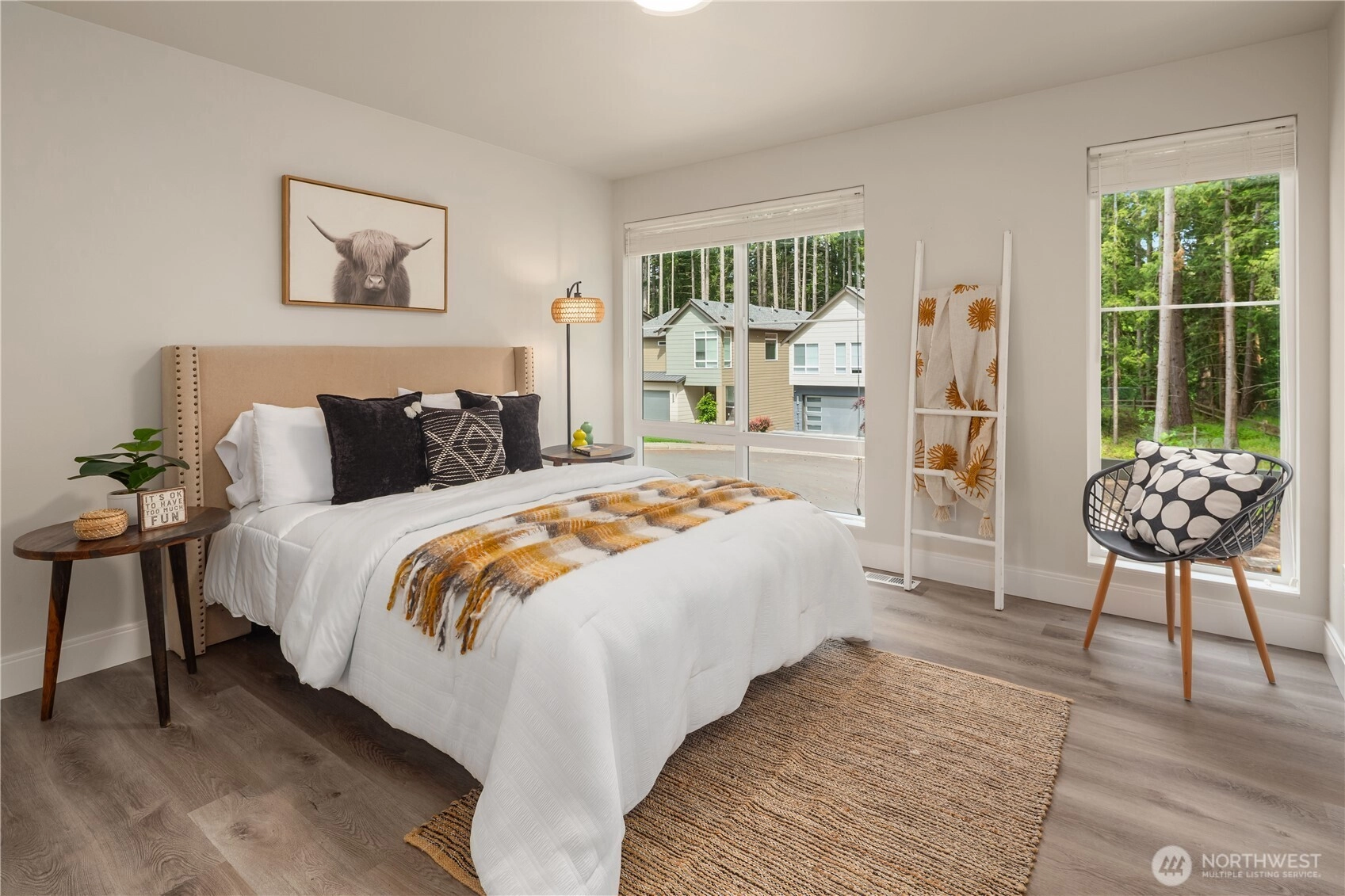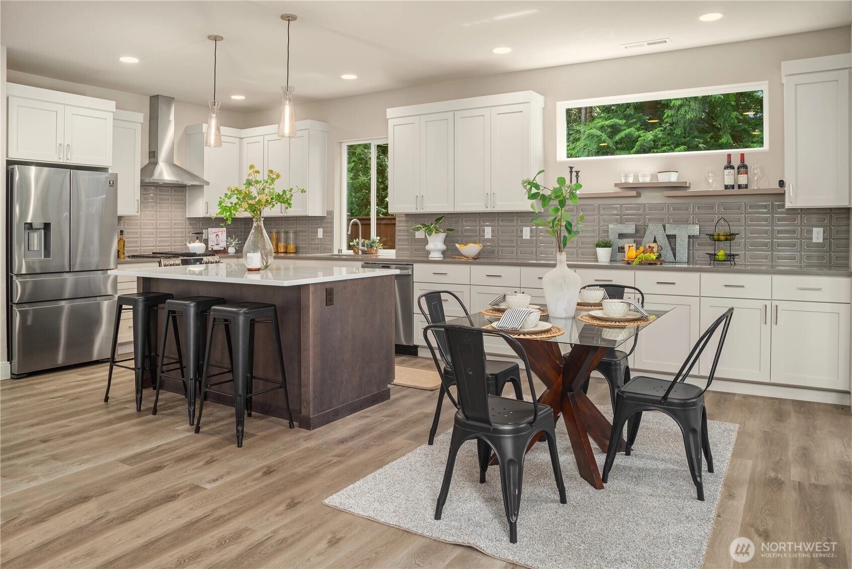 Experience tranquil luxury in this beautifully appointed home, ideally located at the end of a peaceful, friendly cul-de-sac. Thoughtfully designed & impeccably maintained, it seamlessly blends modern elegance with everyday comfort. The open-concept kitchen is a dream for entertainers—featuring slab quartz countertops, ss appliances, & access to a private, covered patio. Upstairs, retreat to a spacious primary suite w spa-like 5-piece bath, alongside a flexible bonus space + two additional bedrooms. A fourth bedroom is conveniently located on the main level, perfect for guests or a dedicated home office. Oversized windows throughout the home frame views of lush greenery & an adjacent greenbelt, showcasing serene PNW beauty. Welcome home!