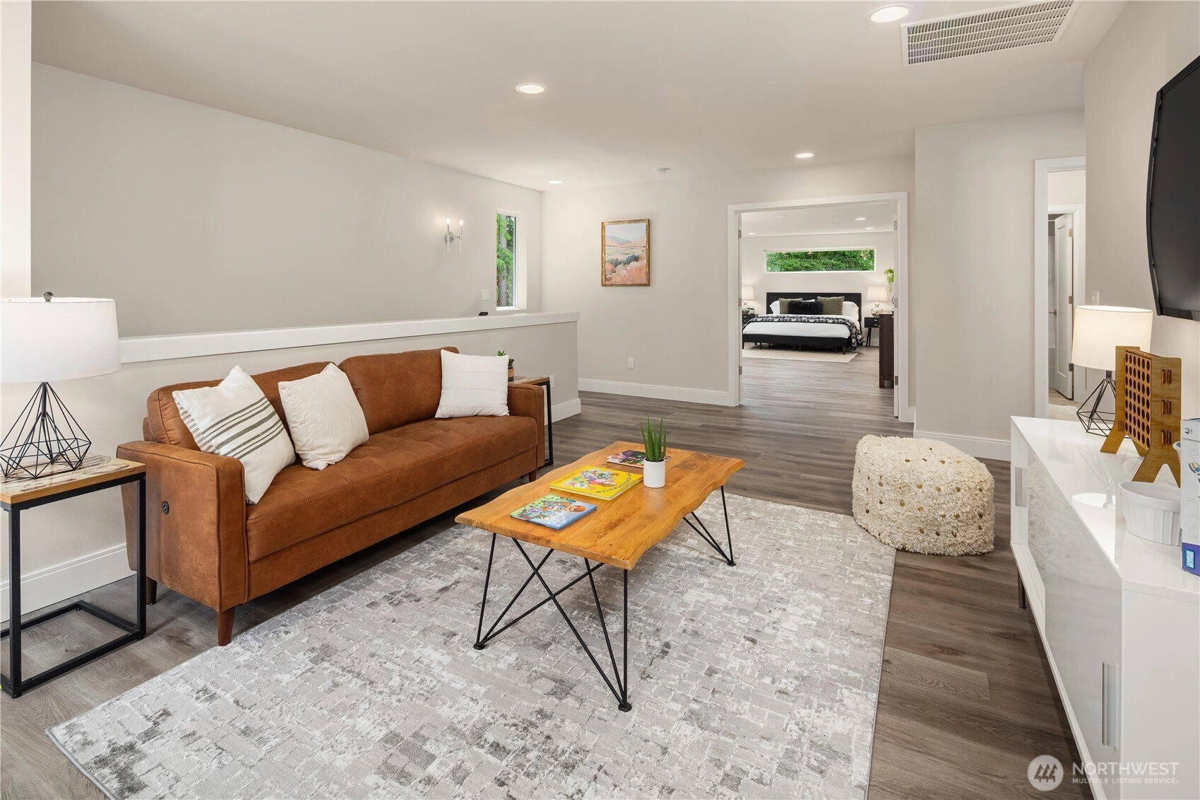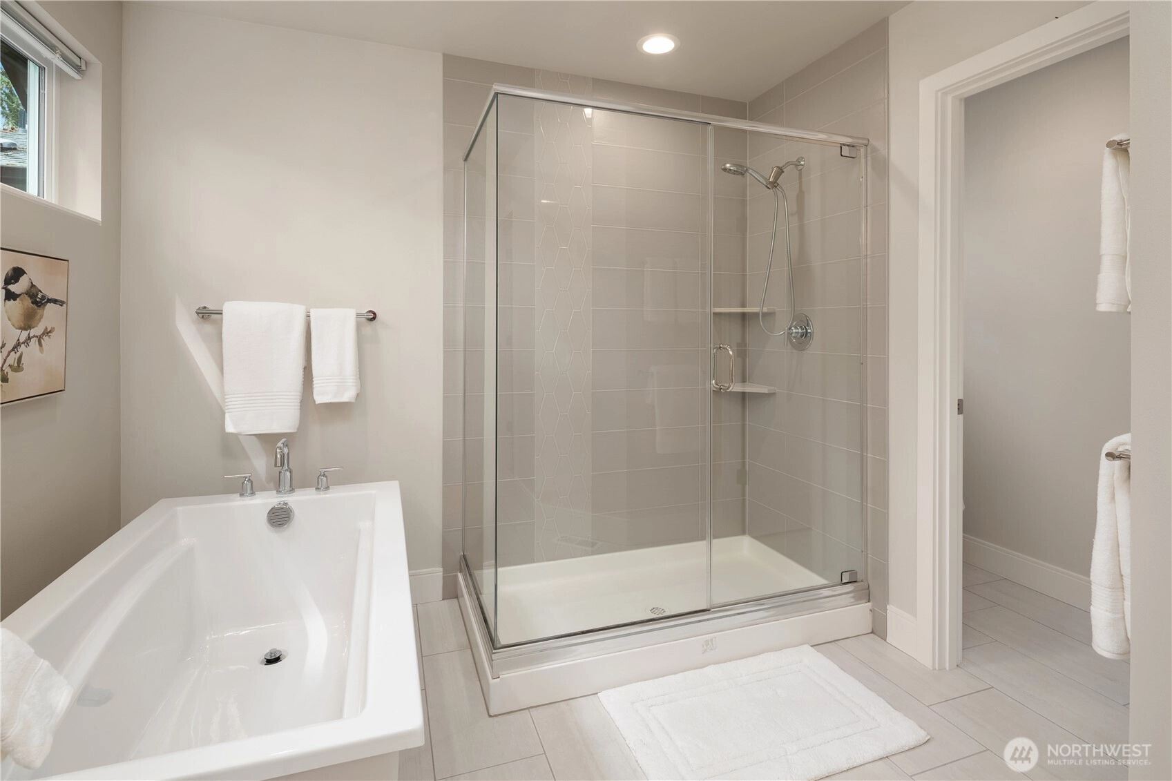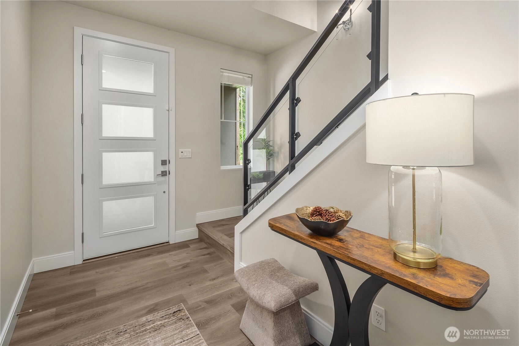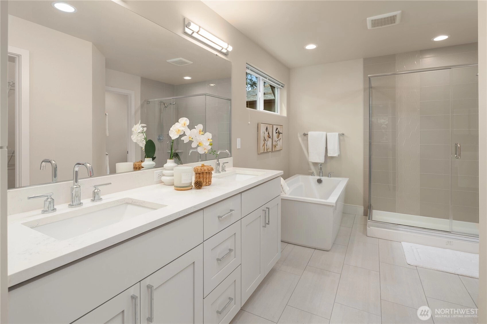 Experience tranquil luxury in this beautifully appointed home, ideally located at the end of a peaceful, friendly cul-de-sac. Thoughtfully designed & impeccably maintained, it seamlessly blends modern elegance with everyday comfort. The open-concept kitchen is a dream for entertainers—featuring slab quartz countertops, ss appliances, & access to a private, covered patio. Upstairs, retreat to a spacious primary suite w spa-like 5-piece bath, alongside a flexible bonus space + two additional bedrooms. A fourth bedroom is conveniently located on the main level, perfect for guests or a dedicated home office. Oversized windows throughout the home frame views of lush greenery & an adjacent greenbelt, showcasing serene PNW beauty. Welcome home!