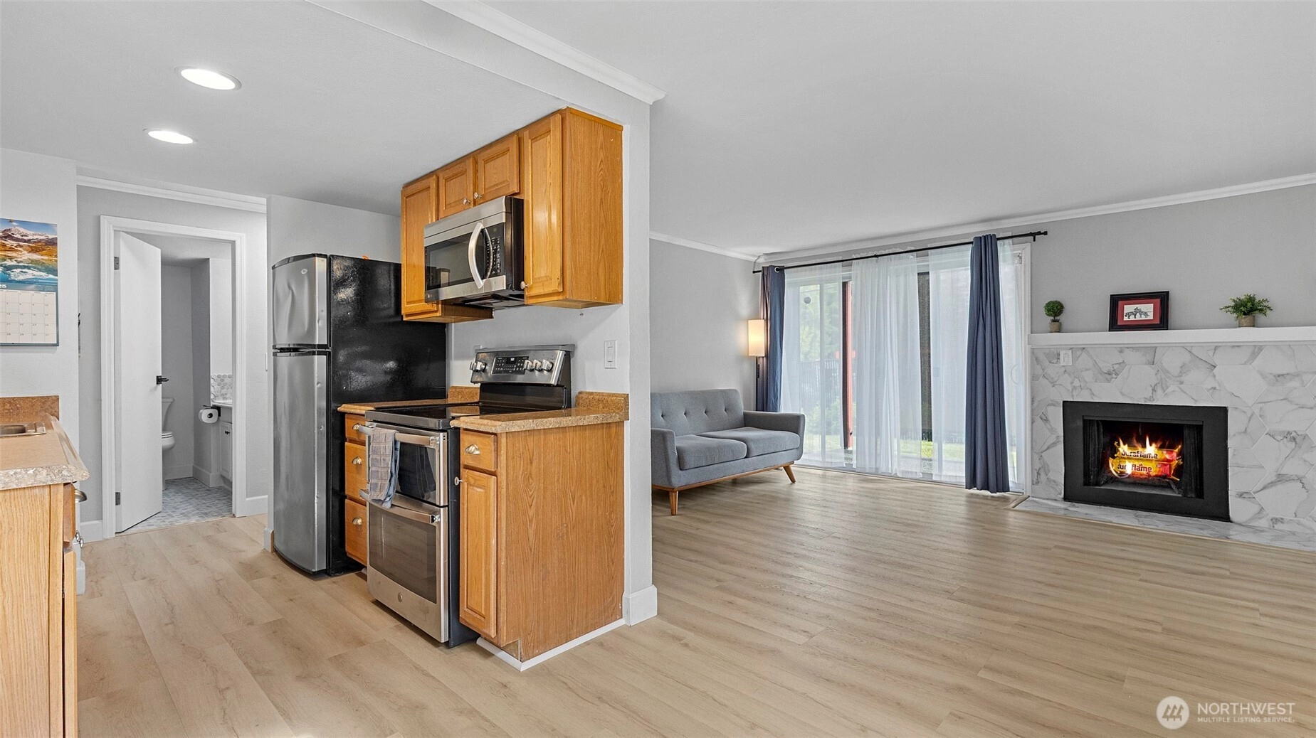 Welcome to this beautifully updated ground-floor condo located in the vibrant heart of Everett!This inviting 1-bedroom, 1-bath home offers the ease and comfort of single-level living with thoughtful updates throughout. Enjoy cozy evenings by the charming wood-burning fireplace and the added efficiency of double-pane windows. The bedroom features a stylish barn-style sliding door to the closet, adding a modern touch to the space. Nestled in a prime location, you'll be just minutes from shopping, dining, and major commuter routes. Plus, you're conveniently close to local hospitals and Boeing — making this home ideal for first-time buyers. Don't miss your chance to own this delightful, move-in ready condo.
