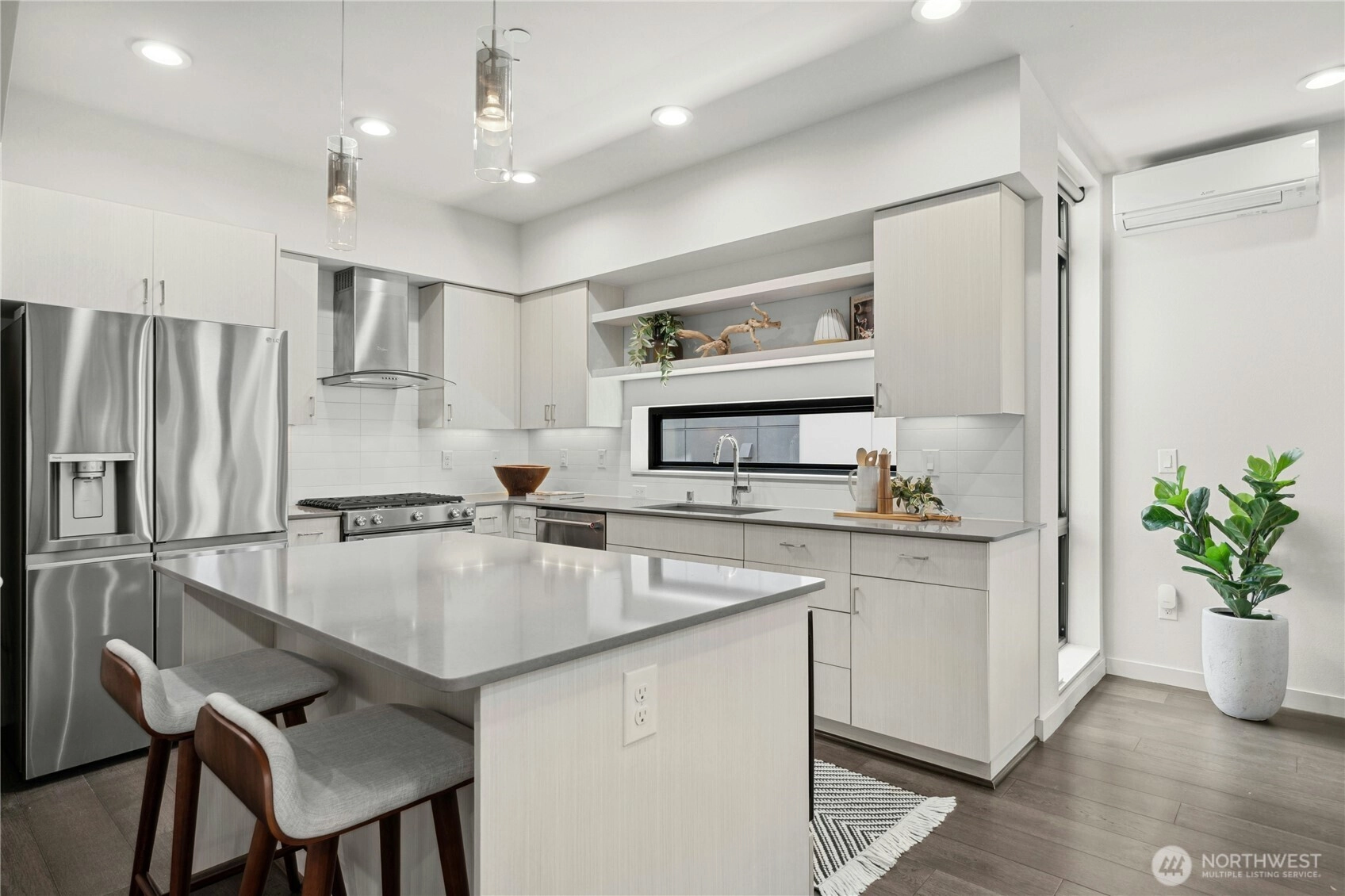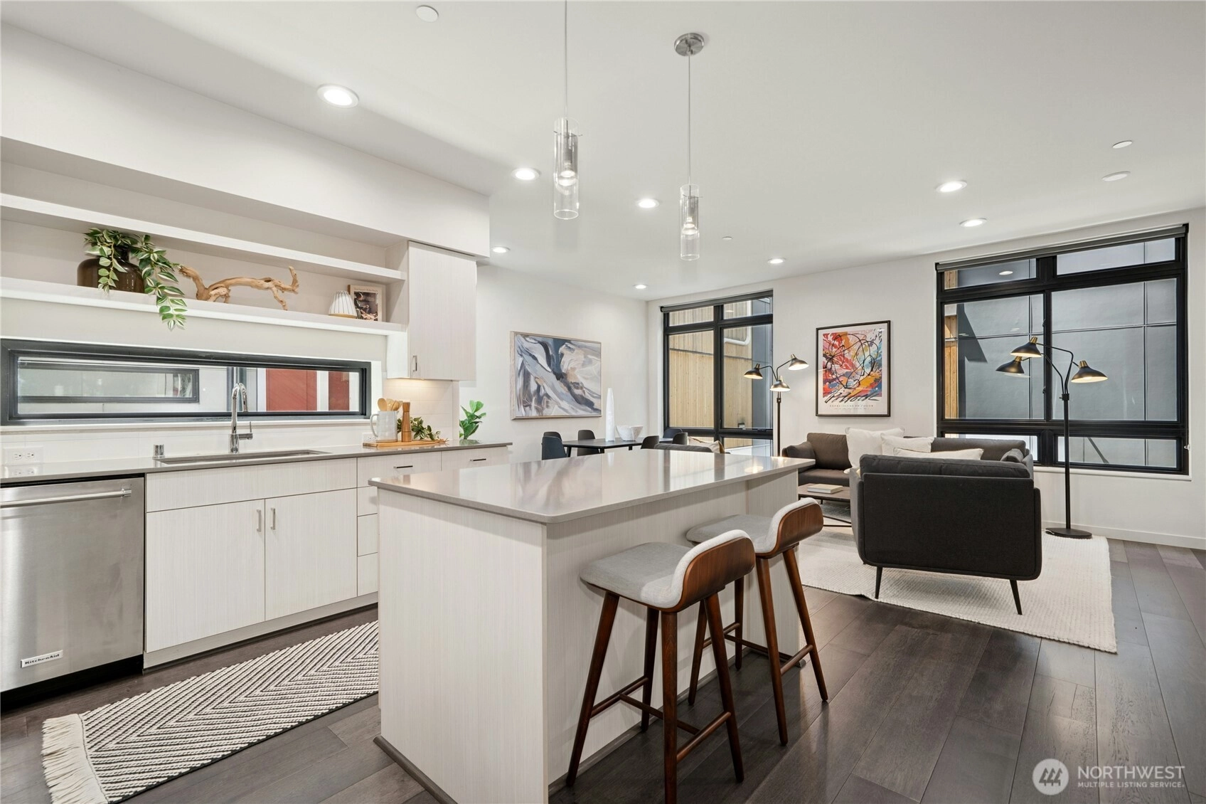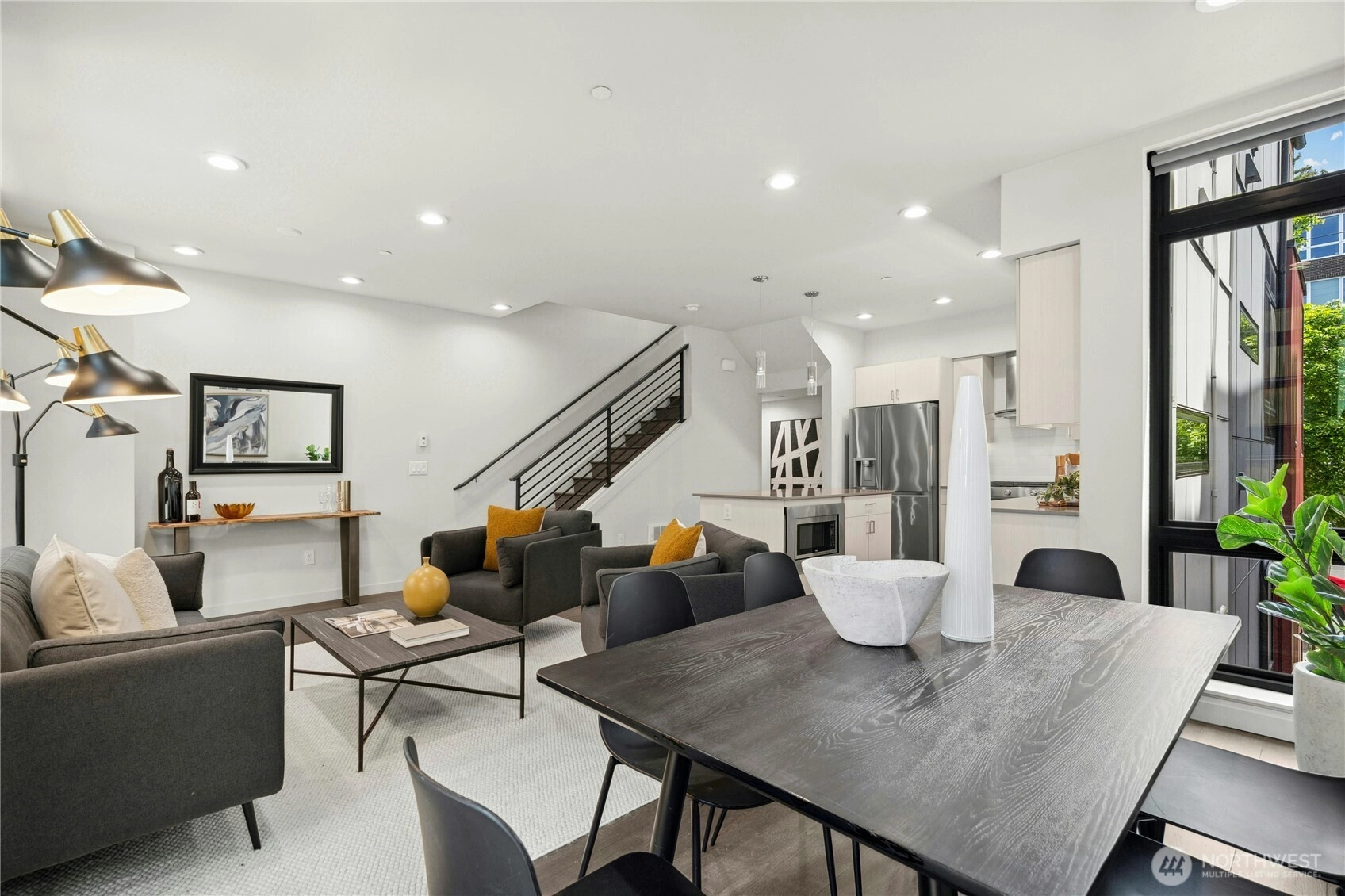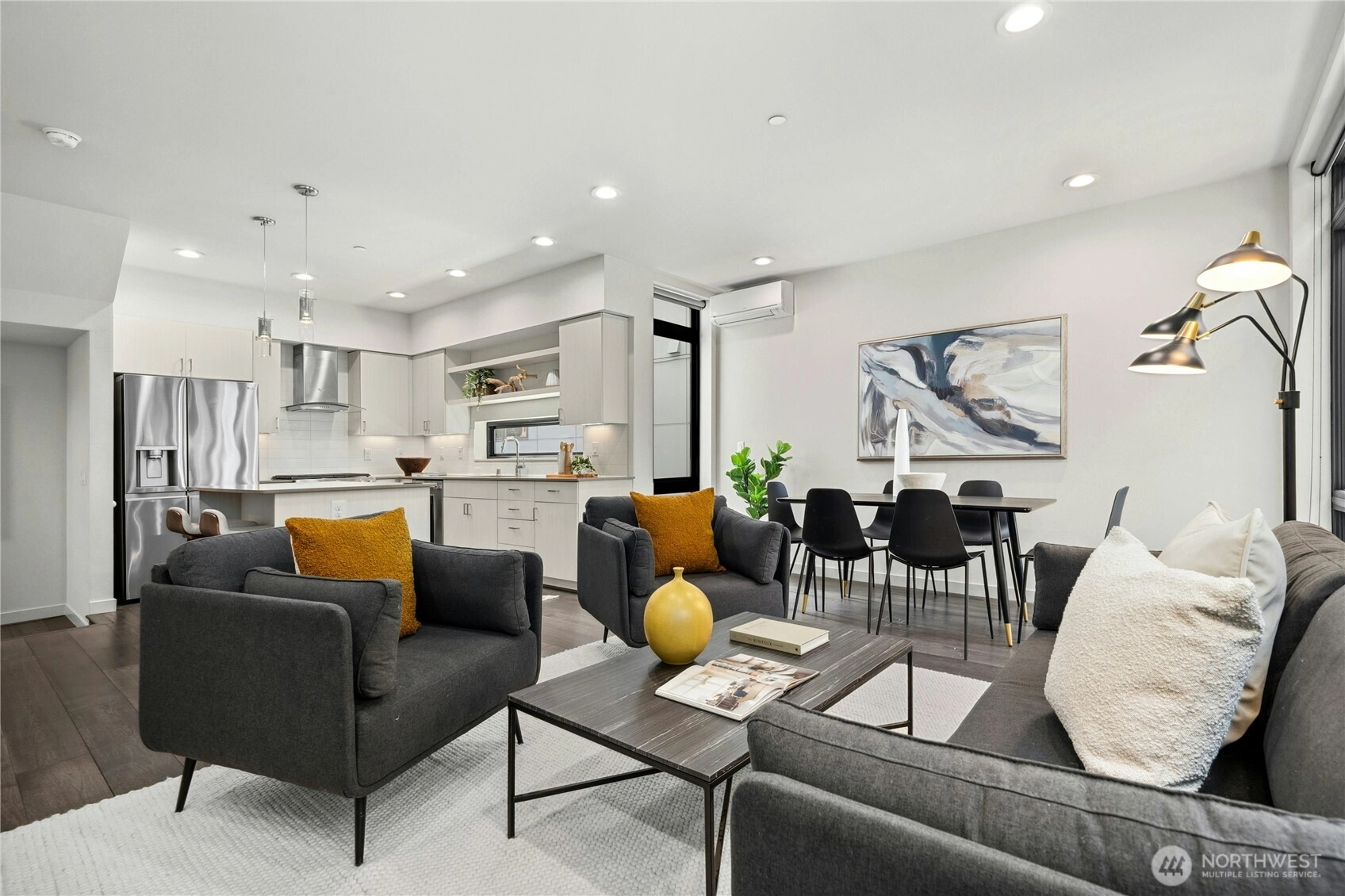 Fall in love with this spacious 1,957 sq ft West Seattle townhouse featuring 4 generous bedrooms—including a stunning primary suite with 11-ft ceilings, private deck, and sunset views of Puget Sound and the Olympics. Soaring ceilings on every level enhance the bright, open feel, while fresh carpet and upgraded lighting add a modern touch. Enjoy a welcoming bonus entry room, ductless AC on top floors, radiant in-floor heat below, full-size W/D, and extra storage. With private parking, no HOA, and an unbeatable central location, this well-cared-for home is a rare find.