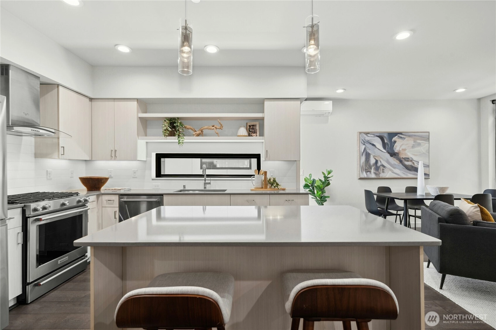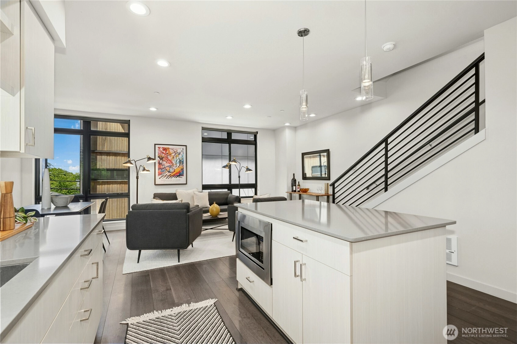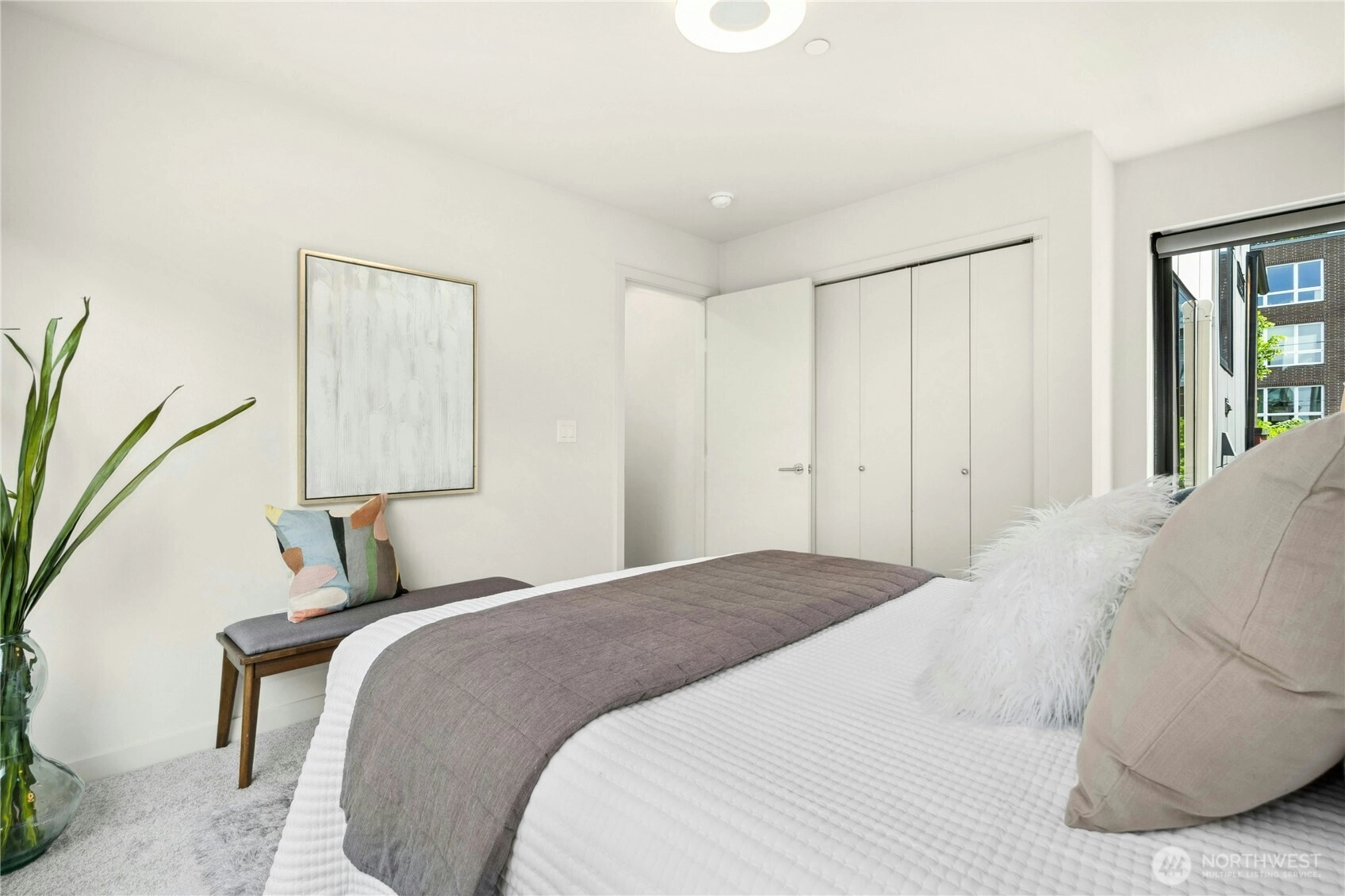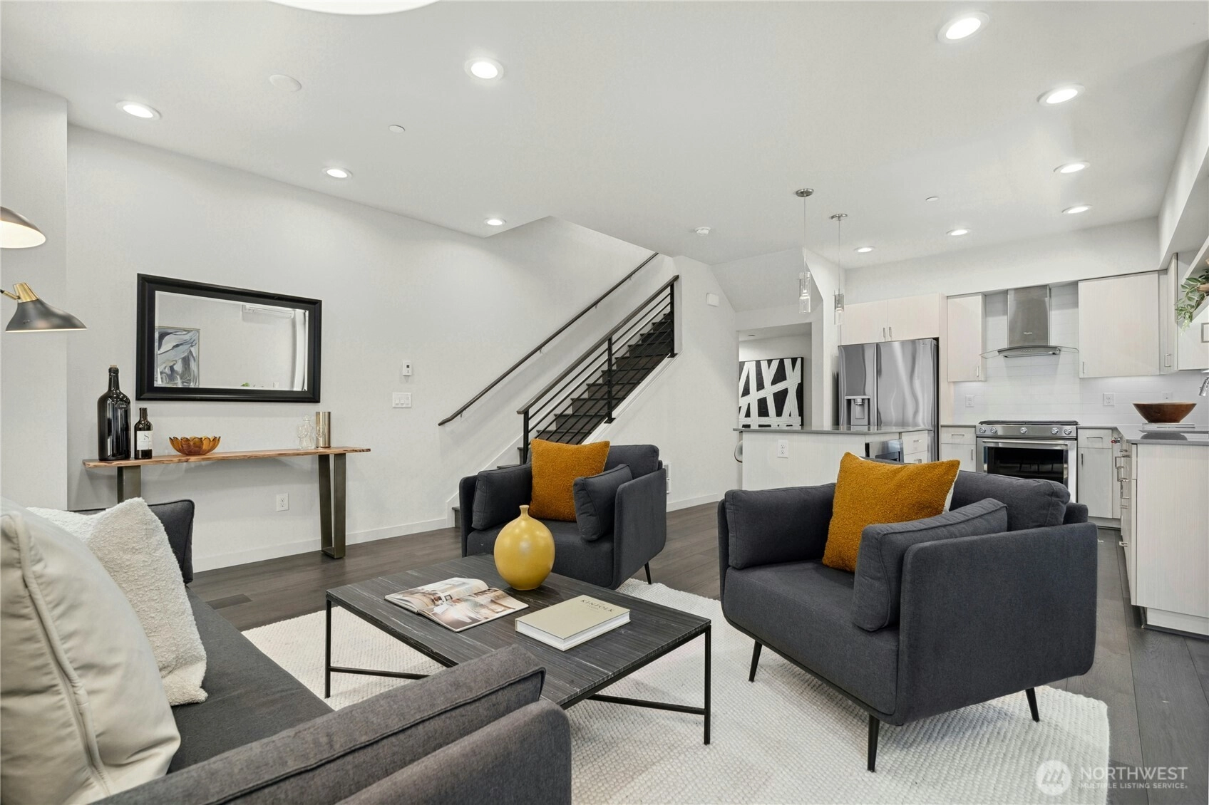 Fall in love with this spacious 1,957 sq ft West Seattle townhouse featuring 4 generous bedrooms—including a stunning primary suite with 11-ft ceilings, private deck, and sunset views of Puget Sound and the Olympics. Soaring ceilings on every level enhance the bright, open feel, while fresh carpet and upgraded lighting add a modern touch. Enjoy a welcoming bonus entry room, ductless AC on top floors, radiant in-floor heat below, full-size W/D, and extra storage. With private parking, no HOA, and an unbeatable central location, this well-cared-for home is a rare find.