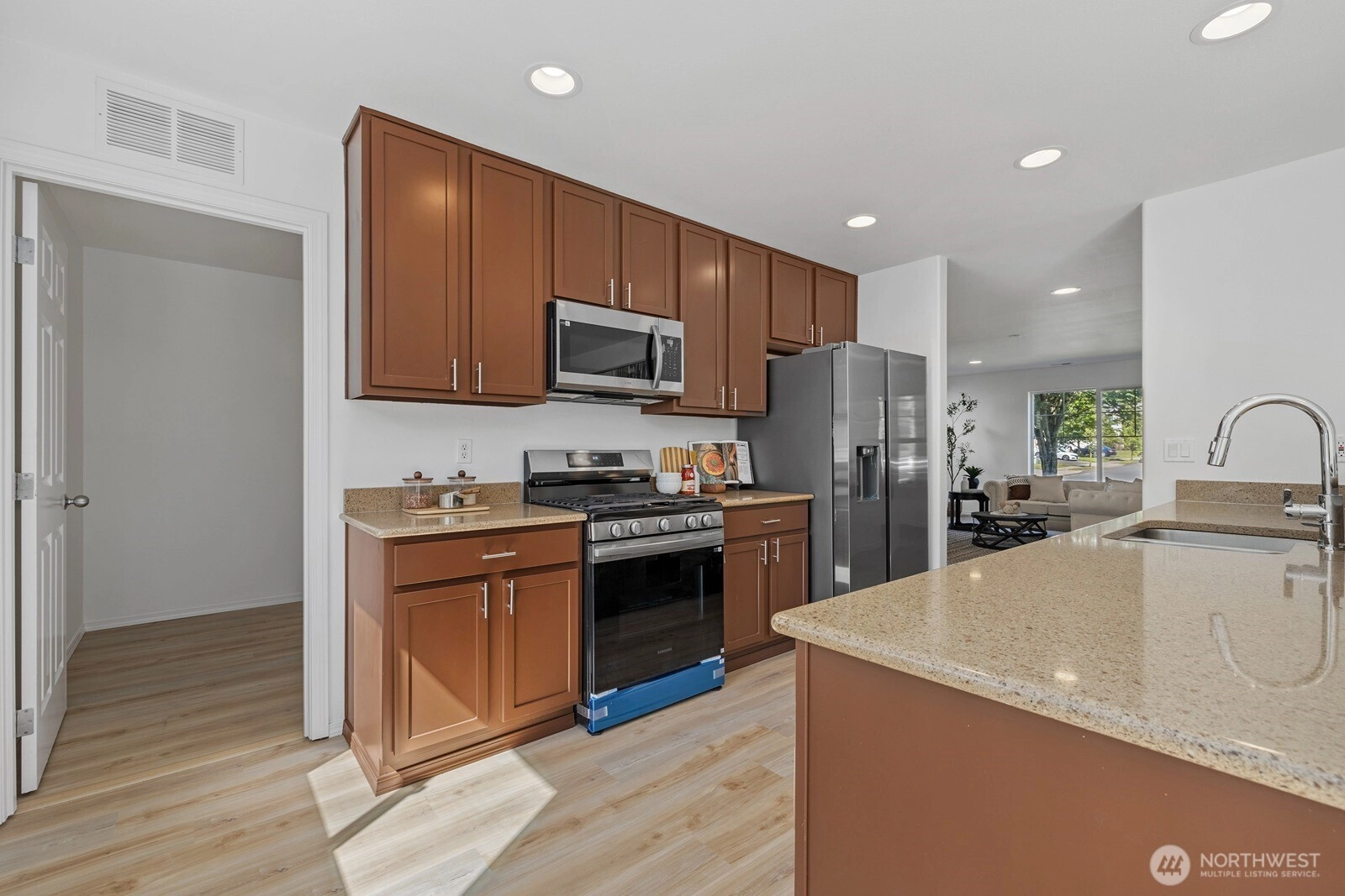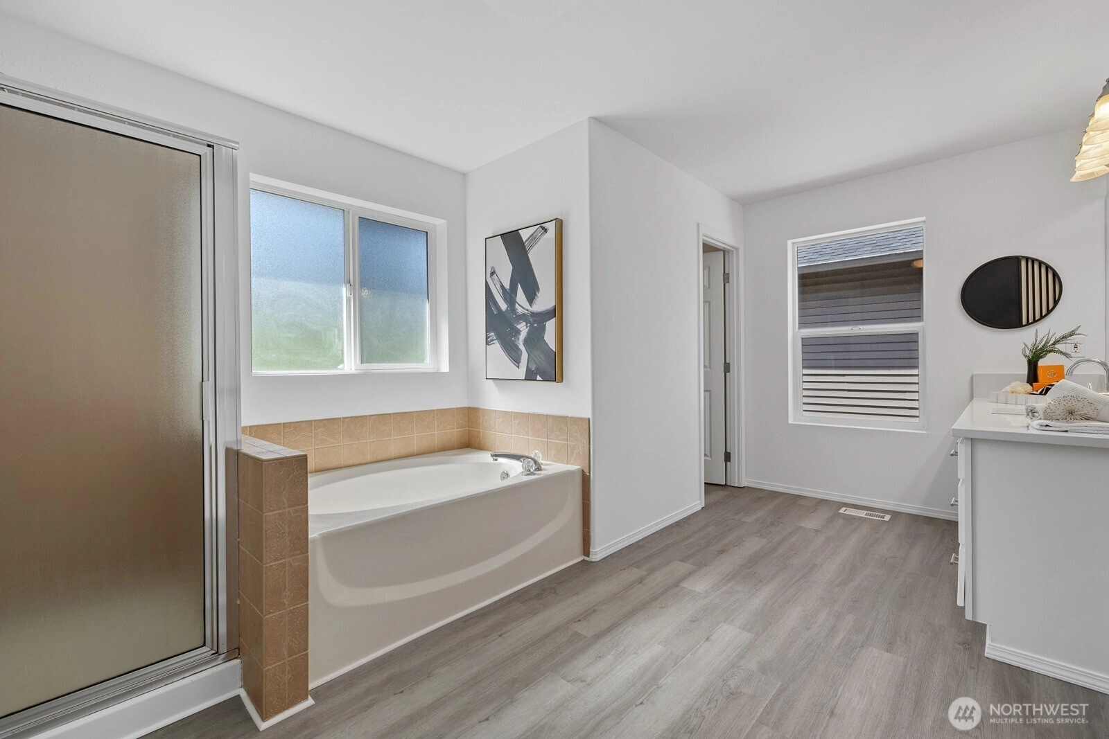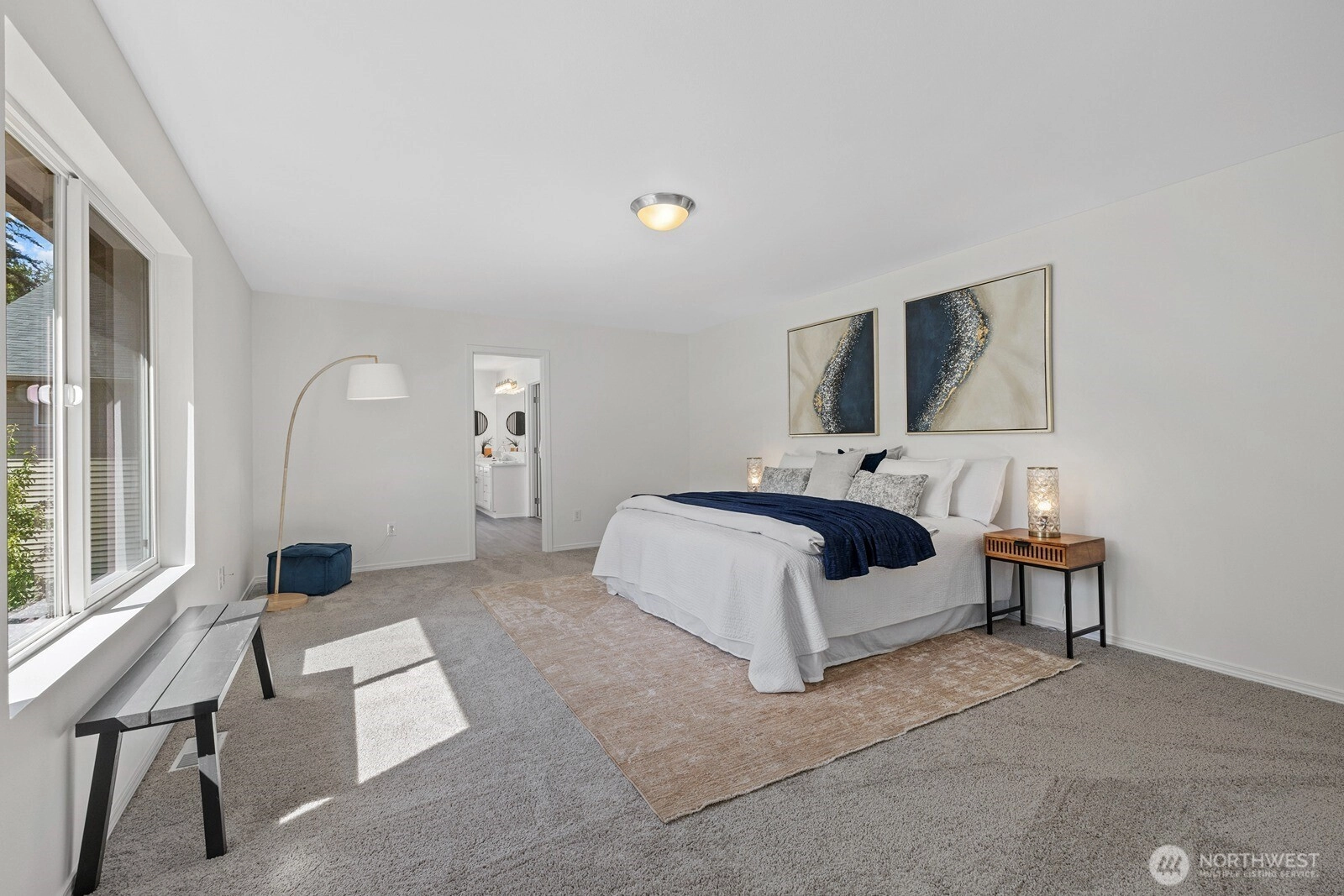 Welcome to this beautiful & spacious well maintained home in Northlake Ridge Community. Completely remodeled. New interior paint, New carpets, Beautiful New flooring. It features 2 Primary Suites 1 on the main floor and the 2nd Extra Large Primary Suite on the upper floor with sitting room and 5 piece ensuite bath and walk-in closet. Open floor plan with Large living room and gas fireplace, dining room, Spacious kitchen and plenty of cabinets.Brand new stainless steel appliances. 2 bedrooms 1 full bathroom, & a huge bonus room on the 2nd floor The Large backyard is fully fenced. Big patio for BBQ & entertaining.This home is in a convenient location with easy access to schools, parks, plazas, & freeways. Don't miss this move-in ready home.