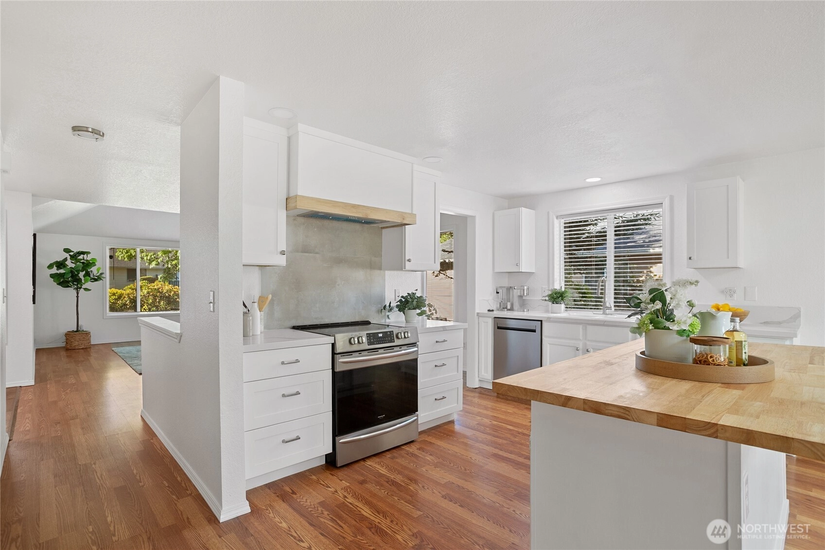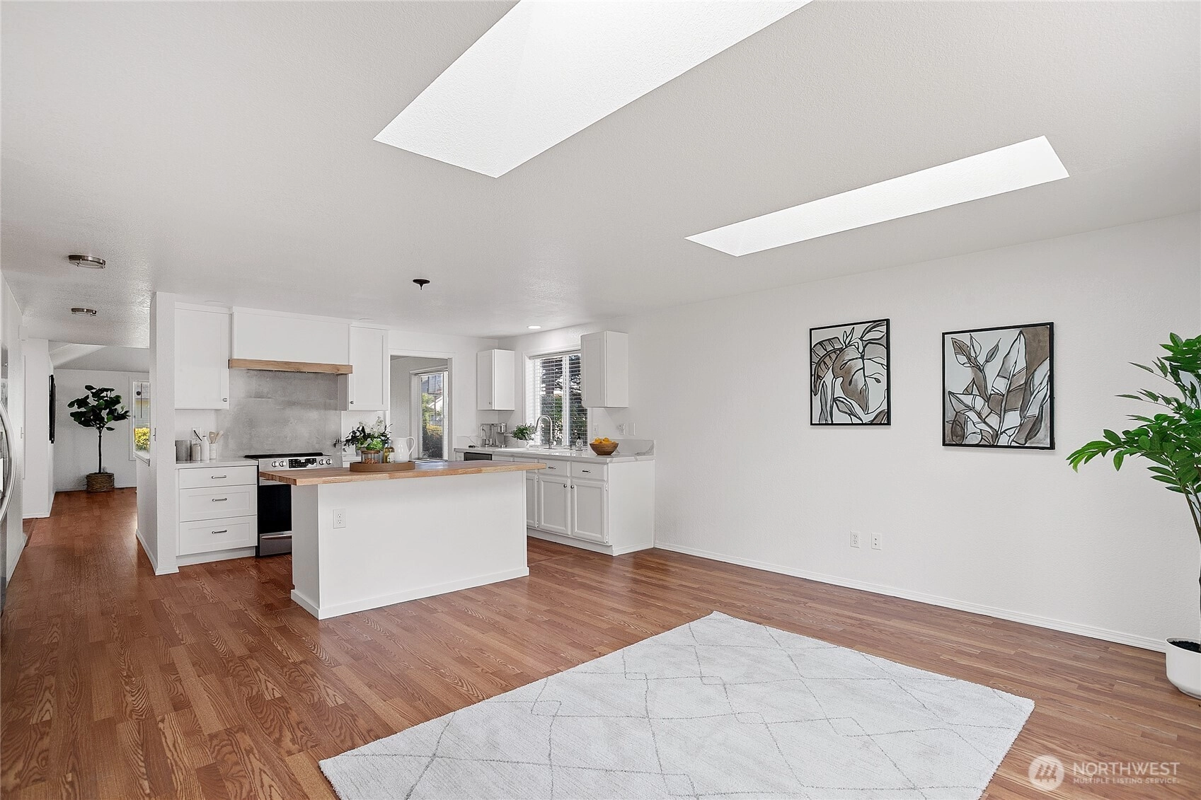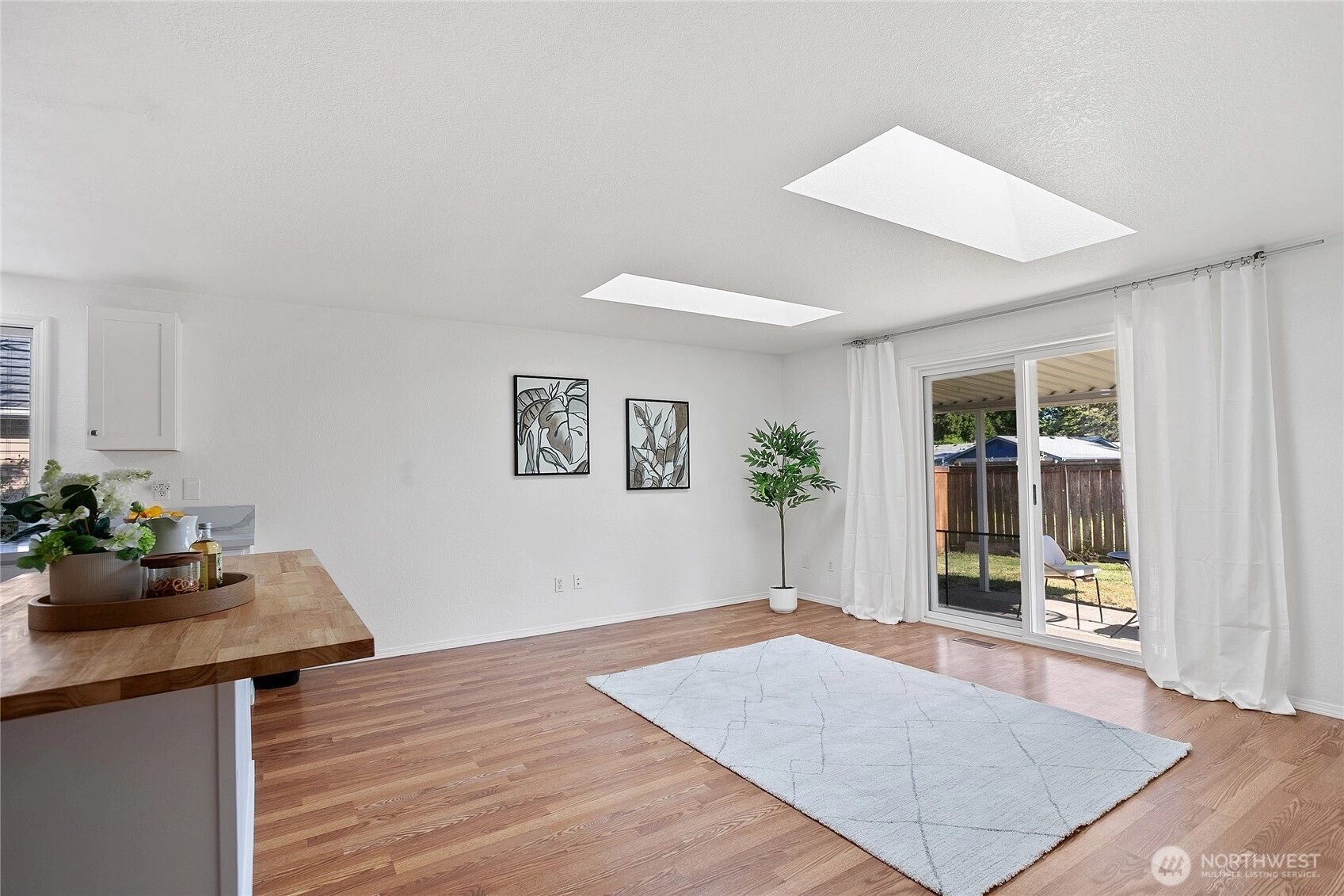 Beautifully updated 3-bedroom, 1.75-bath rambler with 1,666 SF of functional living space on a fully fenced lot. Built in 1991, this home features a remodeled kitchen with expanded footprint, new quartz countertops, butcher block island, newer stainless-steel appliances, updated cabinets, and new hood vent. Continuous flooring and all new can lighting throughout. Living room with fireplace and large covered patio perfect for entertaining. Primary suite has updated vanity with quartz countertop, lighting, and new faucet/sink. Guest bath also updated w/ quartz countertop. New skylights, ceiling fans, and overhead lighting throughout. A move-in-ready gem offering comfort, style, and great value!