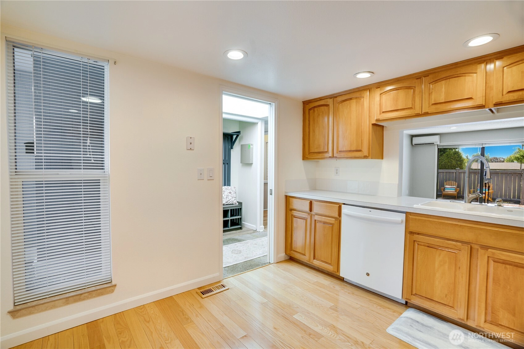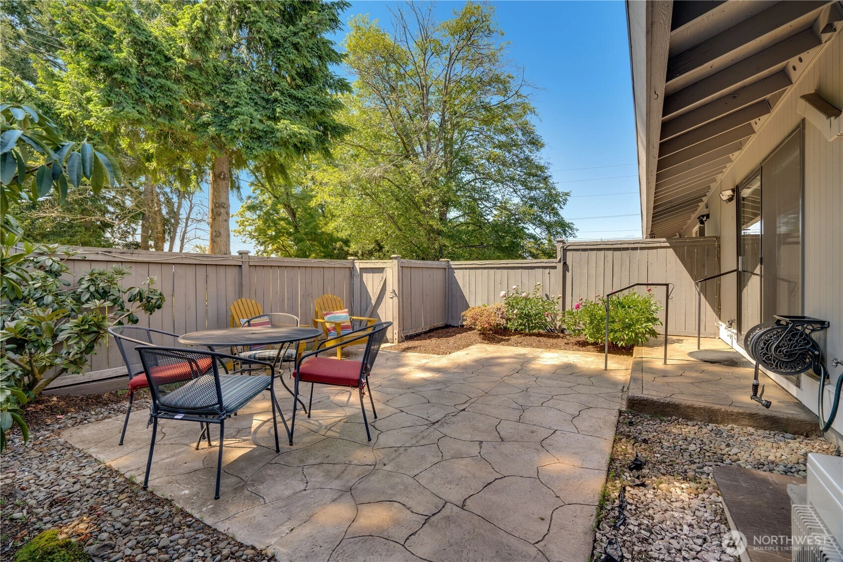 Move in ready North End home located directly across from lovely Highlands Golf course. Nicely updated 2BD 1.75BA freshly painted, new plank flooring, 2 mini-splits with air conditioning/heat & updated electrical panel. A private 55+ community setting has beautiful & mature landscaping. Large slider leads to fully fenced yard with flagstone-like patio that receives sun all day. Ample storage w/1 car garage + private one car assigned parking space and plenty for guests. Spacious primary en-suite backs to green space. Well sized kitchen with eating nook opens to living room and a corner wood burning fireplace. Minutes to Westgate shopping, Proctor District, parks & McDuff's restaurant at the golf course. Location, Location~this is a true gem!