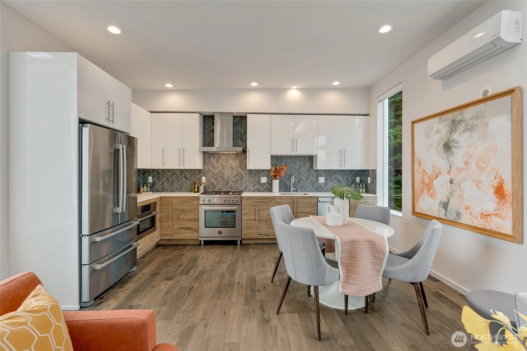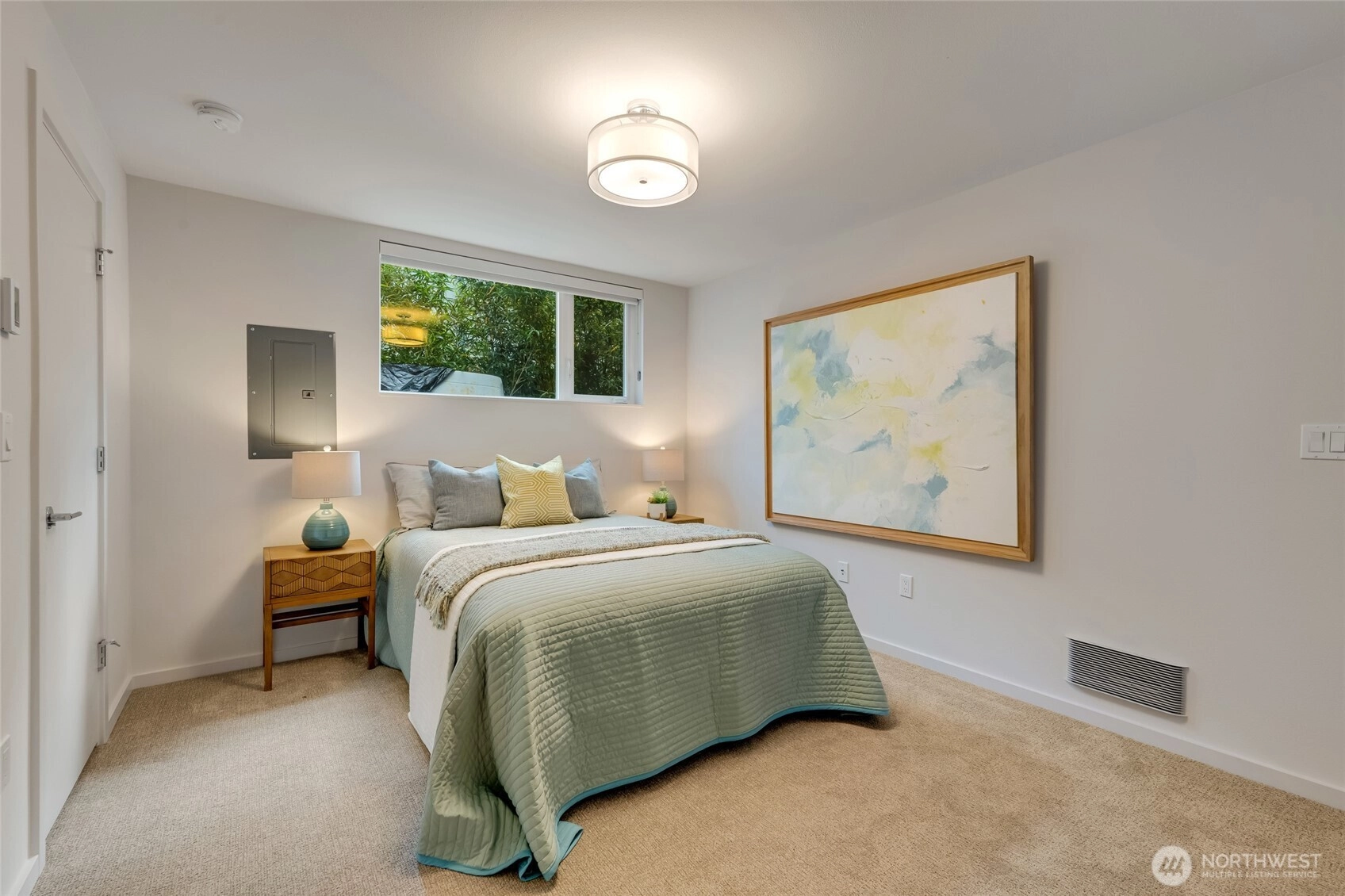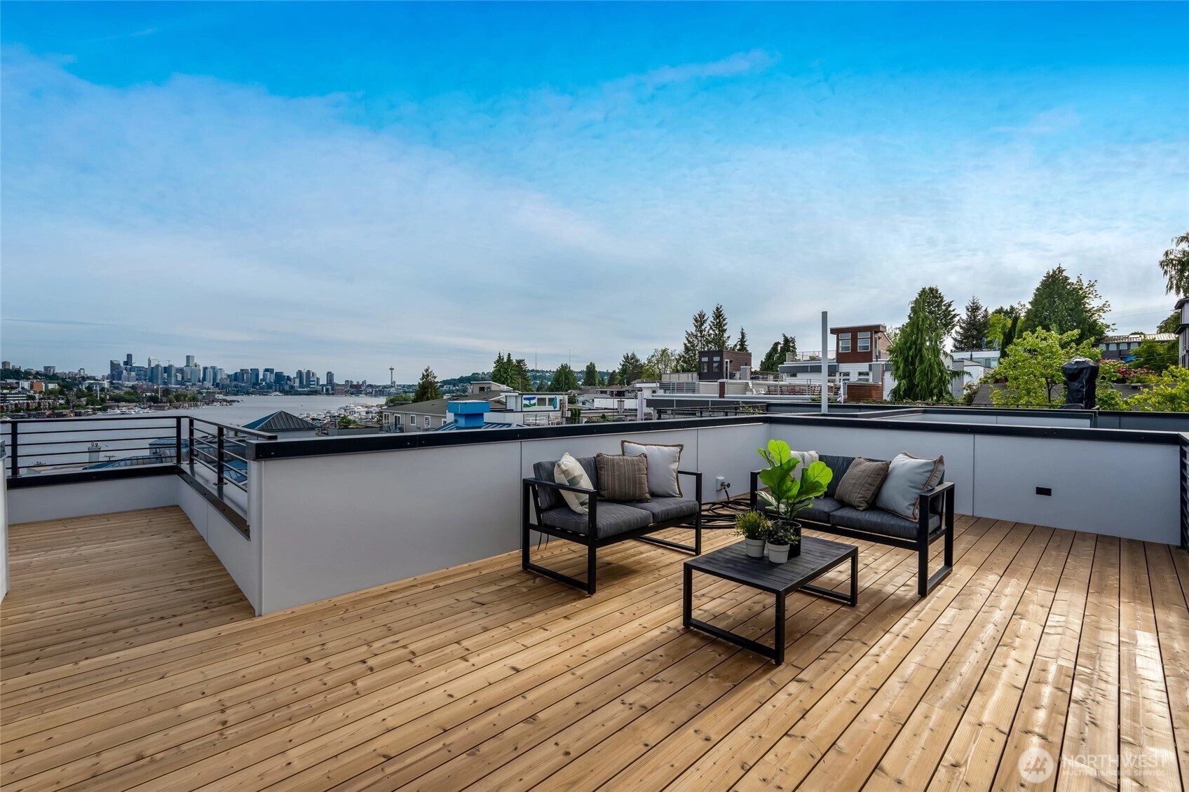 You will never get tired of the views from this rooftop deck! Welcome to this meticulously maintained home! This charming residence features modern finishes and style. Step inside to discover spacious living areas flooded with natural light, ideal for both relaxing and entertaining. The open-concept layout features large windows that invite the outdoors in. The gourmet kitchen is a chef’s dream, equipped with stainless steel appliances, quartz countertops, and Belmont cabinets. The primary suite includes a luxurious en-suite bathroom, perfect for unwinding after a long day. Mini split ductless system for heating or cooling. Its prime location is close to Gasworks park, local cafes, shops, restaurants, UW & transit.