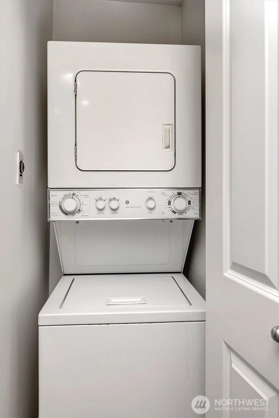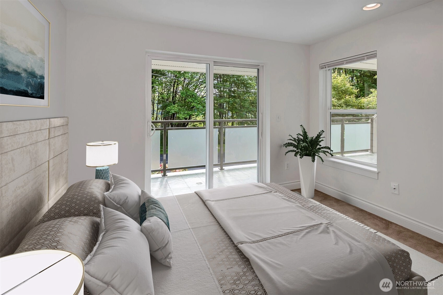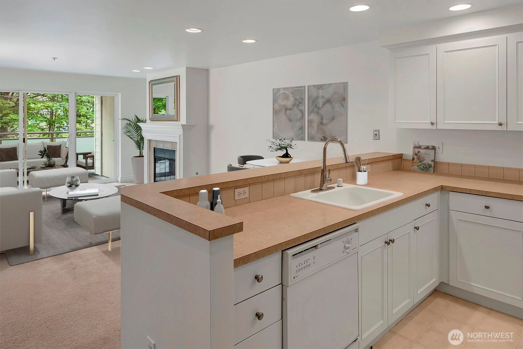 Welcome to serene condo living at The Benson. This light-filled 2-bed condo lives large and is freshly painted with new lighting and millwork throughout. Enjoy the spacious balcony with peaceful tree-line views - accessible from both the living area and primary bedroom. The open living area is anchored by a cozy gas fireplace, offering ambiance and room for entertaining. Conveniences include in-unit laundry, built-in closets, and generous cabinet space. The bathroom boasts a separate shower and a deep soaking tub. Residents appreciate the neighborly 8-unit building, low dues plus secure garage parking with extra storage. Easy access to Downtown and Magnolia Village. Zero access stairs! Well maintained building and no special assessments!
