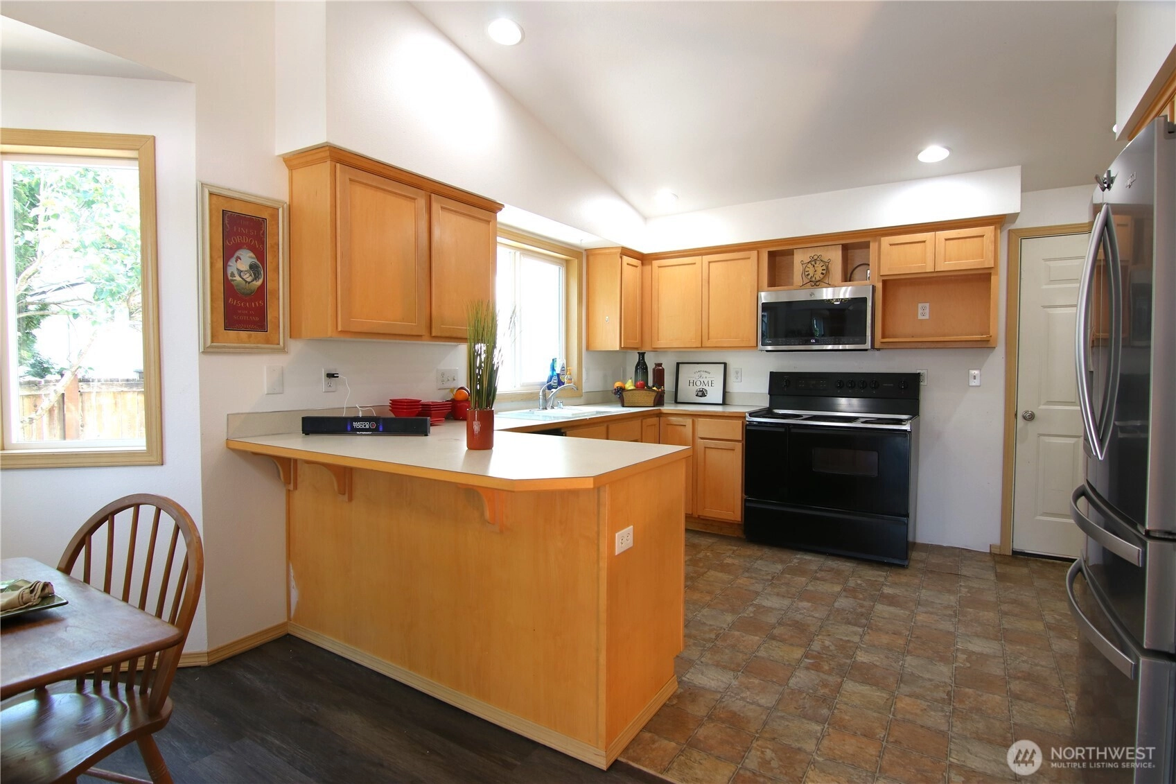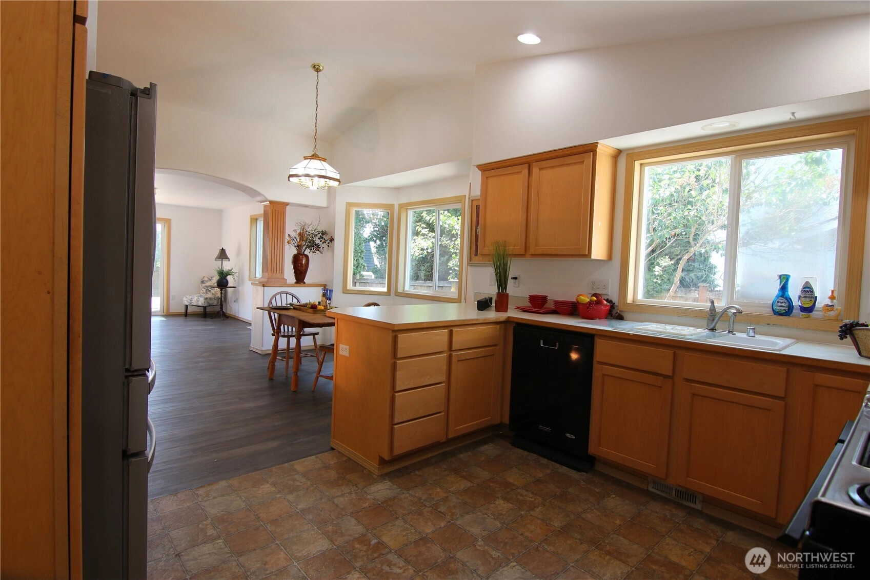 This lovely one level hard to find four bedroom home boasts a sunny, flat and convenient corner location, combining a huge lot with a fenced backyard & privacy to create the happy setting! Inside feels roomy and airy with vaulted ceilings, lots of windows and an open feel. The kitchen opens up to the rest of the living area-a great room, family room and dining room as well off a formal entry from a covered front porch. A formal living room with a gas fireplace creates nice ambiance. The master suite boasts a separate shower, a soaking tub with a double sink & huge walk in closet. The bedrooms are good sized too. A nice sized garage & driveway parking is super convenient, so is the back shed. This home is all about easy living!
