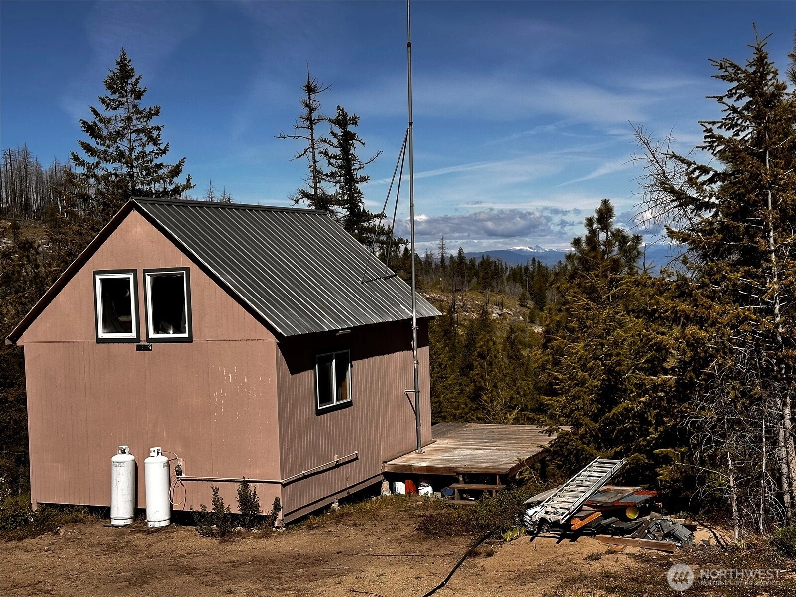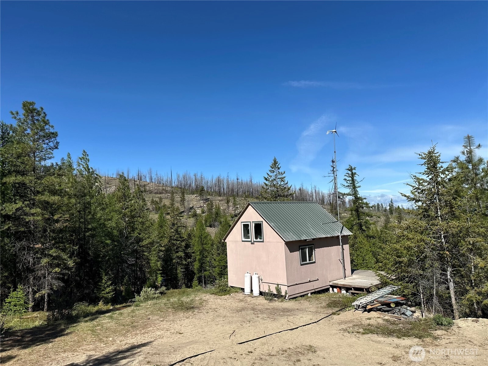 Off grid cabin in a very secluded setting, perched on a hillside with great territorial views. Some solar power and a generator for backup. Cabin needs interior finish work to complete. Heavily timbered 20 acres, bordering public land. Property also features a nice deck. A private getaway in the Okanognan County where recreational activities are plenty!