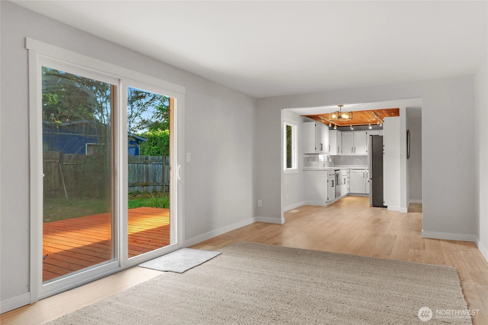 Nestled in a well maintained Des Moines community close to shopping and to bus lines. Totally remodeled one story house with fenced yard and extra large two car garage. New comp roof, new paint inside and out. New designer kitchen with high end counter tops and designer tile work. Fully remodeled bath with beautiful tile surround and tile floors along with new tub, toilet and vanity. New luxury laminate flooring in living areas and new carpet in bedrooms along with new trim throughout the house. New roof, and new deck off the family room. Large two car garage with shop area. Ready to move in and begin your new home with everything new - new - new!!