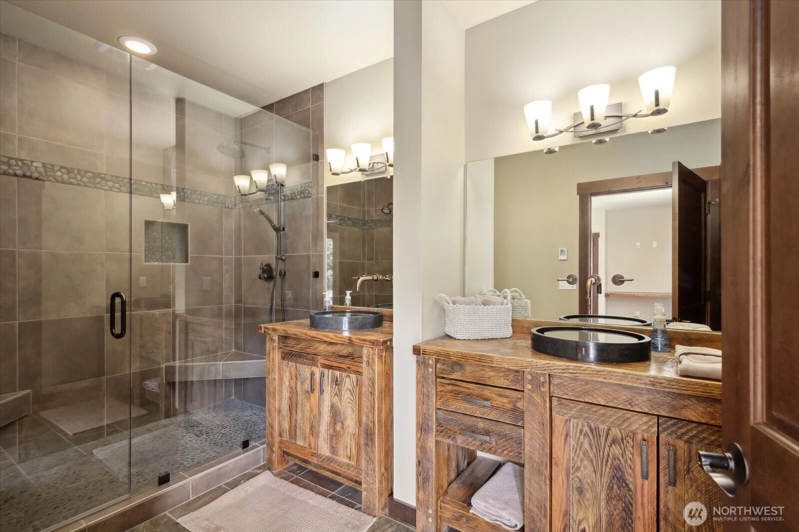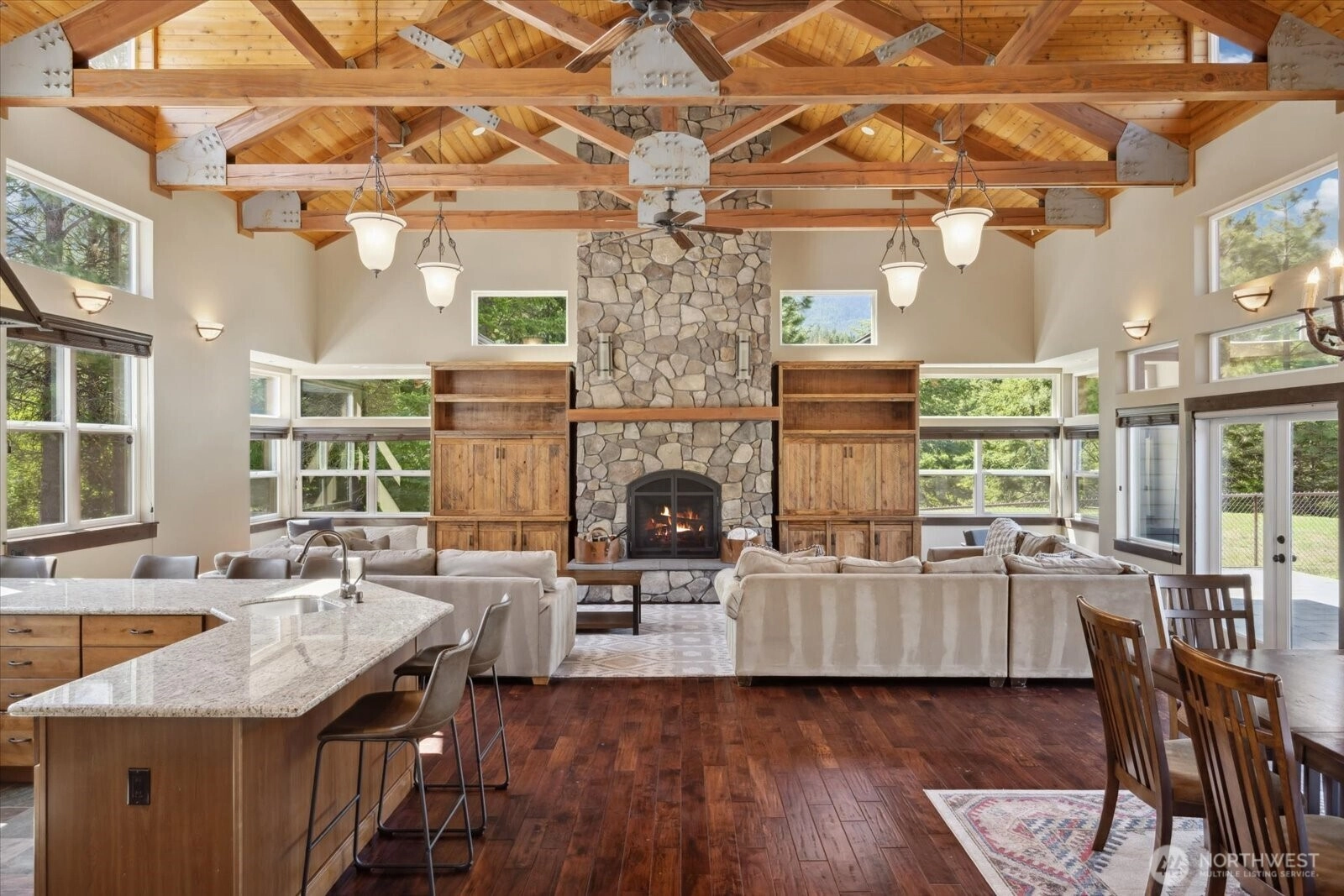 Extraordinary home in the gated mountain community of Westside Heights where you can enjoy modern amentities amidst the rugged outdoors. Exposed beams w/metal brackets create soaring ceilings highlighted w/unique craftsman light fixtures & vast windows. Handcrafted cabinetry, hardwood & slate flooring & floor to ceiling stone fireplace are all featured in this 3 bed, 3.5 bath retreat w/ large flex space. Oversized 3 car garage w/framed in living space provides room for toys & guests. Additional acreage available!