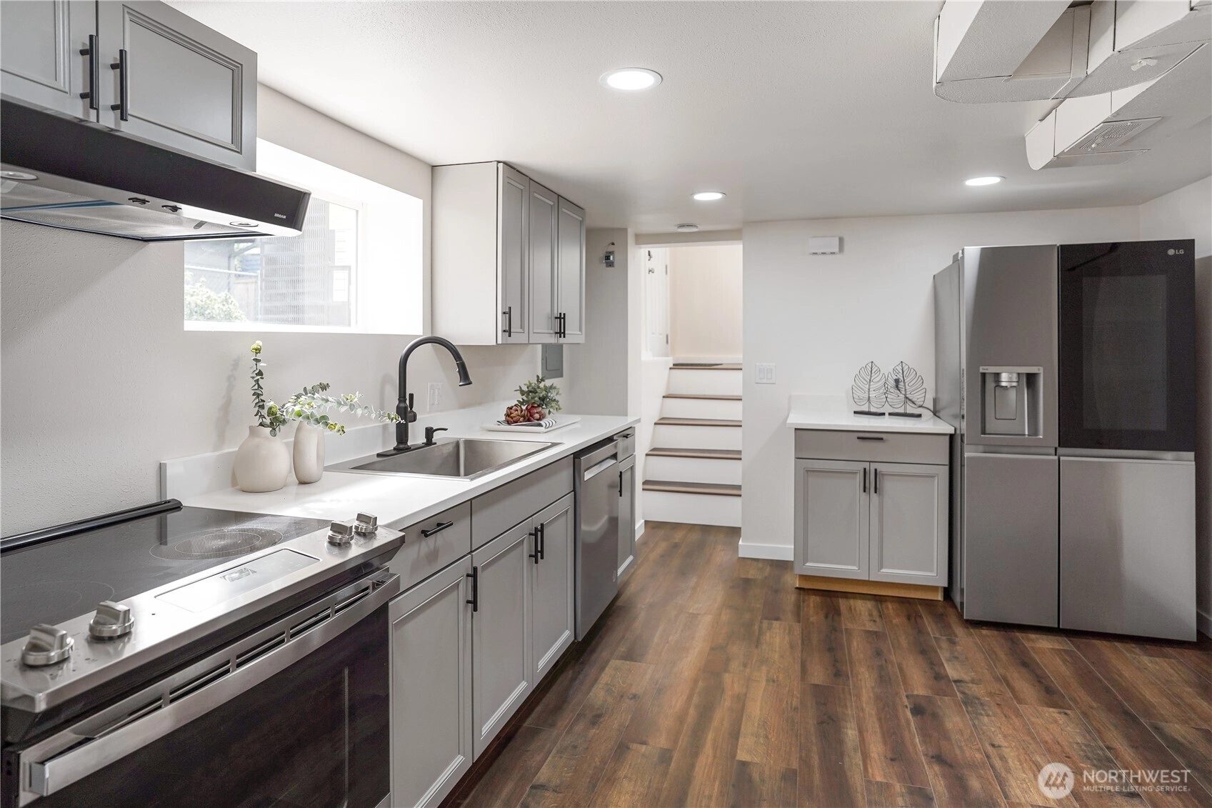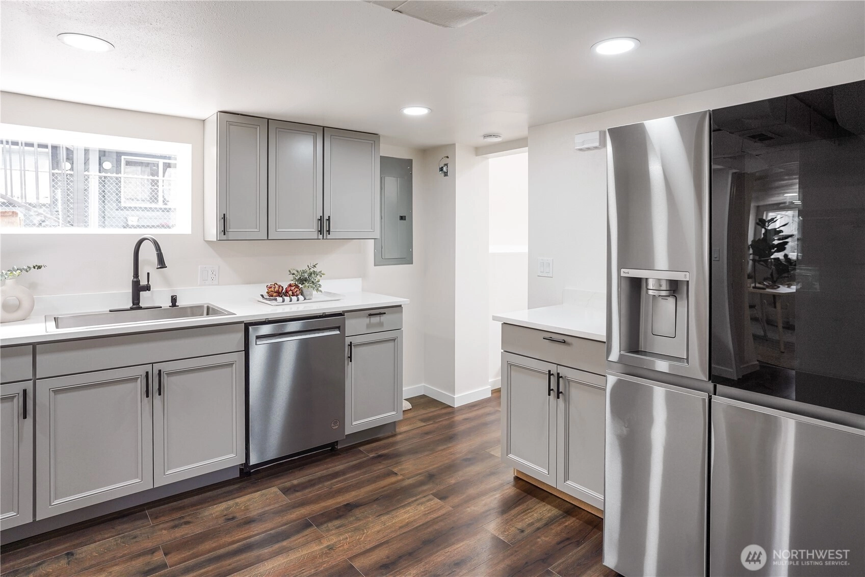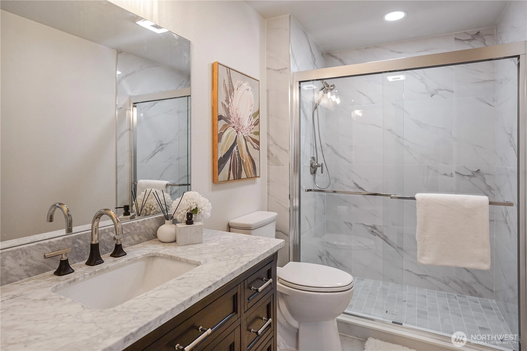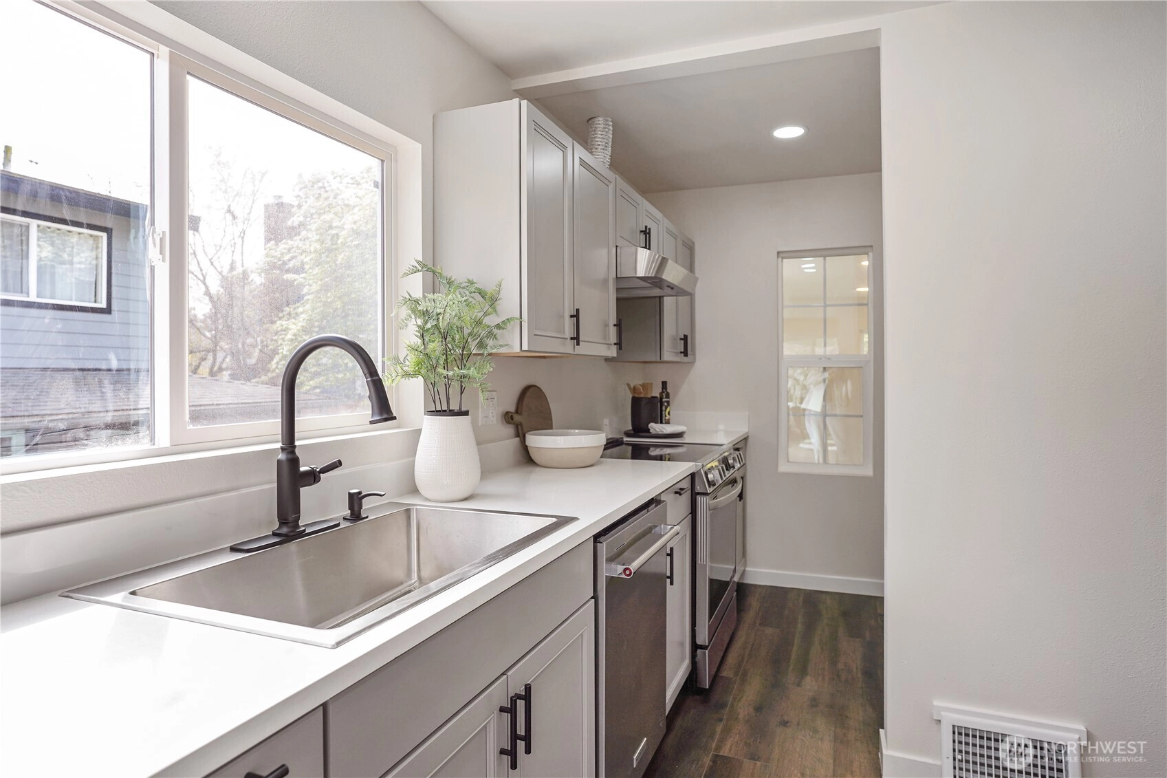 COMPLETELY REMODELED FROM TOP TO BOTTOM. Charming Craftsman nestled in the heart of Ballard with easy commuter access. New roof, furnace, air condition, windows, doors, deck, siding, and fresh interior and exterior paint. Natural light pours in through an abundance of new windows, highlighting the warm, inviting spaces. The upper-level primary suite offers beautiful architectural lines, a spacious layout, separate sitting area, and walk-in closet. A main-level bedroom enjoys bright corner windows and opens directly onto a newly built side deck. The finished lower level presents fantastic potential for Airbnb or rental income with bedrooms, second kitchen, full bath, and private living area.