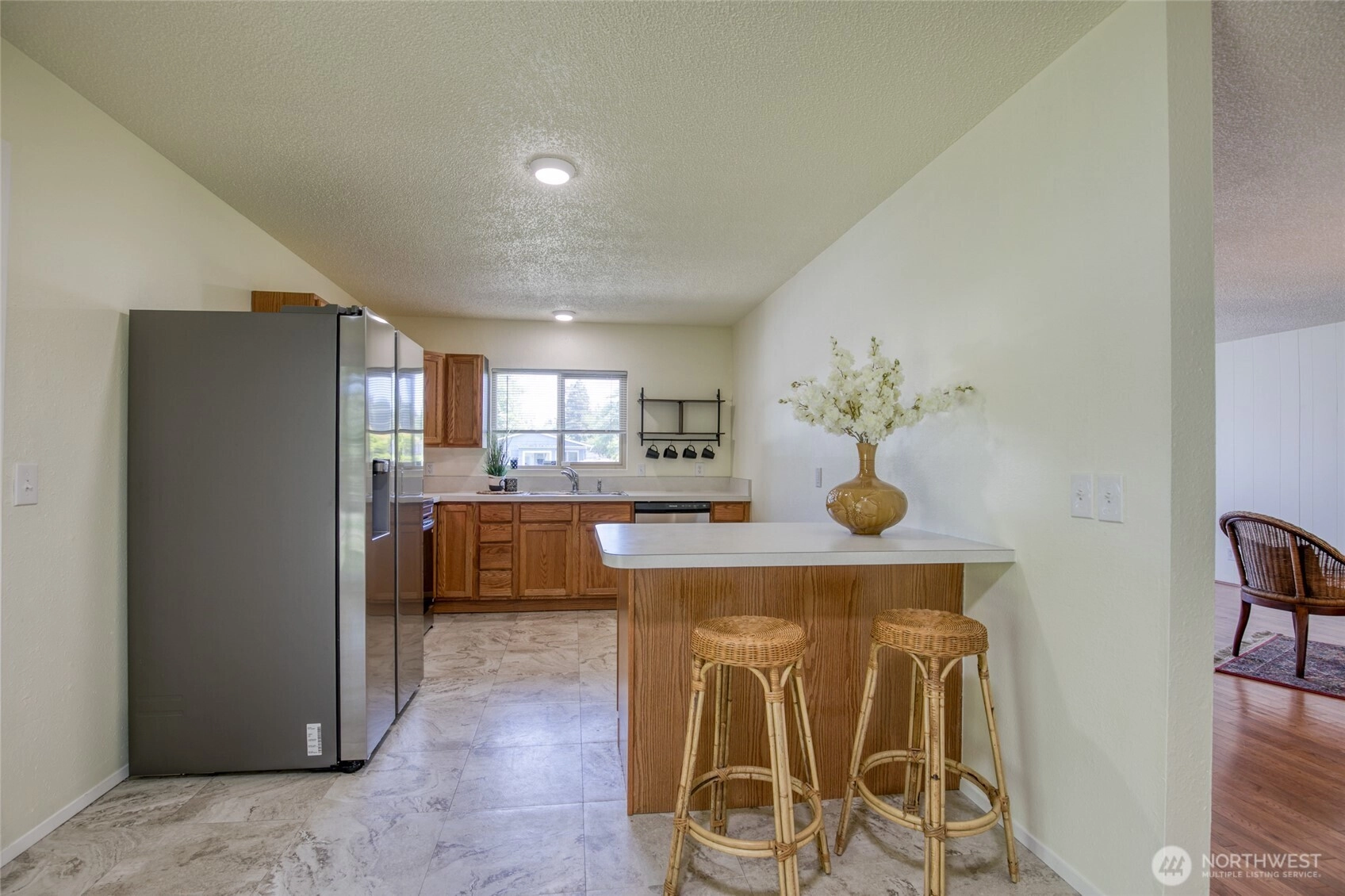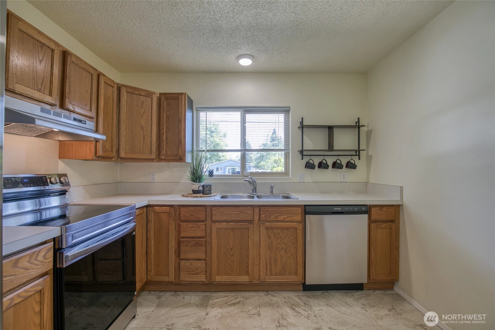 Single Story, 3 bedrooms, 1 & 1/2 bath, charming home in South Aberdeen. This home sits on an oversized, partially fenced lot, out of the flood zone. Tastefully remodeled kitchen and bath. New S.S. appliances. Laminate flooring. Large living room & hall have hardwood floors. Wood fireplace insert. Newer carpet in the bedrooms. Primary has a cozy 1/2 bath for convenience. Walk-in shower in main bath. Covered deck off the dining area to the private back yard. Full size laundry room includes storage, stacked WA/DR and new electric panel. Over-sized garage has room for a workbench or additional storage. 1286 sq feet laid out comfortably. New roof week of Oct 13th. 40 yr comp. Guarantees transfer to new owner.