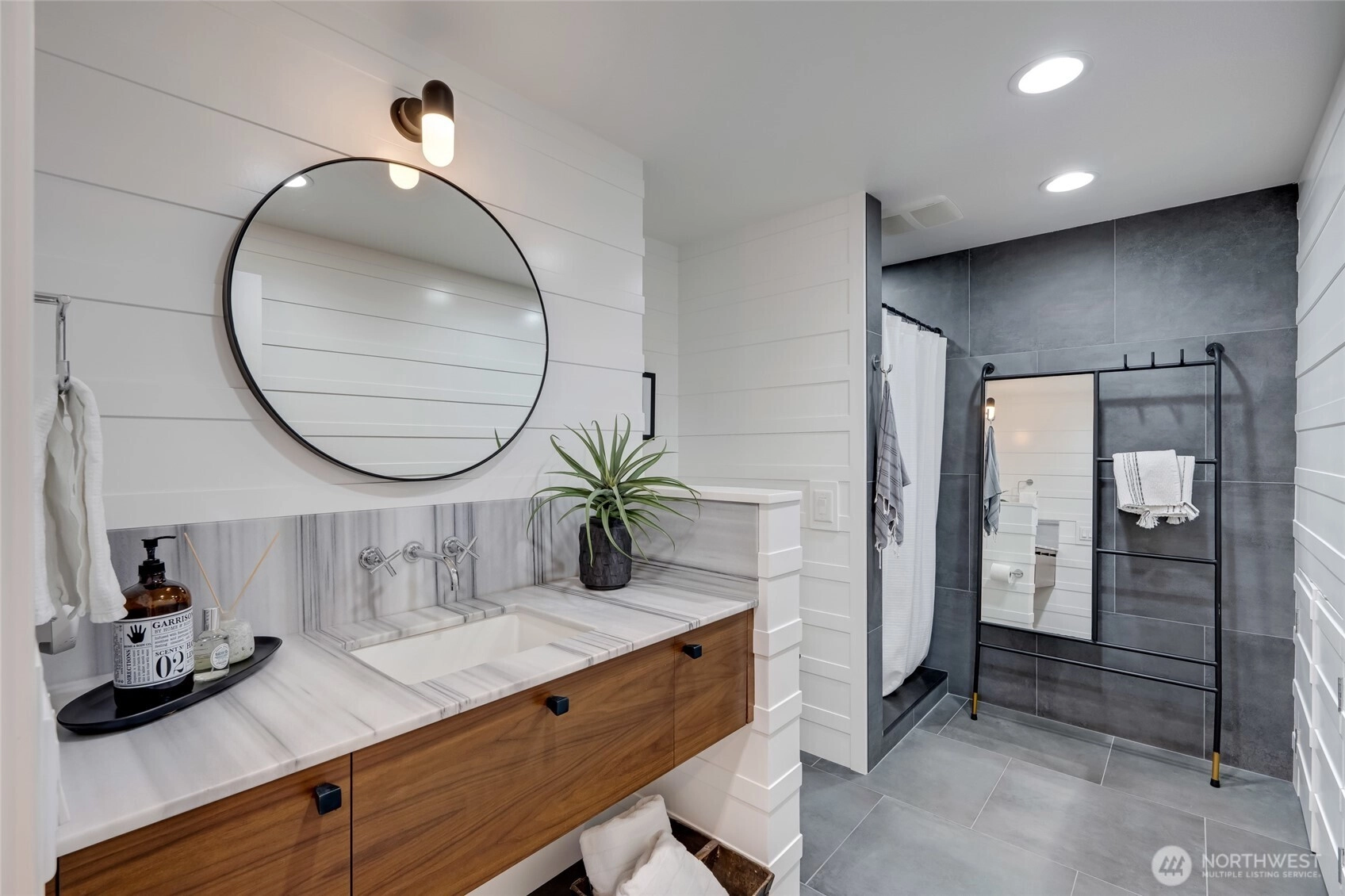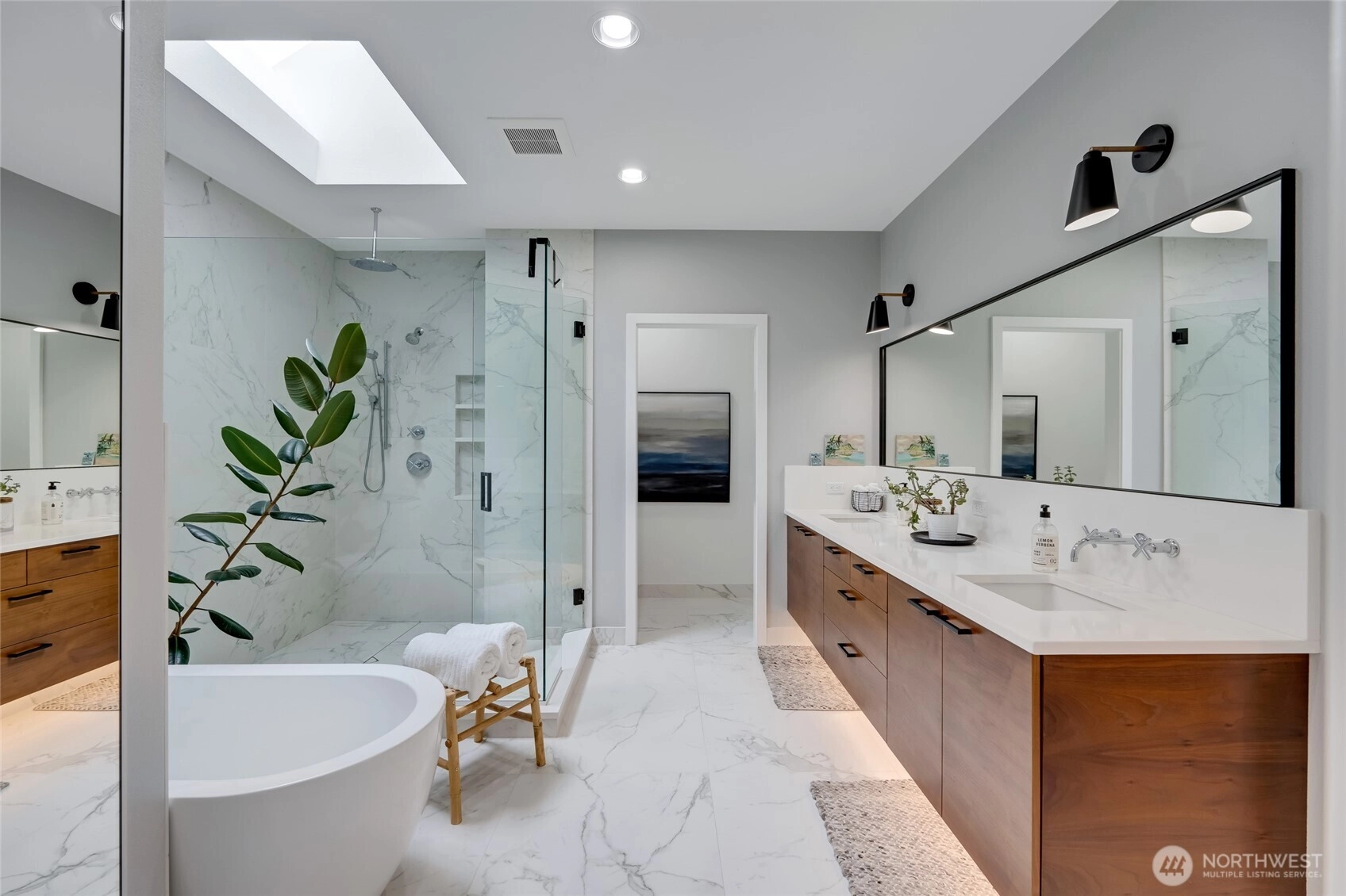 Stunning Mukilteo home is newly remodeled with luxury details and contemporary designer finishes. Main level features gleaming hardwoods throughout, kitchen with stunning quartz island, Viking cooktop, high end appliances, custom walnut cabinetry & walk-in pantry. Great room features oversized double glass doors leading to patio/cabana that’s perfect for year-round entertainment. Upstairs the Primary Suite has luxury fixtures, heated tile, custom closet organizers & peek-a-boo view. Relax in the private, fenced backyard which has second patio, firepit and “gaming retreat”, hot tub hookup, gas/bbq hookup & shop. Enjoy a 3-car garage w/EV outlet, room for 6 vehicles in drive. Minutes to Boeing, Freeways, Award-winning Mukilteo Schools.