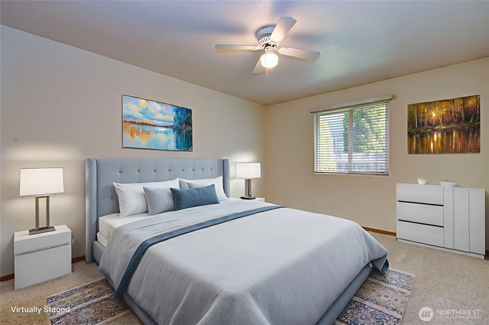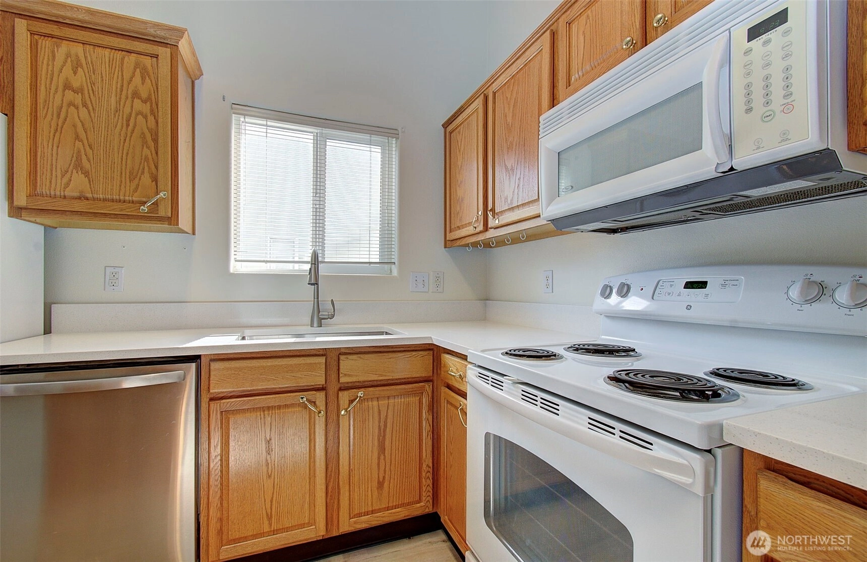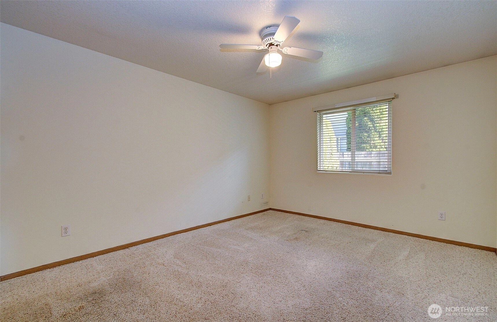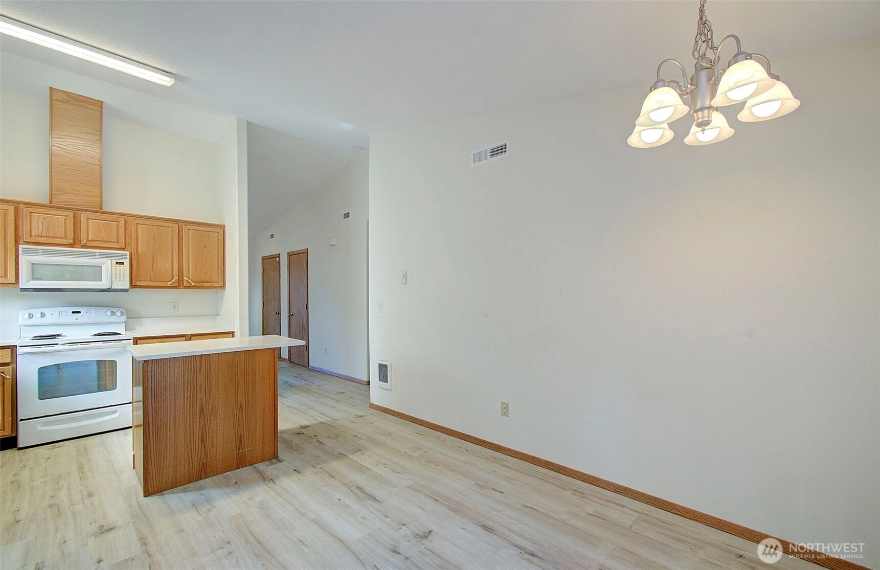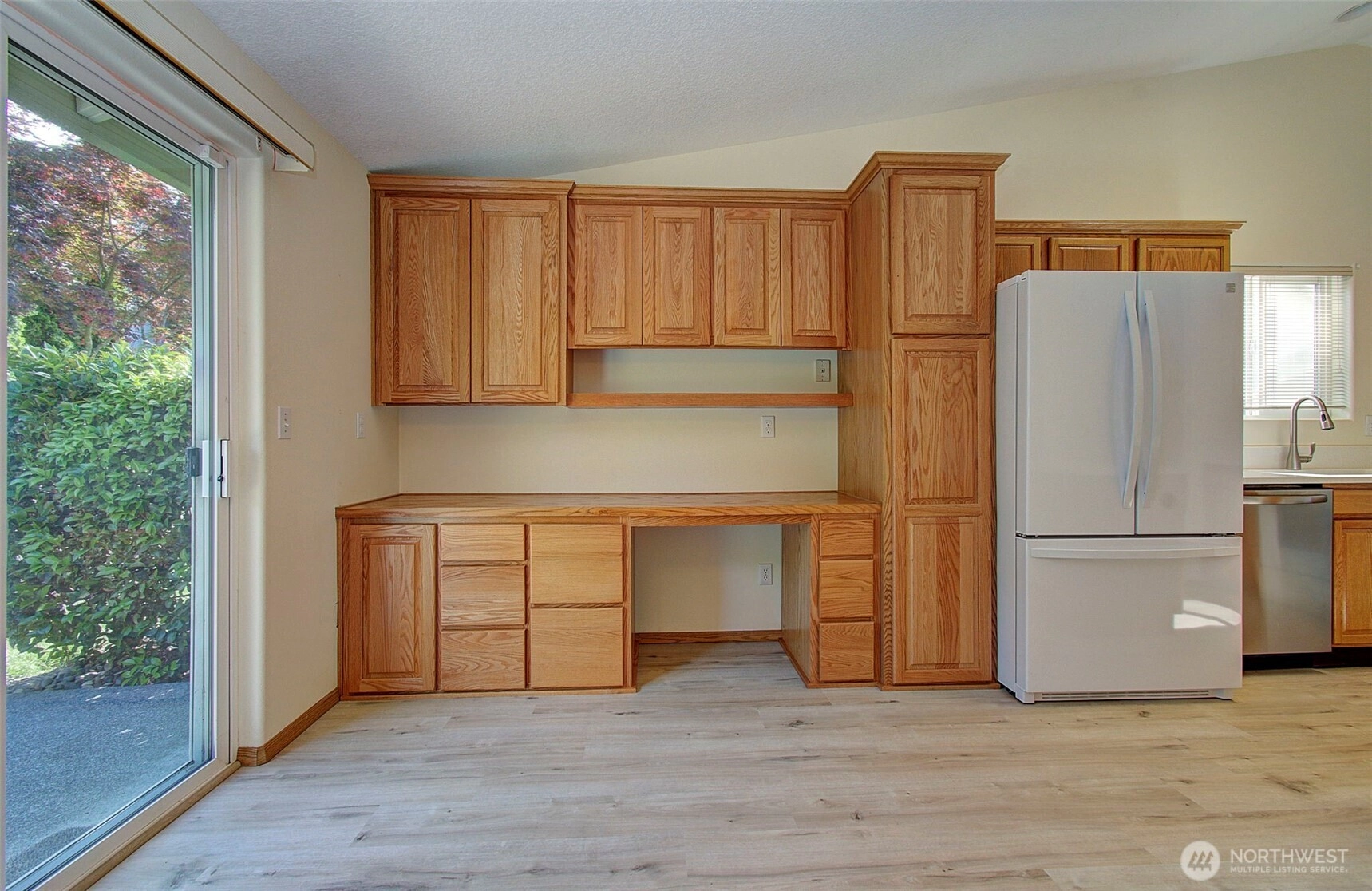 This charming 2 bed, 2 full bath single-level home with new flooring throughout. Kitchen includes an island, built-in dishwasher, new countertops and plenty of cupboards space. Vaulted ceilings, corner gas fireplace, with a fan highlight the spacious living room. The primary suite features an en suite bathroom and a walk-in closet. Large garage offers ample space for parking and storage. Located in a quiet community with a small-town feel, just minutes from downtown and Old Town Battle Ground. Move in ready!