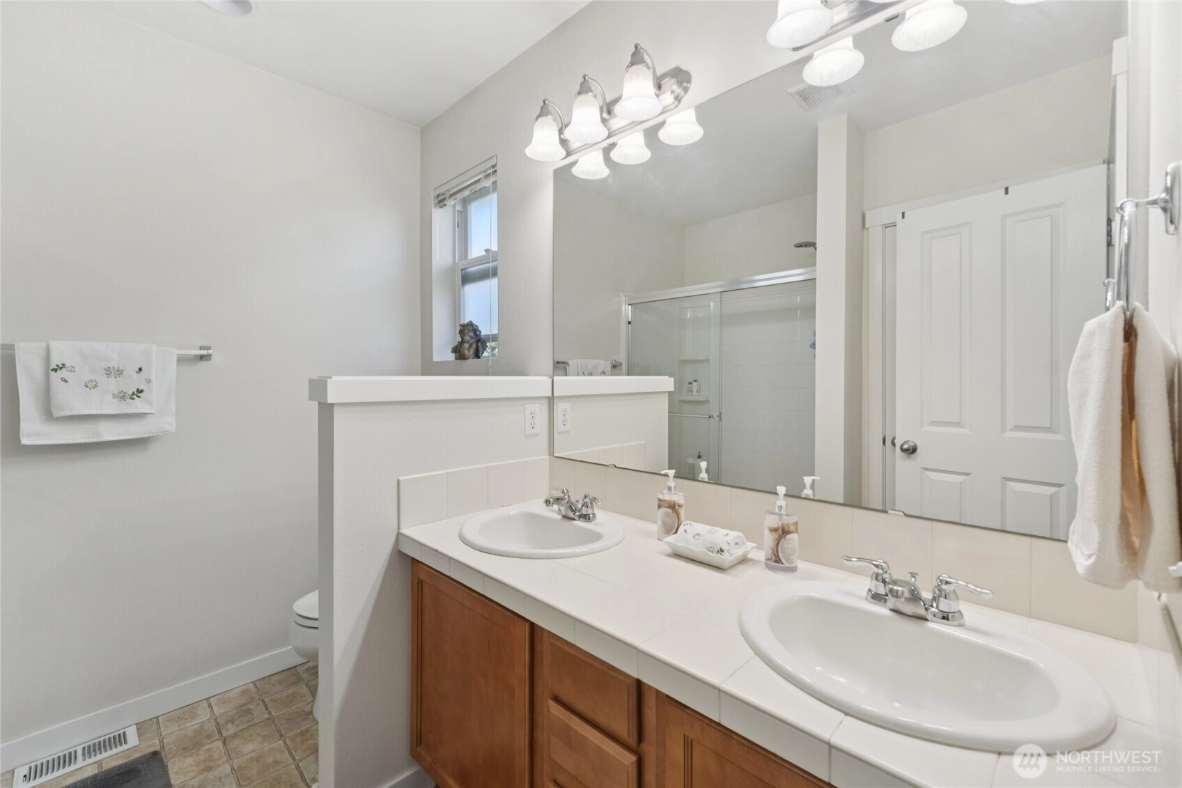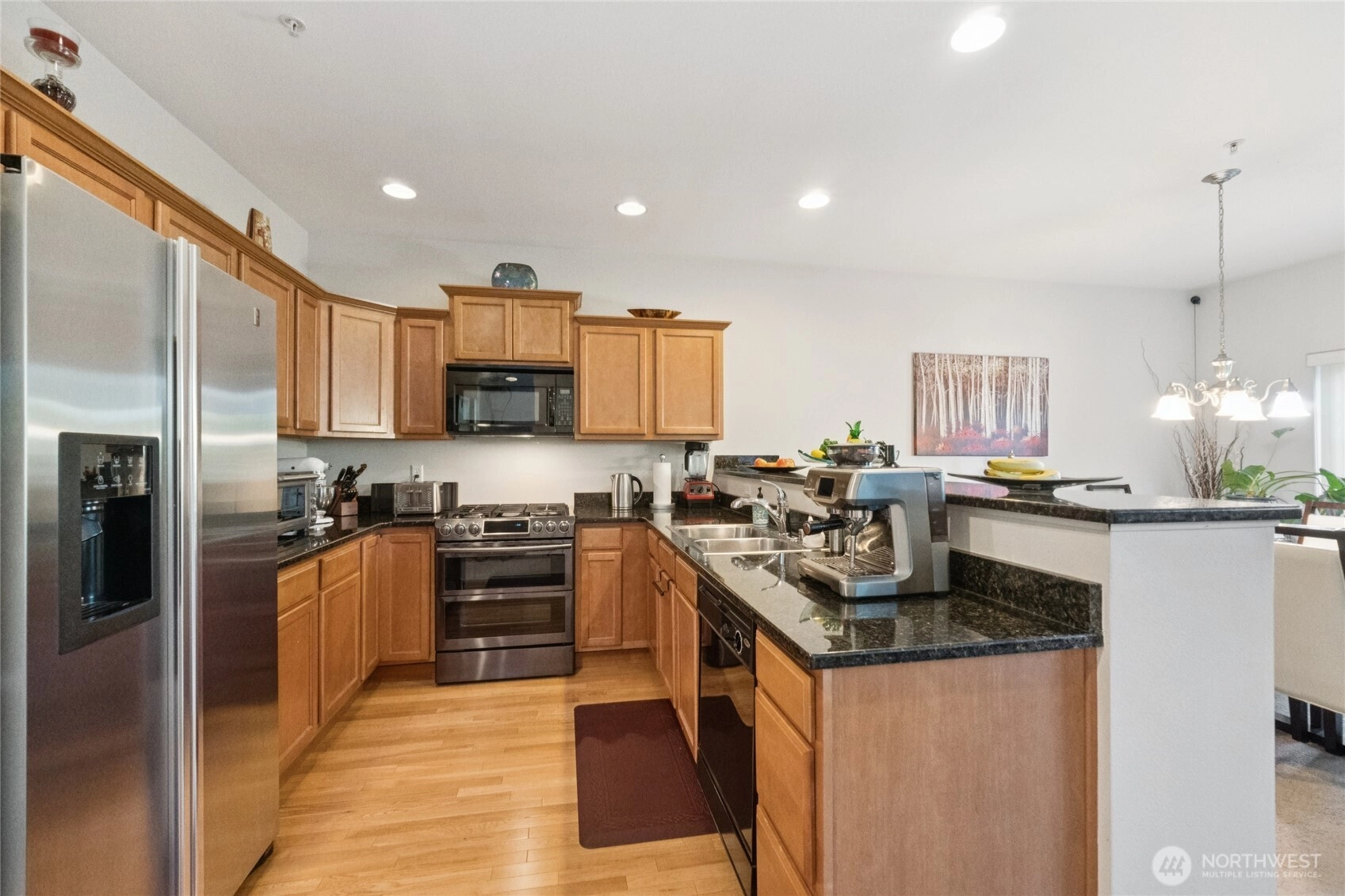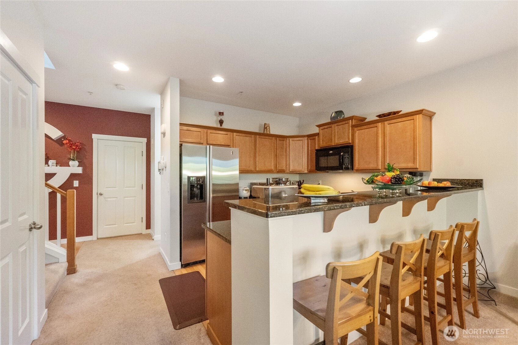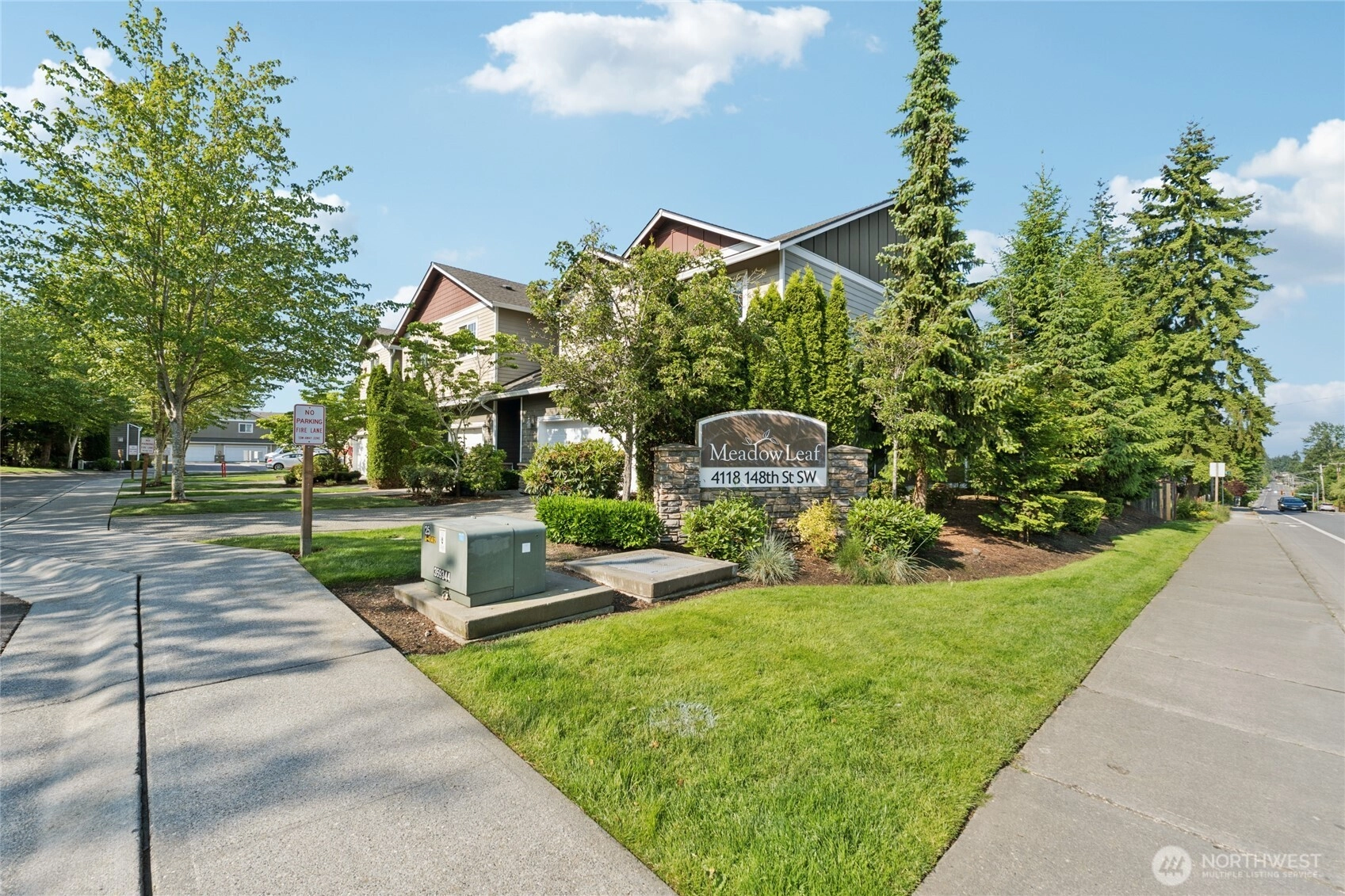 Beautifully updated and move-in ready townhome in the desirable Meadow Leaf community! The open-concept main floor features a modern kitchen with slab granite countertops, breakfast bar, and a spacious living area with a cozy gas fireplace. A convenient half bath and low-maintenance backyard with patio space make entertaining a breeze. Upstairs, the generous primary suite offers a double vanity, walk-in closet, and easy access to the laundry room. Enjoy the convenience of an attached 2-car garage plus driveway parking. Centrally located, minutes away to shops, transit, shopping, health clubs and more! This home has it all—don’t miss your opportunity.