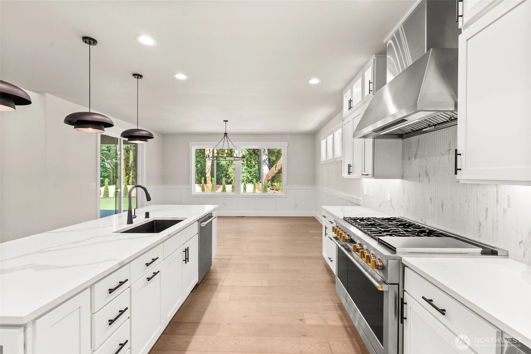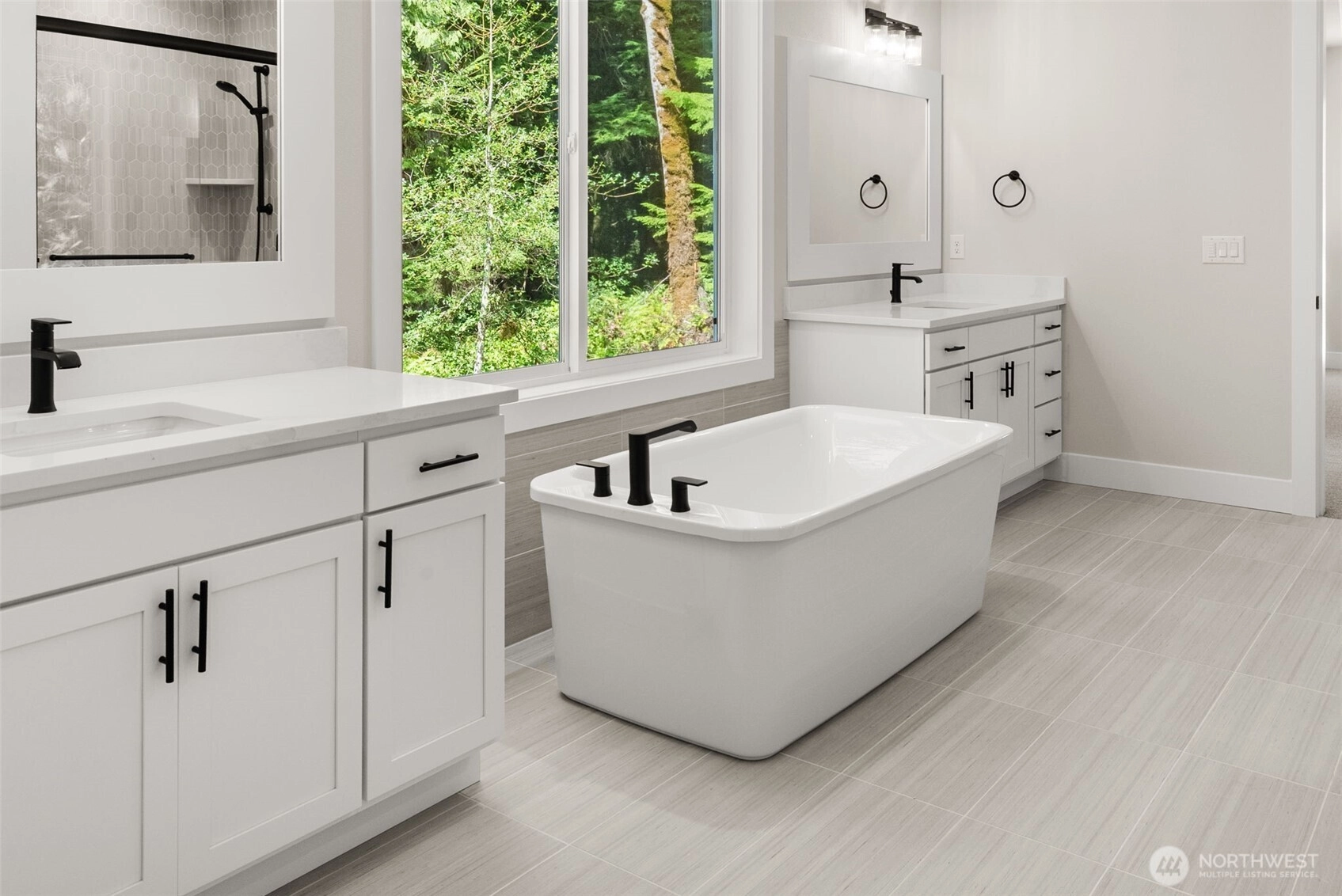 Rob Rice Homes presents a stunning new build tucked into a picturesque 1-acre setting in West Oly. This 4,035 sf home offers the perfect blend of luxury and livability. The chef-inspired kitchen features quartz counters, a GE Monogram appliance package, oversized island with display shelving, and custom White Maple cabinets, under-cabinet lighting & pull-outs—plus a butler’s pantry with beverage cooler! Soaring cathedral ceilings & a linear fireplace flanked by built-ins set the tone for stylish living. The main floor primary is a private retreat with a vessel tub, full tile shower, quartz counters & direct patio access. Landscaped, irrigated & designed for comfort & connection—this home is preparing to welcome you!
