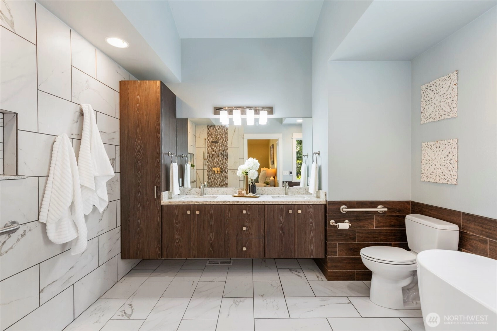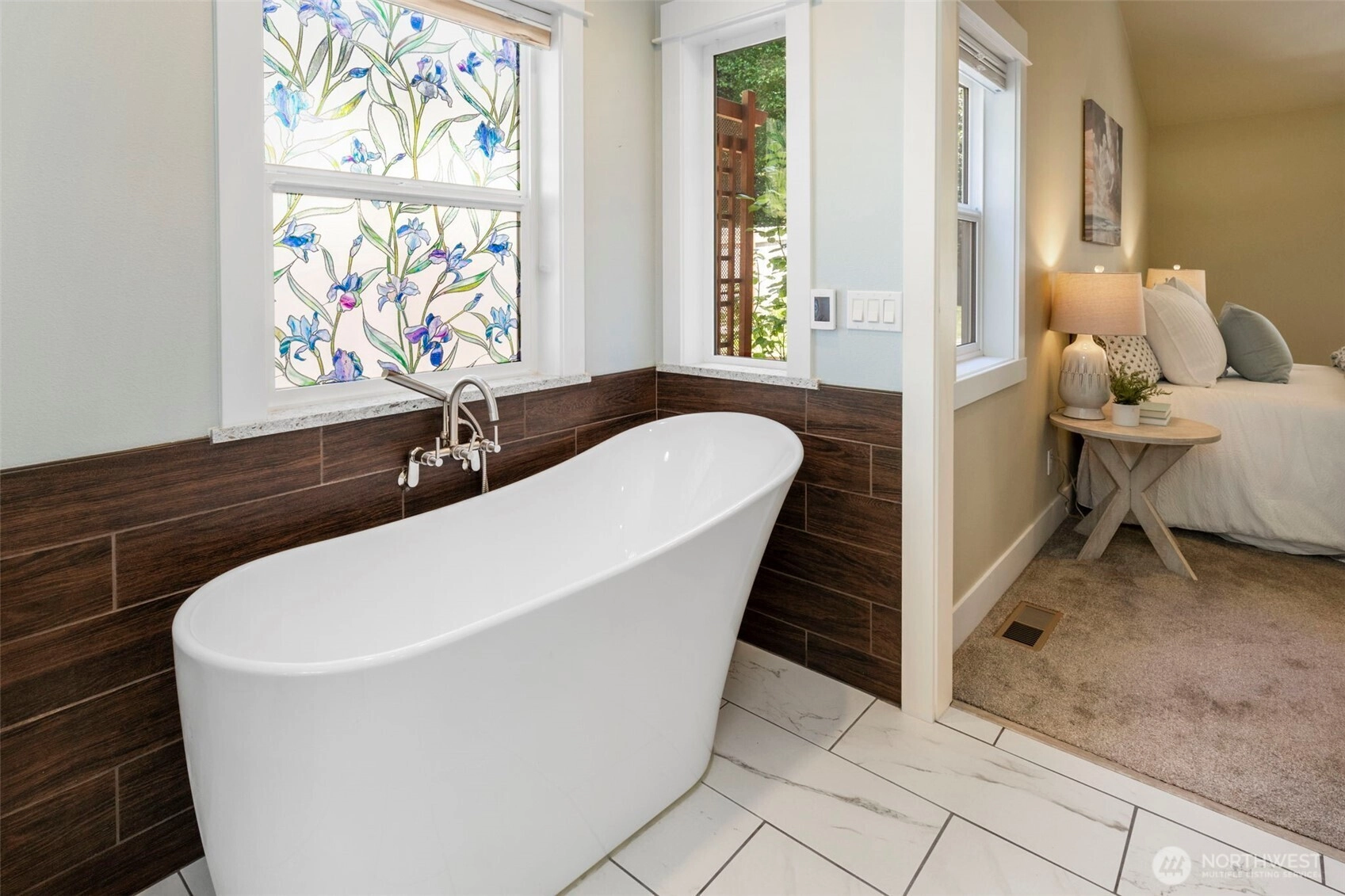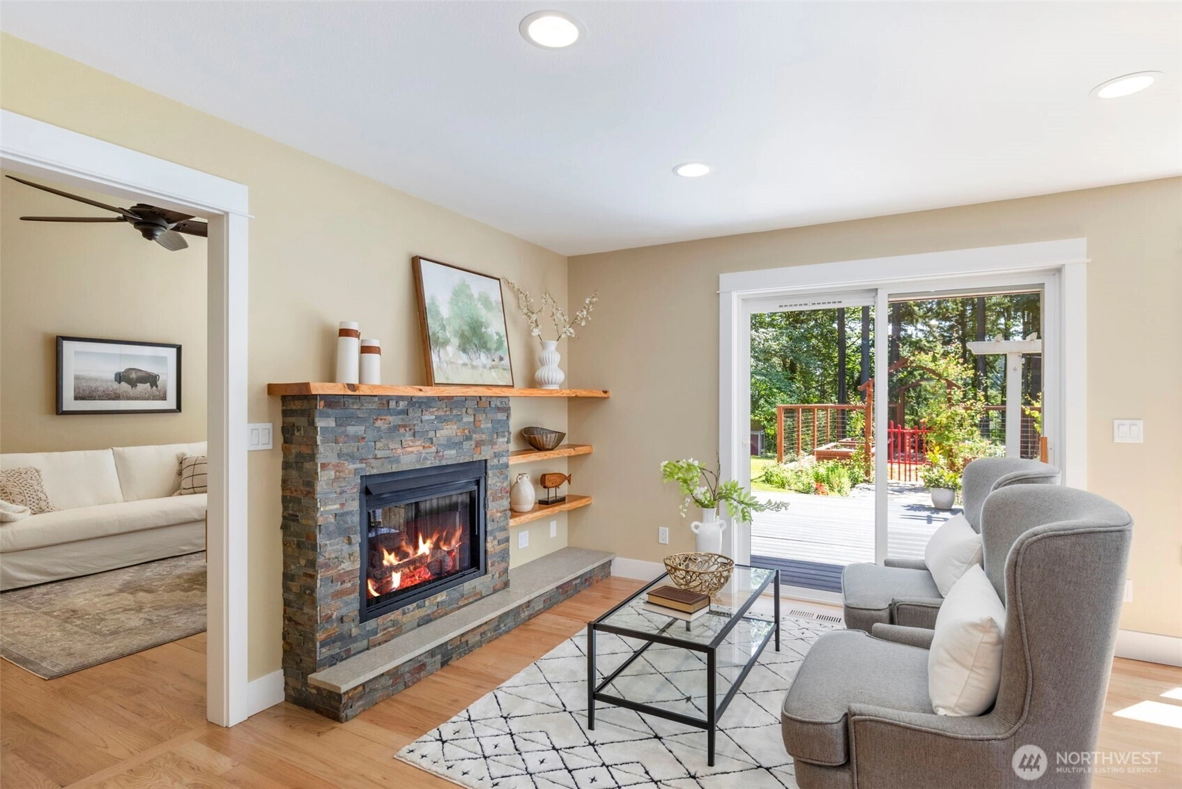 Nestled on Bainbridge Island, this exceptional home blends classic charm with modern comfort and a flexible layout for any stage of life. A gourmet kitchen anchors the home with stainless steel appliances, an eat-in island, and thoughtful finishes for everyday living or entertaining. Dual living areas share a two-sided fireplace, while the formal dining room flows through a chic butler’s pantry. The main-level primary suite offers a reading nook, walk-in closet, and spa-like bath. Outside, a trellised deck and fully fenced yard with garden beds and peekaboo Eagle Harbor views offer serene privacy. Enjoy southwest light, harbor breezes, and a prime location near the ferry, trails, and parks.