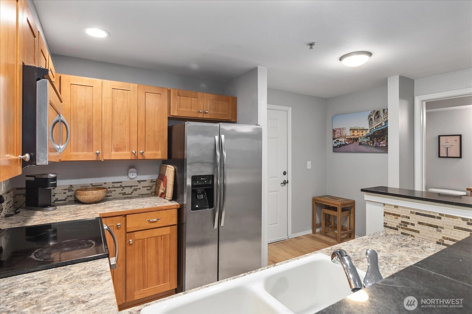 Enjoy comfort and convenience in this beautifully maintained fully-furnished condo in the desirable Alki community. Featuring a private ground-level patio, perfect for morning coffee or summer evenings. The spacious living room is warmed by a cozy gas fireplace, creating an inviting space to relax. The bedroom offers a generous walk-in closet. In unit washer/dryer and stainless steel kitchen appliances. Storage is no issue with an outdoor storage closet and even more space in the garage. This unit includes an assigned, covered parking spot in the secure garage. Easy access to W Seattle Bridge. All of this just moments from Alki Beach, local eateries and stunning waterfront. Don’t miss your chance to own a peaceful retreat close to it all!