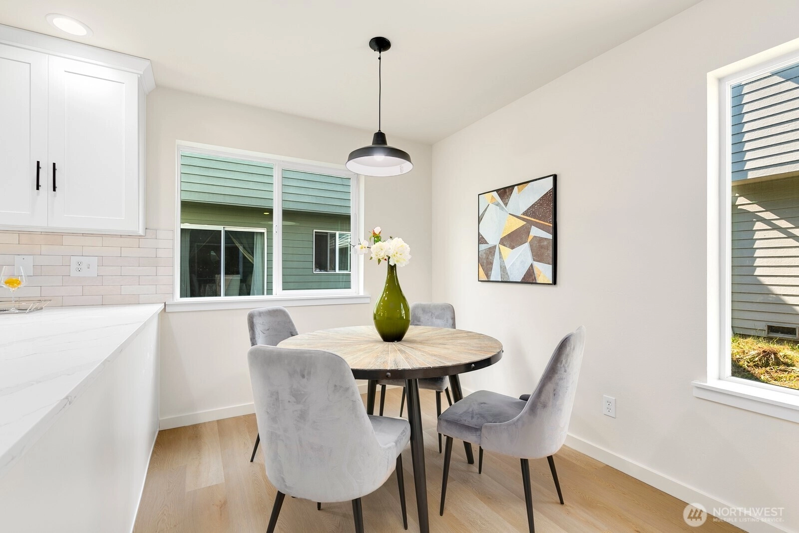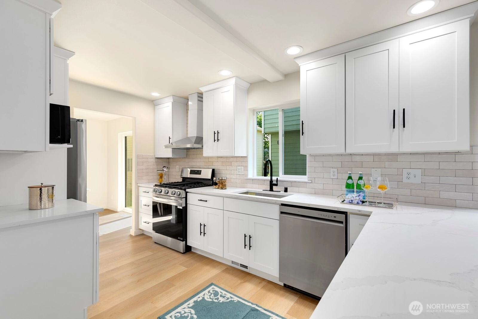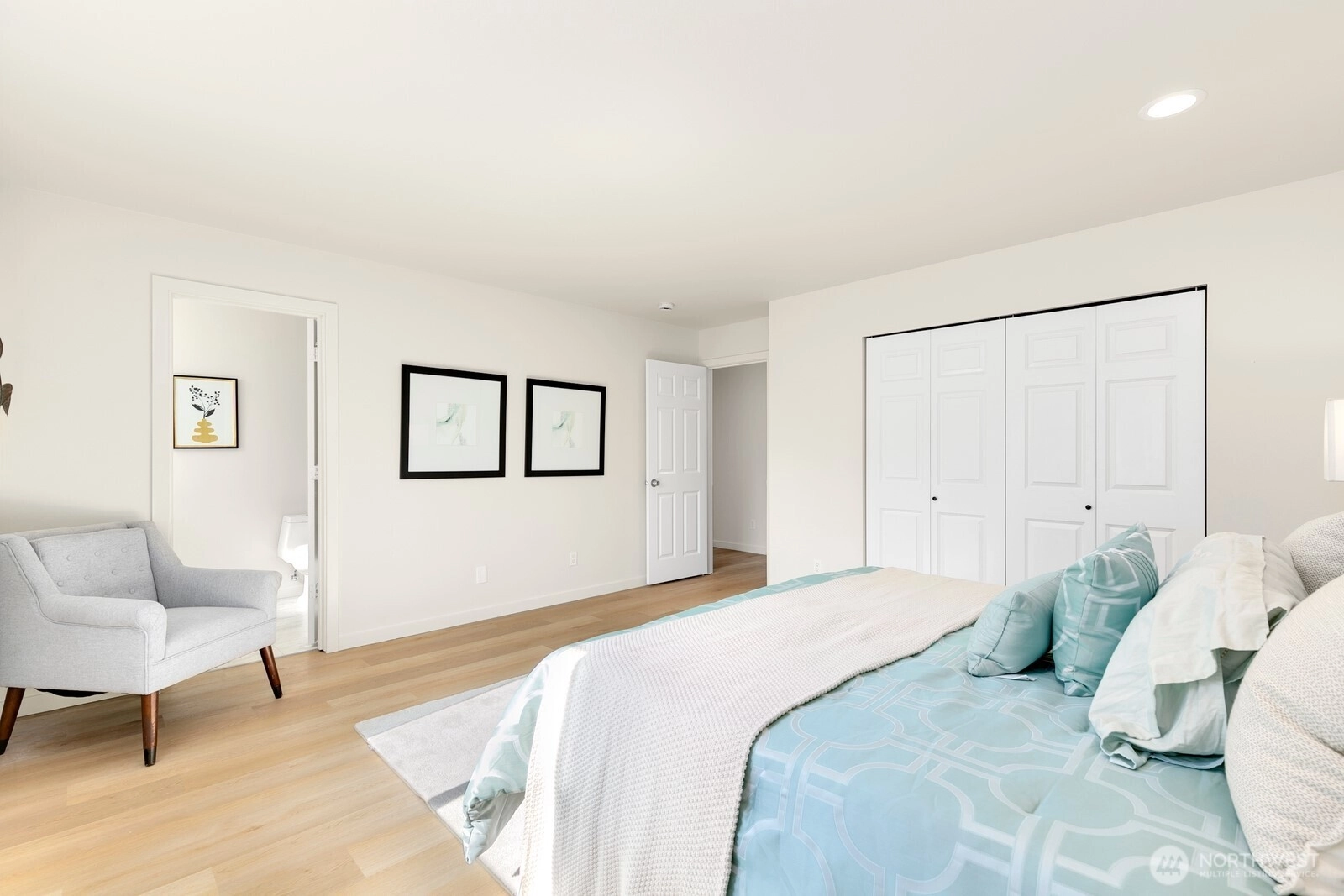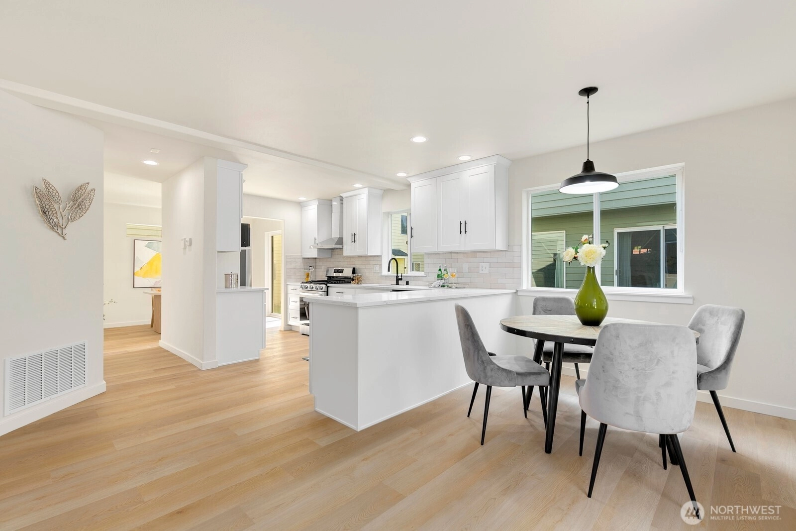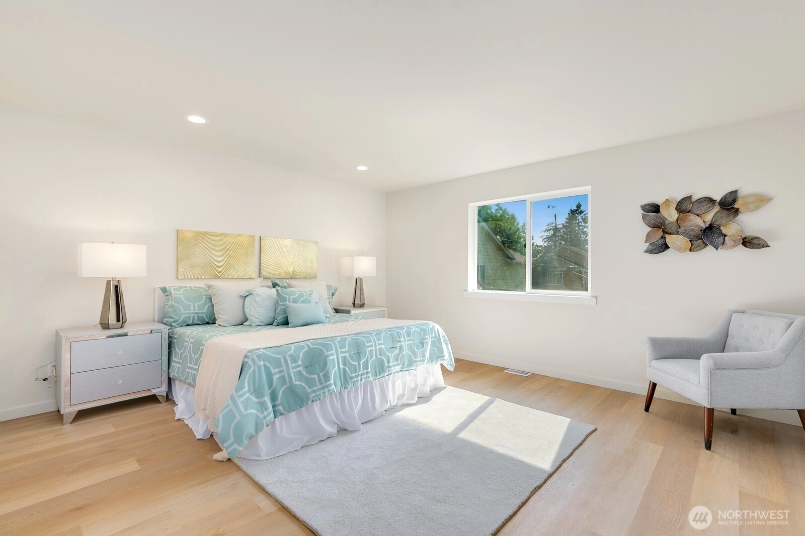 Exquisitely renovated home in the desirable Ashley Place neighborhood. This home masterfully combines modern sophistication with practical comfort, offering 3 bedrms, 2.5 bathrms, and a spacious loft. The cutting-edge kitchen features sleek finishes, new quartz countertops, custom cabinetry, a high-efficiency range hood, premium lighting, and SS appliances. Fully remodeled bathrooms include a lavish 4-piece master suite with new fixtures and tile flooring. LVP flooring throughout. The exterior showcases a new Trex deck, new garage door, and new roof, Fresh interior/exterior paint and new SOD lawn. Perfectly located for commuters, with nearby P&R bus stops and swift access to I-5 and I-405, and shopping, dining, and parks. Move-in ready.