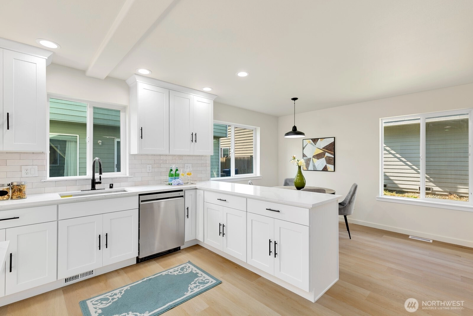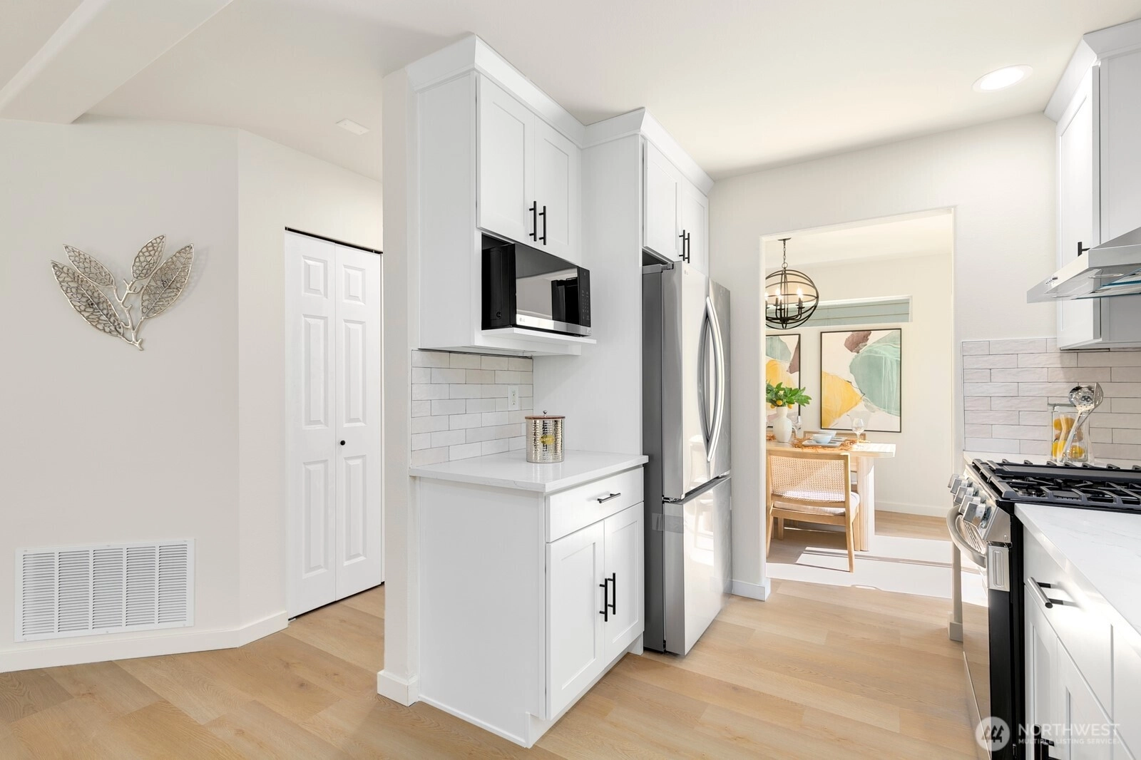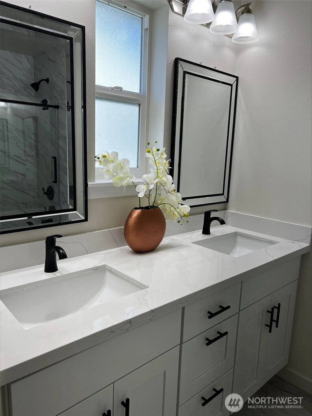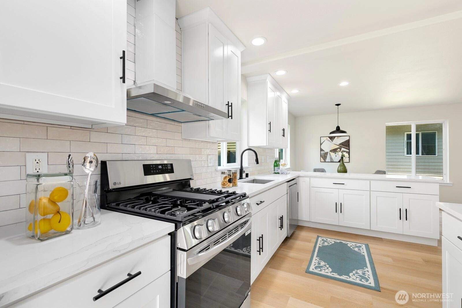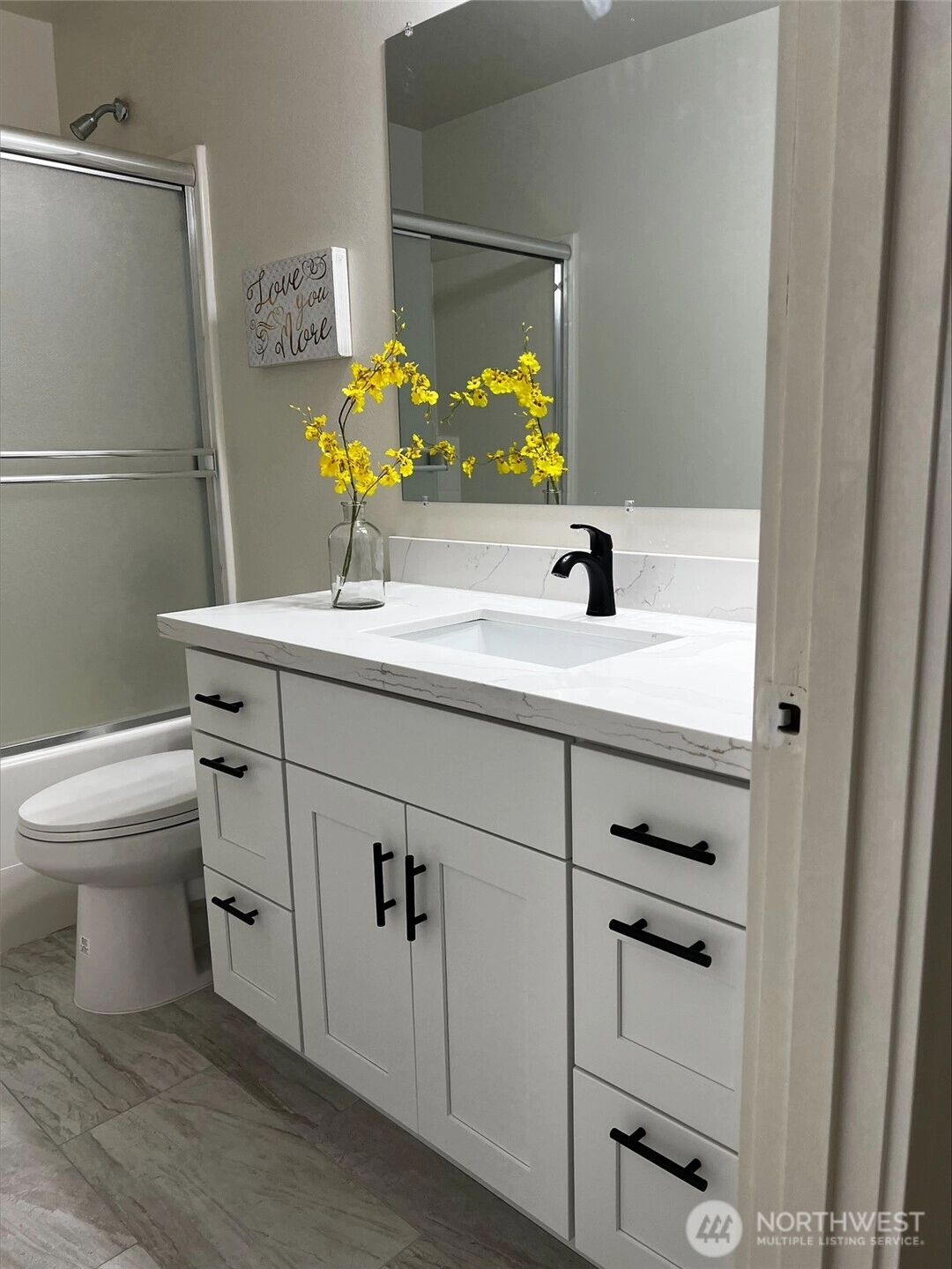Exquisitely renovated home in the desirable Ashley Place neighborhood. This home masterfully combines modern sophistication with practical comfort, offering 3 bedrms, 2.5 bathrms, and a spacious loft. The cutting-edge kitchen features sleek finishes, new quartz countertops, custom cabinetry, a high-efficiency range hood, premium lighting, and SS appliances. Fully remodeled bathrooms include a lavish 4-piece master suite with new fixtures and tile flooring. LVP flooring throughout. The exterior showcases a new Trex deck, new garage door, and new roof, Fresh interior/exterior paint and new SOD lawn. Perfectly located for commuters, with nearby P&R bus stops and swift access to I-5 and I-405, and shopping, dining, and parks. Move-in ready.