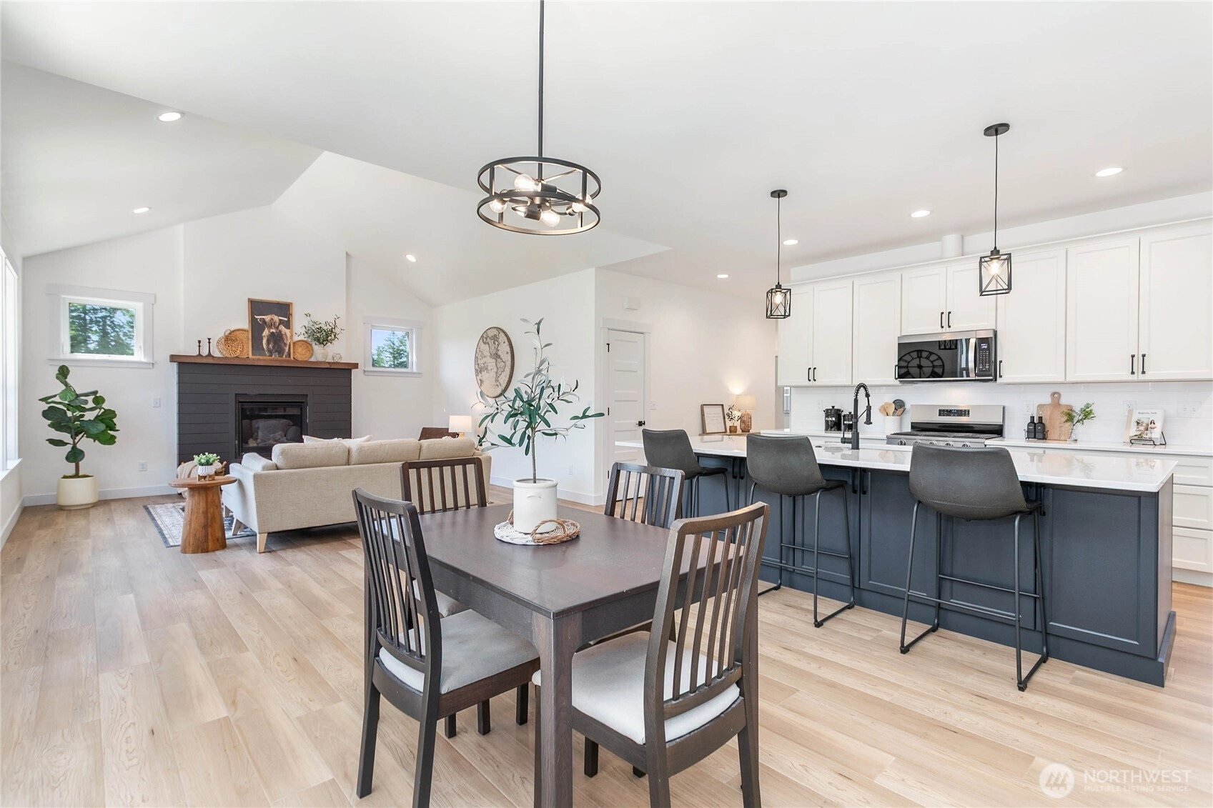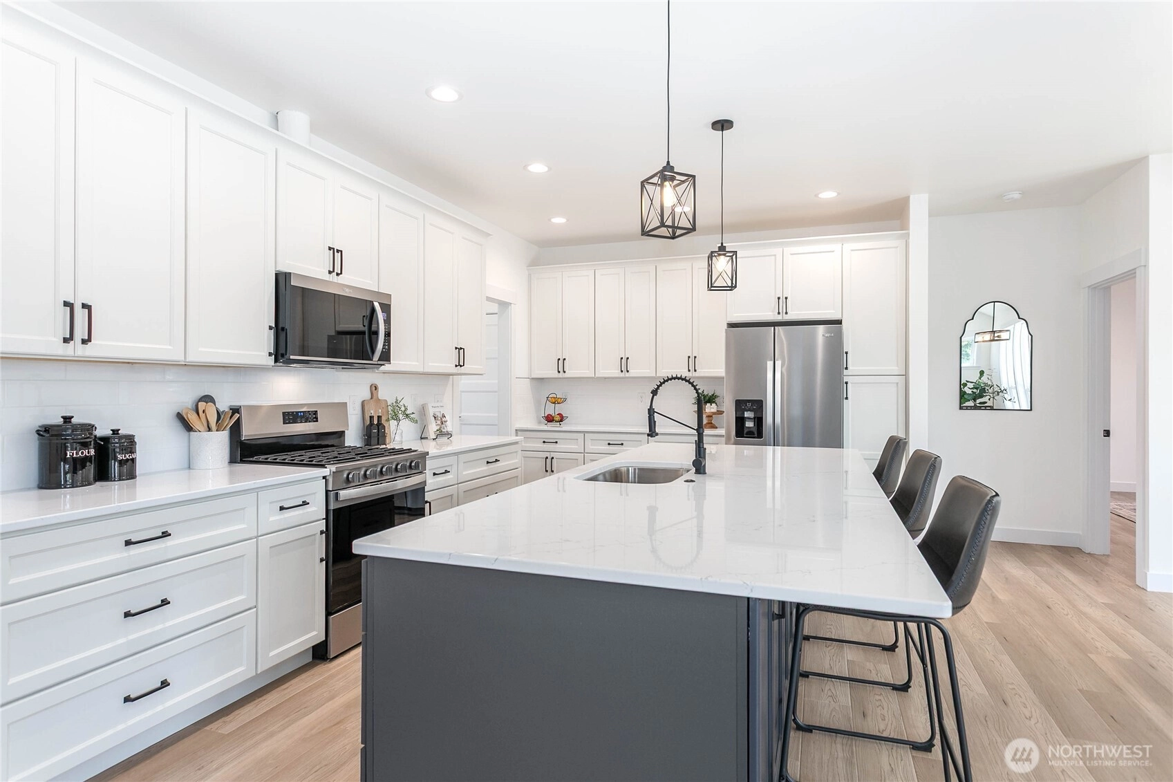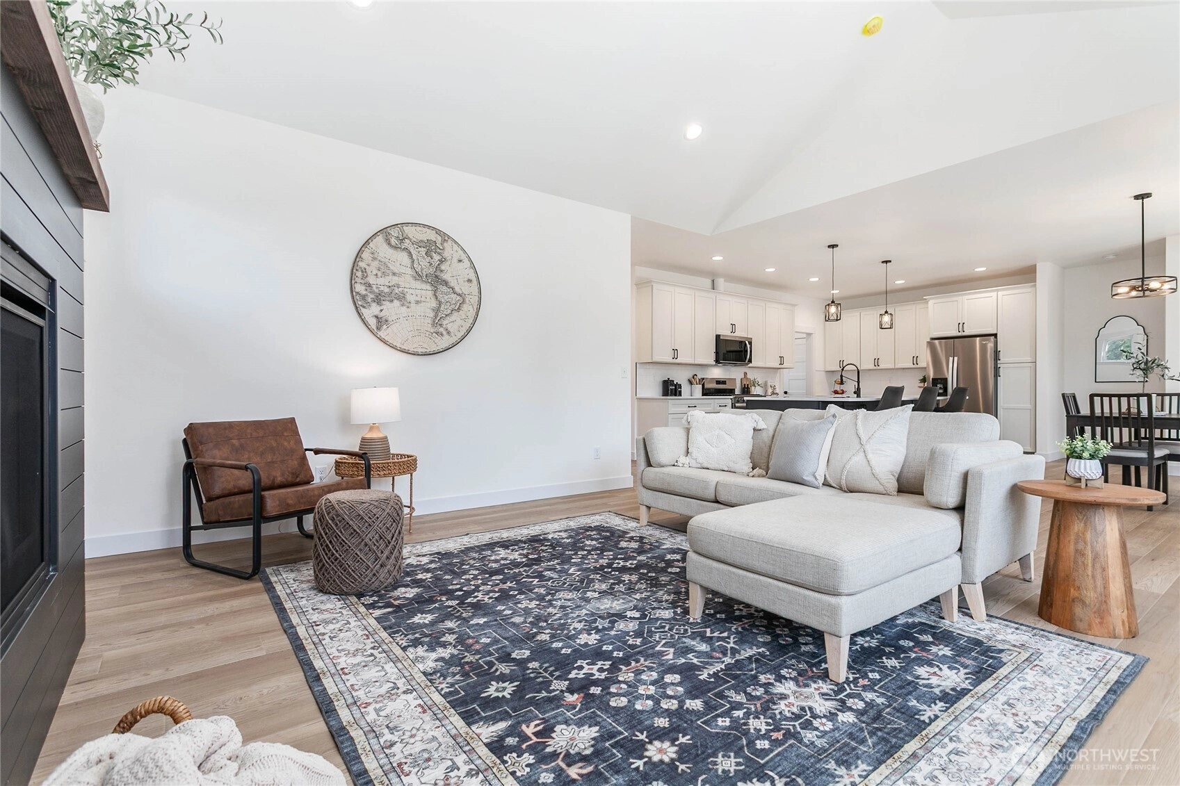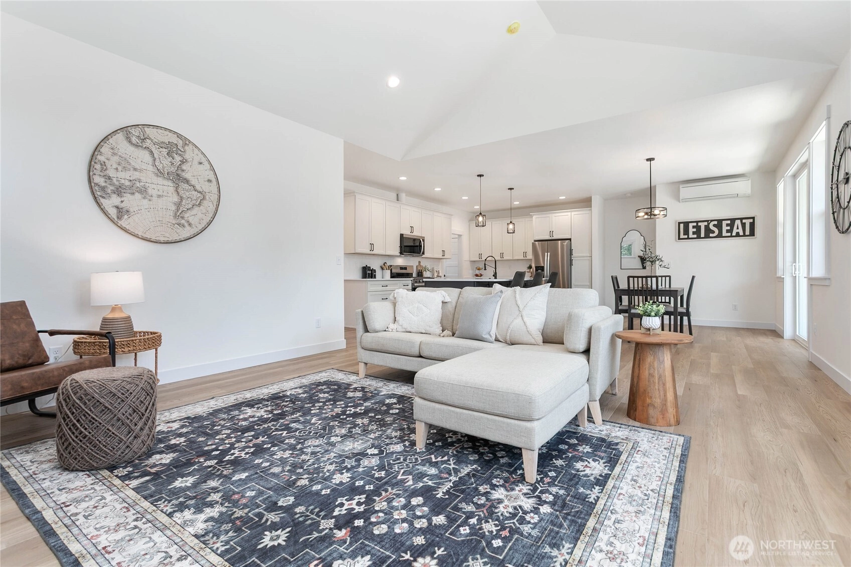 Beautiful new Pacific Edge Builders home w/ 4 bed & 2 bath on one level w/ large 3 car garage! Custom designed finishes including quartz countertops & LVP flooring throughout. Upgrades including gas fireplace & air conditioning. Large kitchen w/ custom cabinetry, tile backsplash and stainless steel appliance package. Open design concept with vaulted living room and functional floor plan. Primary bedroom with large walk in closet, bath with soaker tub & separate walk in shower. Large covered patio w/ gas hookup great for year round grilling and entertaining. Great location in a neighborhood of new homes with a short walk to Everson Elementary School and community park. Vacant and move in ready!